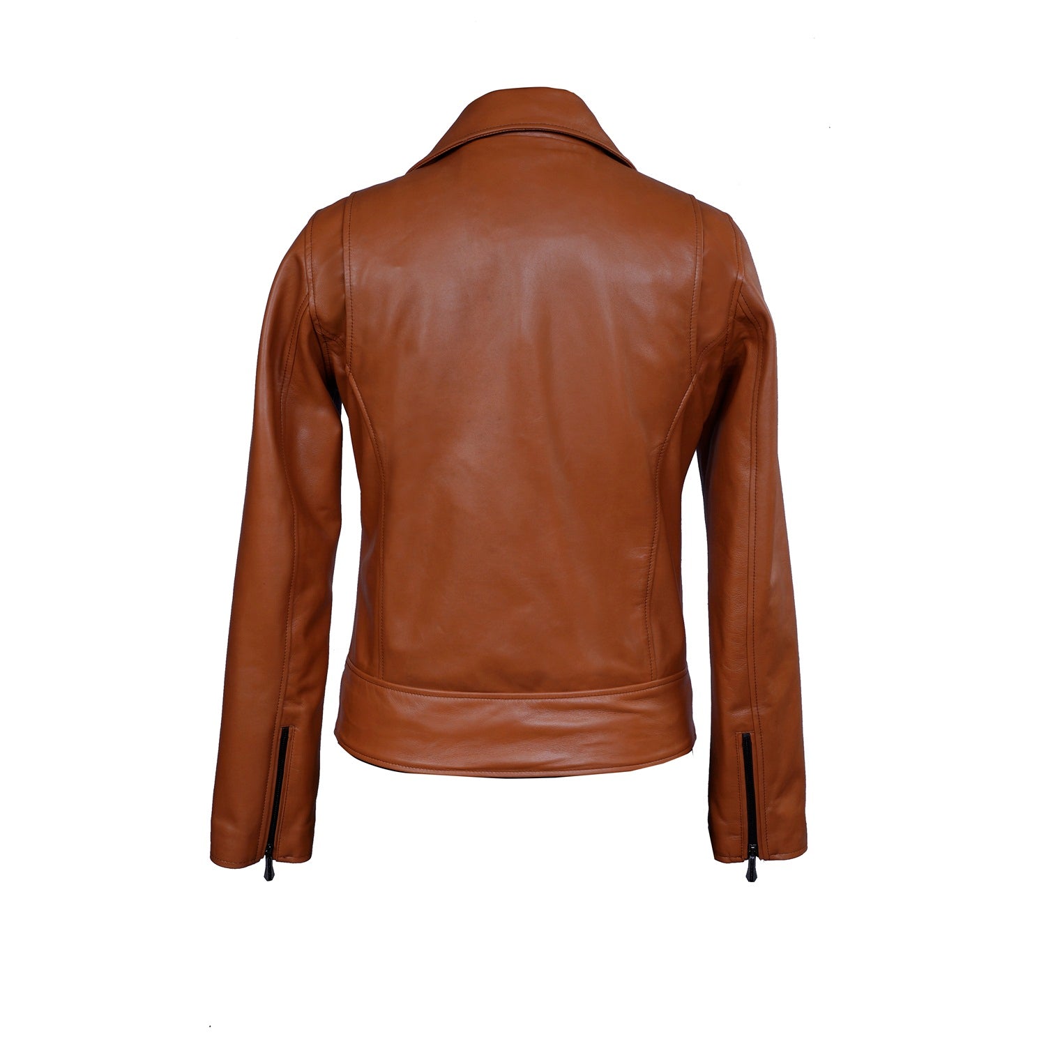 Full Sleeves Biker Jacket in Tan Genuine Leather