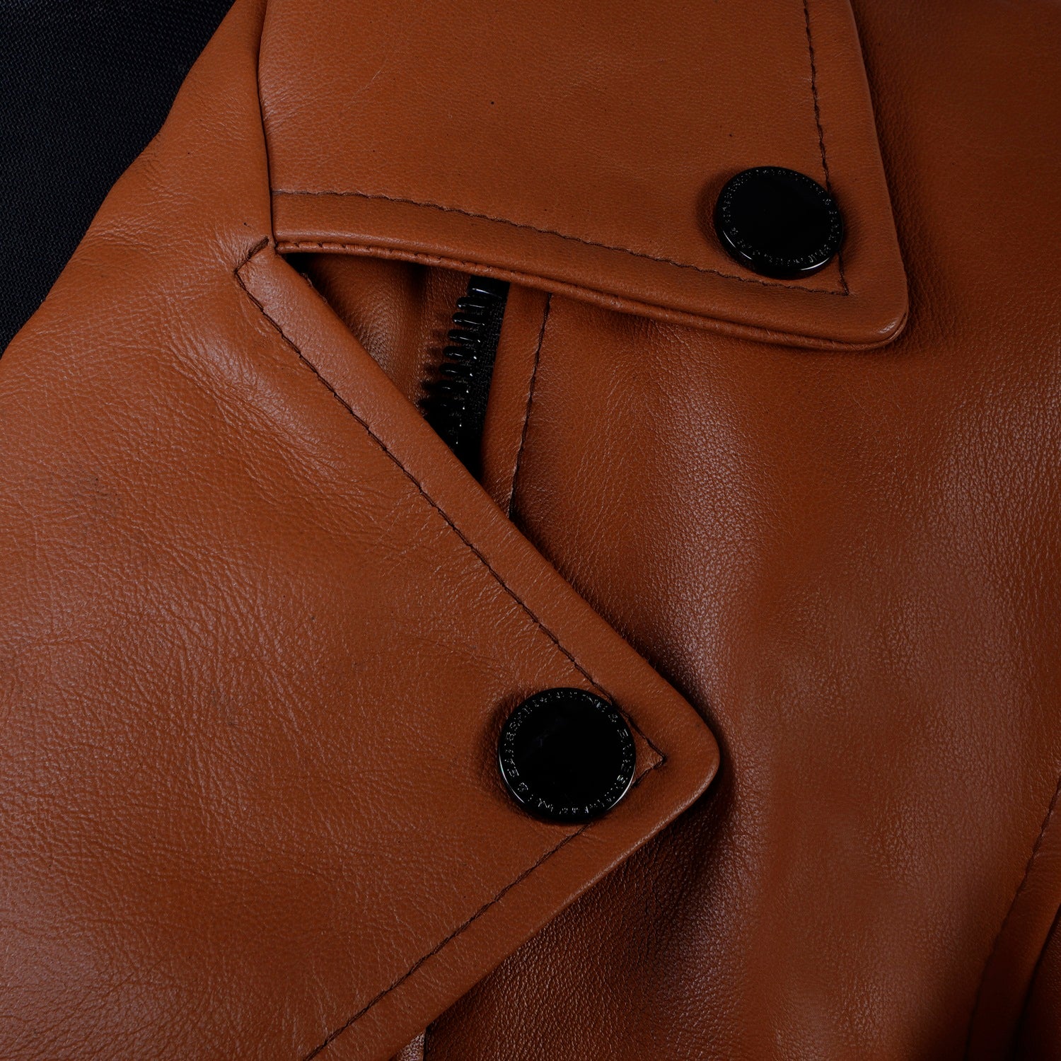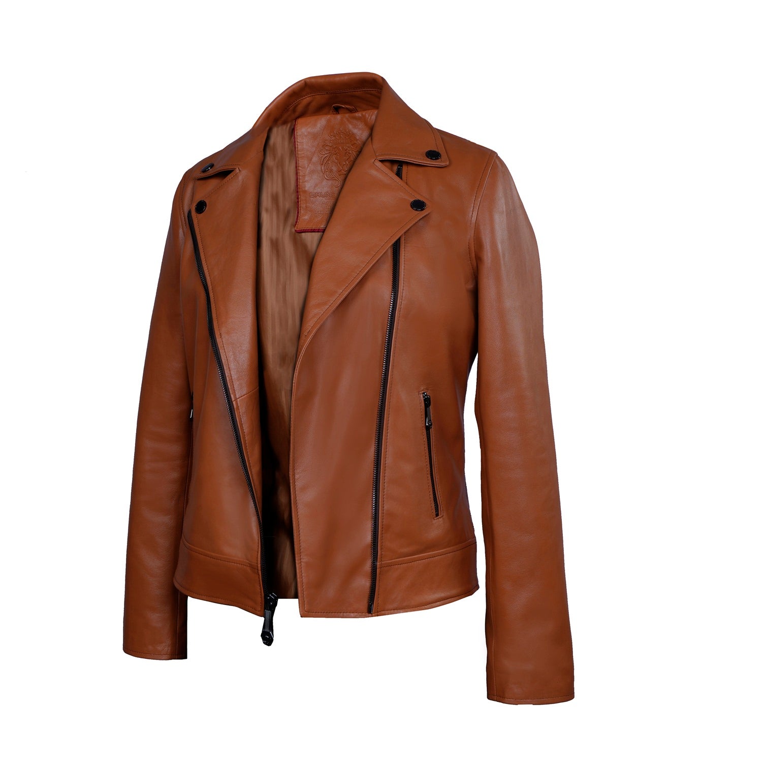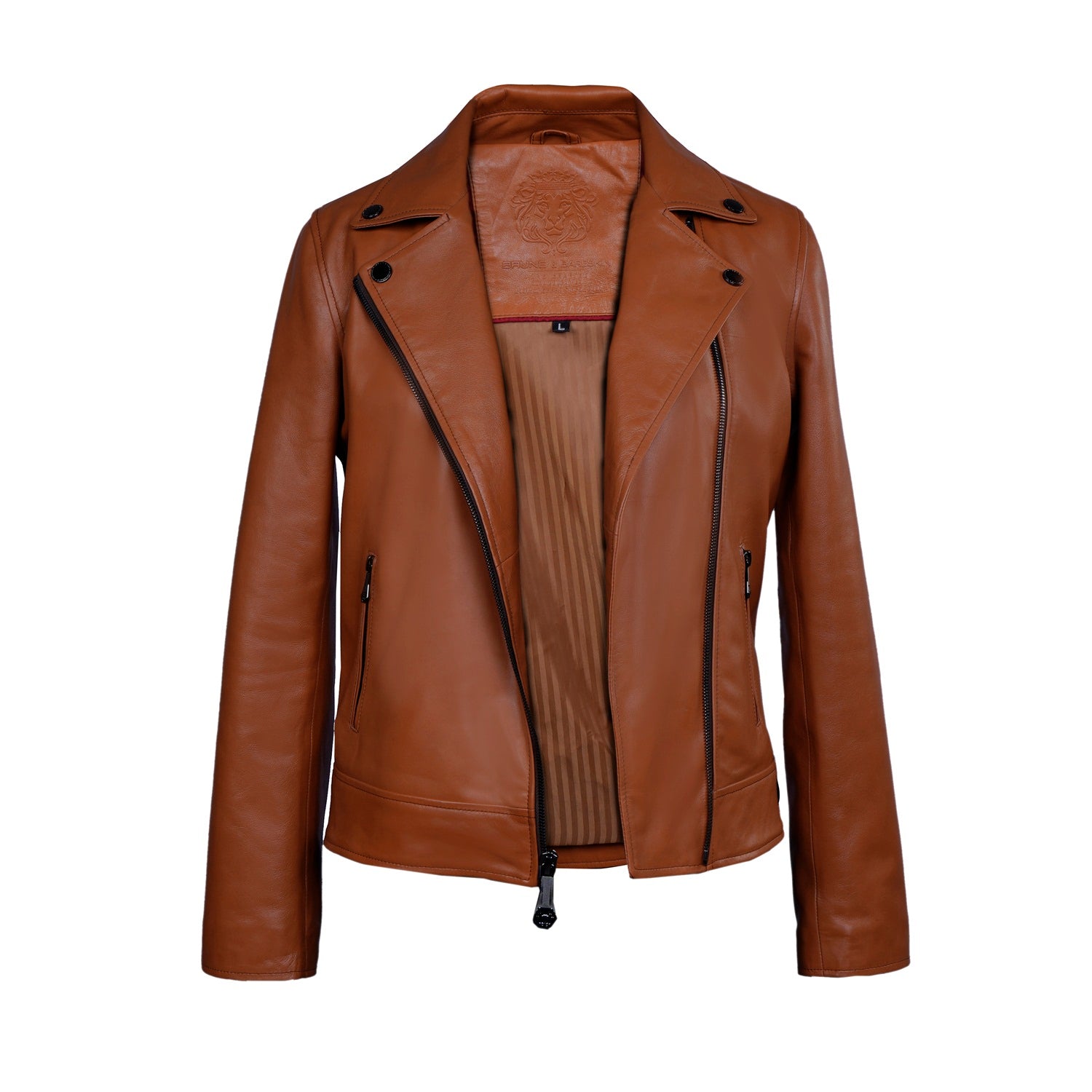 Tan color looks luxurious, especially in Leather. This jacket ensures that you look distinct and stylish in a crowded fashion-oriented world. If you're in need of an awesome, unique new piece to add to your wardrobe then you have come to the right place "Brune & Bareskin". This is a biker-style jacket with button details on the collar and a zipper up the front. This leather jacket features a long collar design along with two silver zip pockets on the front. The company " Brune & Bareskin" complements the fashion statement in a unique way to help customers cherry-pick from the collection & feel better & look better.