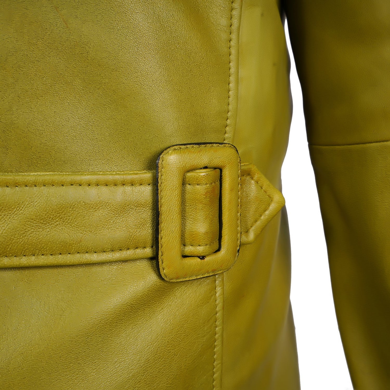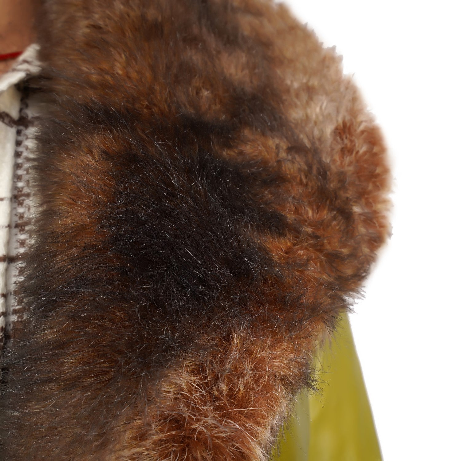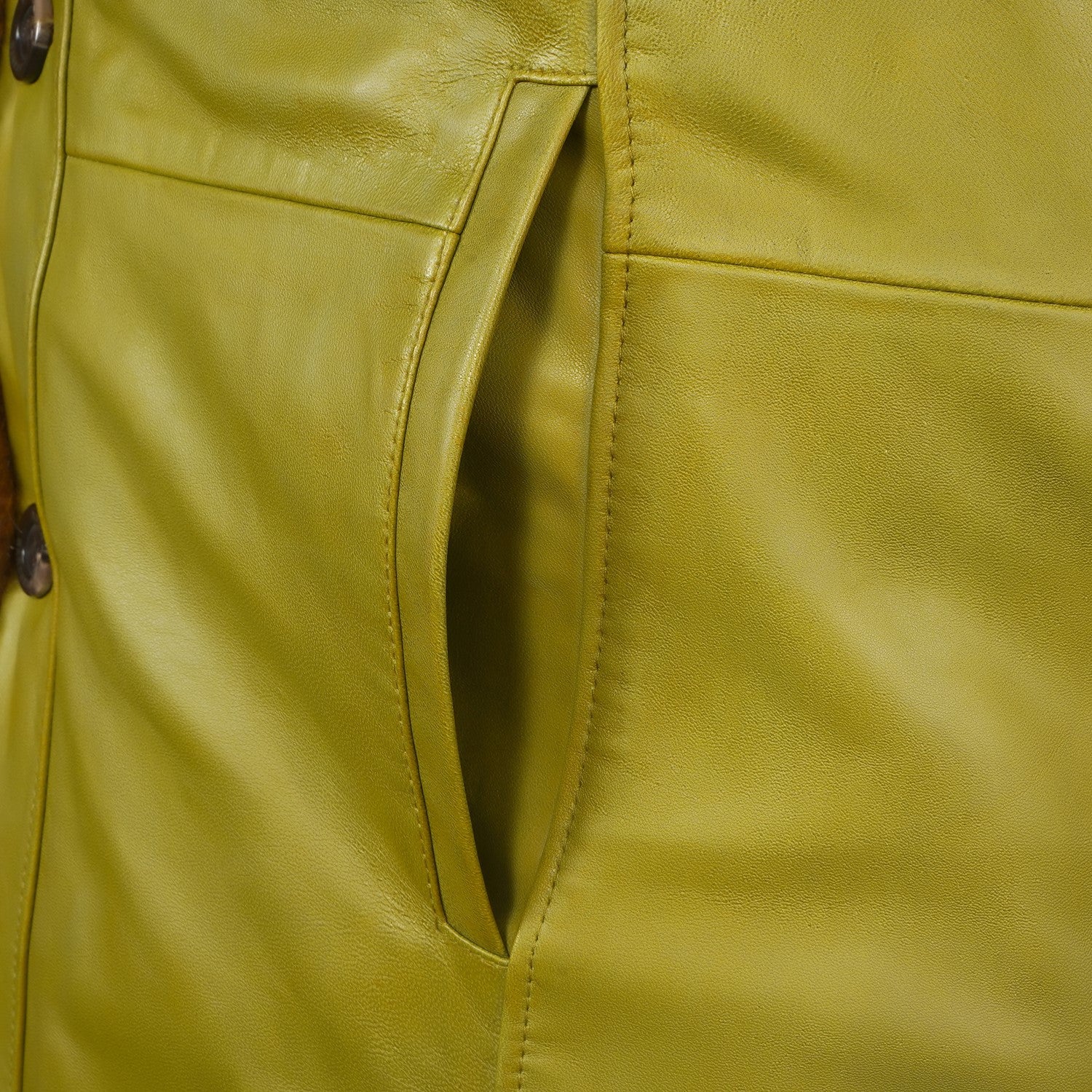 Furr Collar Leather Long Coat Jacket in Olive Green Leather