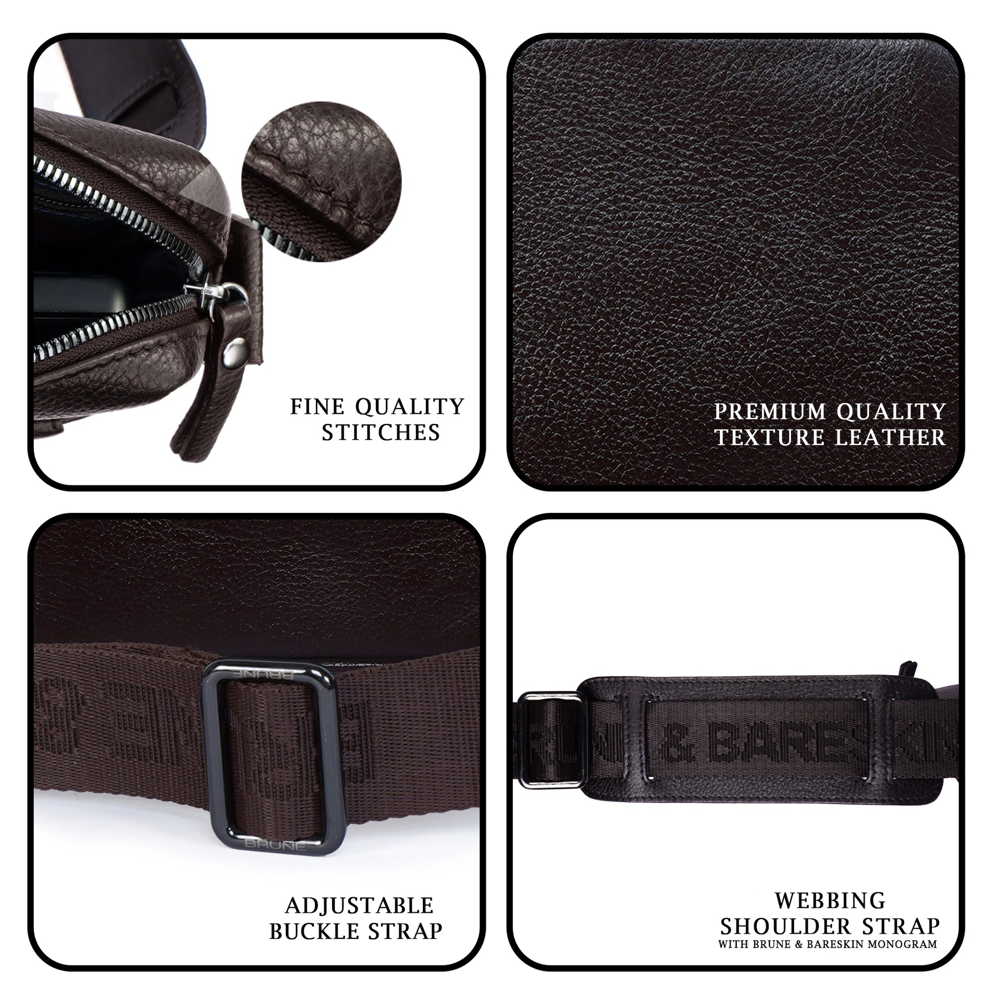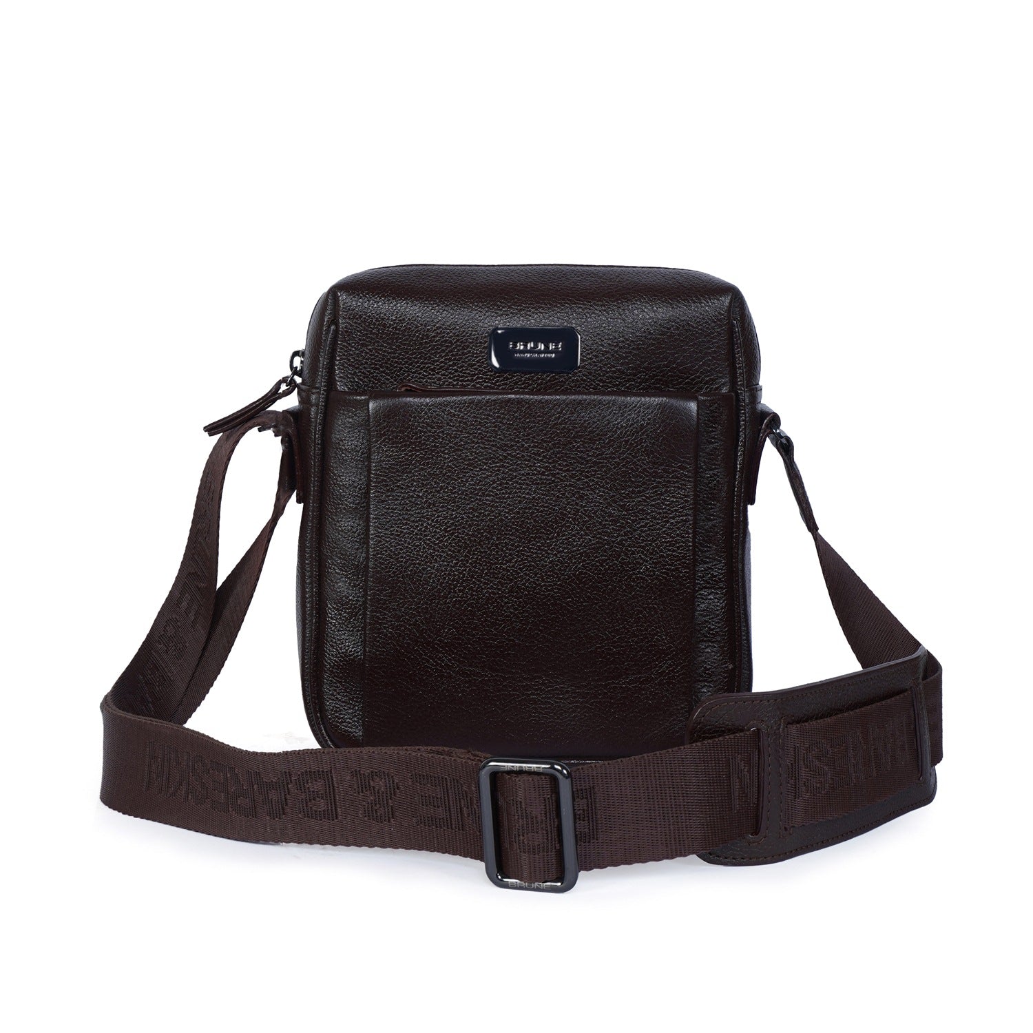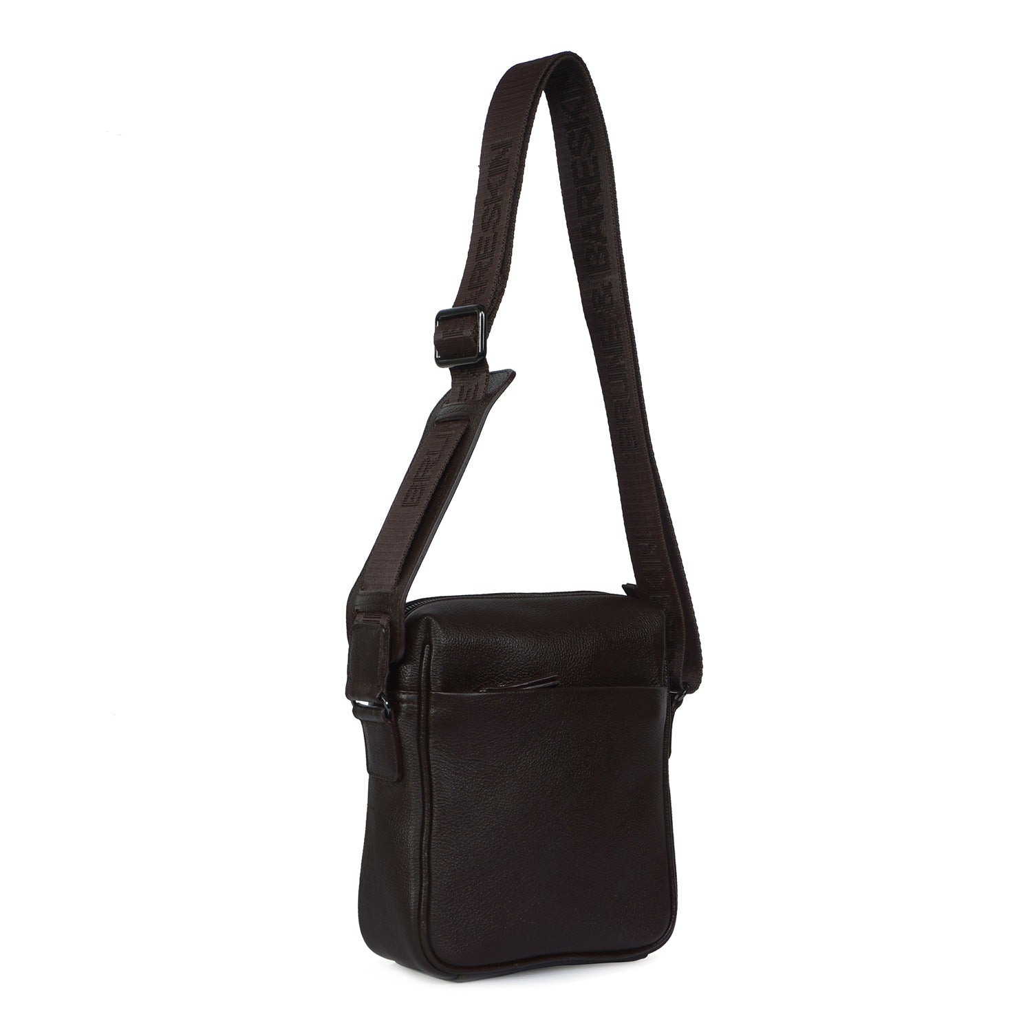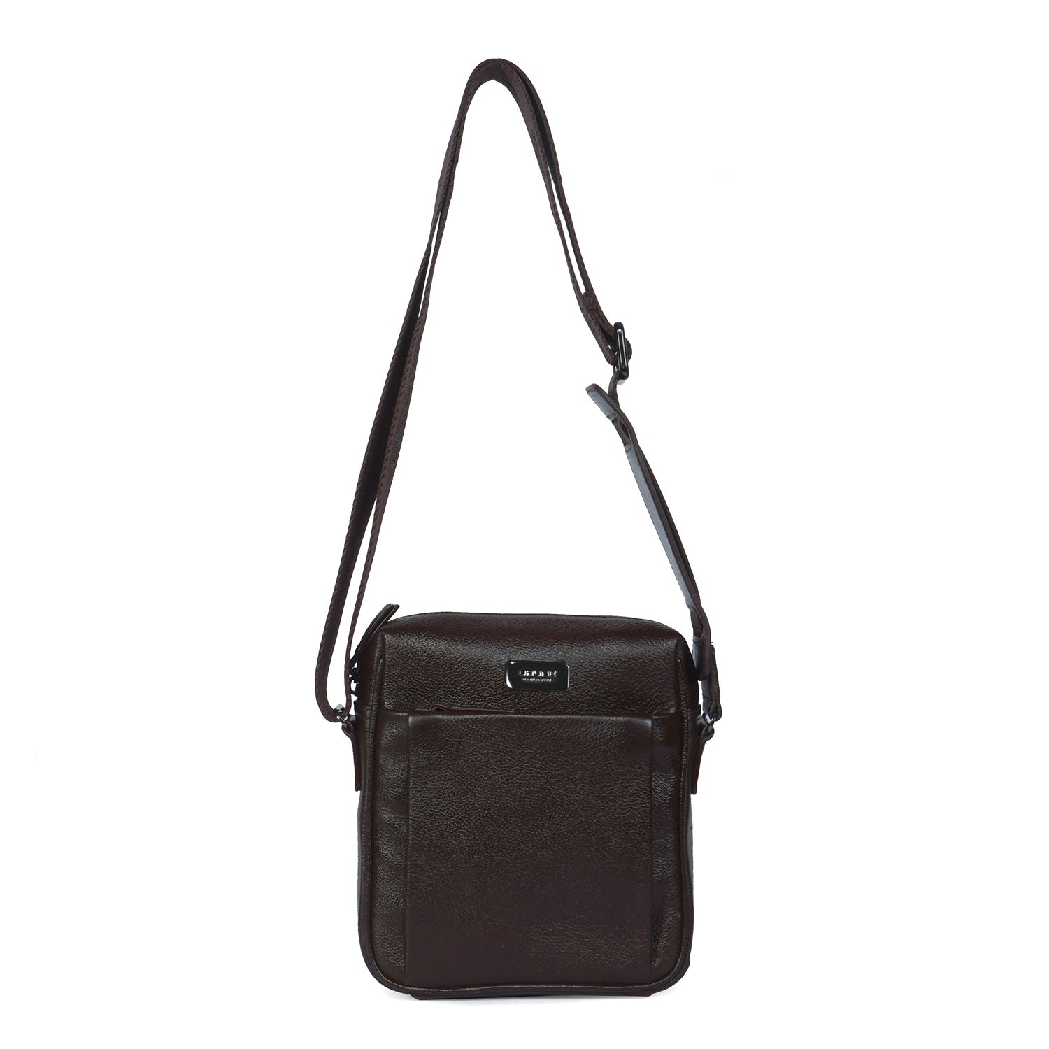 Upgrade your airport look with our Small Sized Crossbody/Sling Bag. Handcrafted from premium quality Dark Brown Textured Leather, it boasts a unique patina finish and both formal and casual looks. The Brune & Bareskin branded webbing adjustable strap ensures comfortable carrying of your essentials like phones, wallets, and more. With a top opening main zipper compartment and easy access pockets, this bag provides secure storage for all your needs. Travel in style and convenience with our versatile and stylish bag.