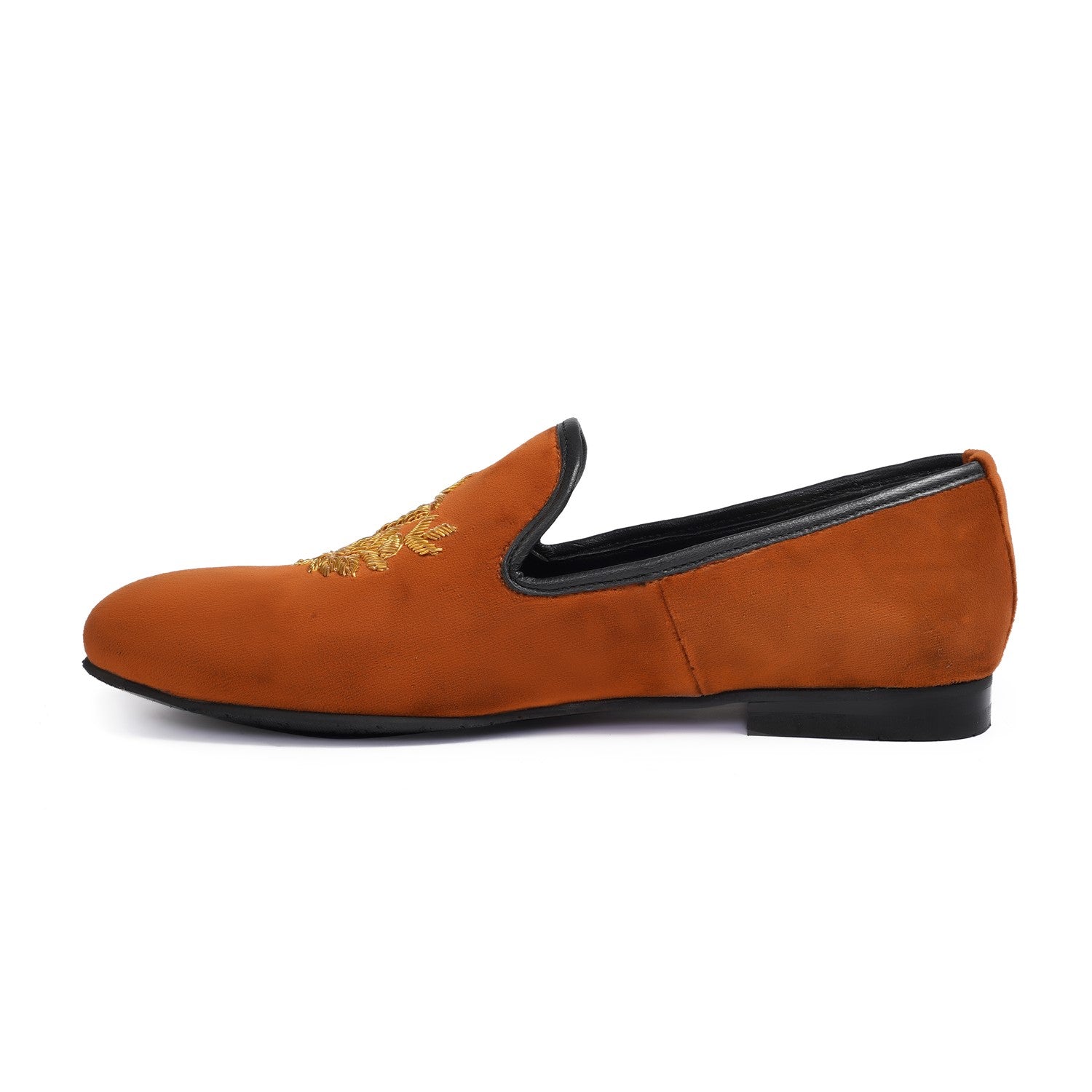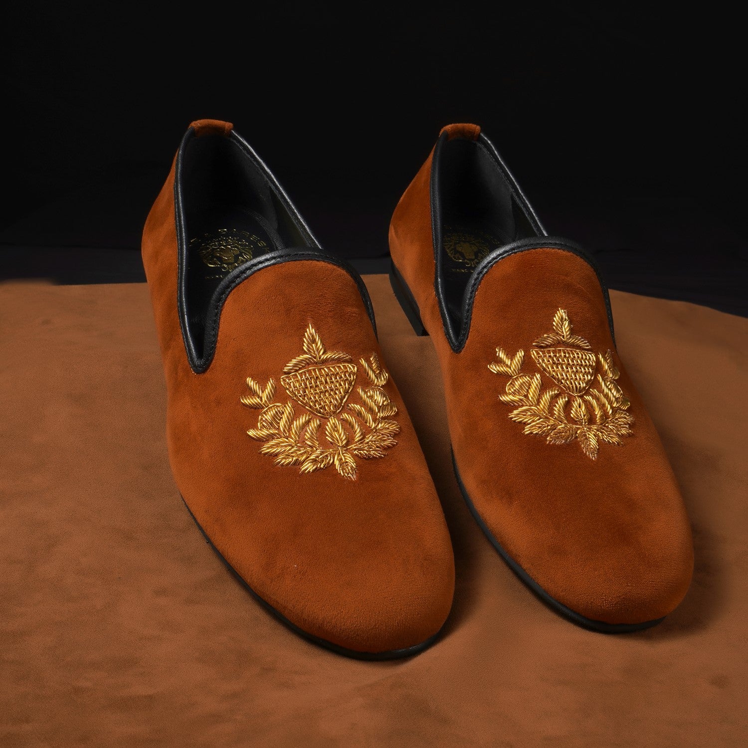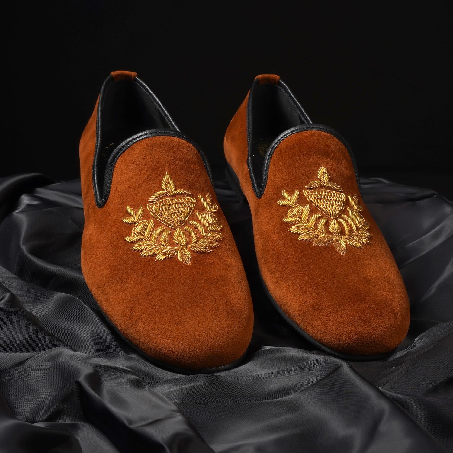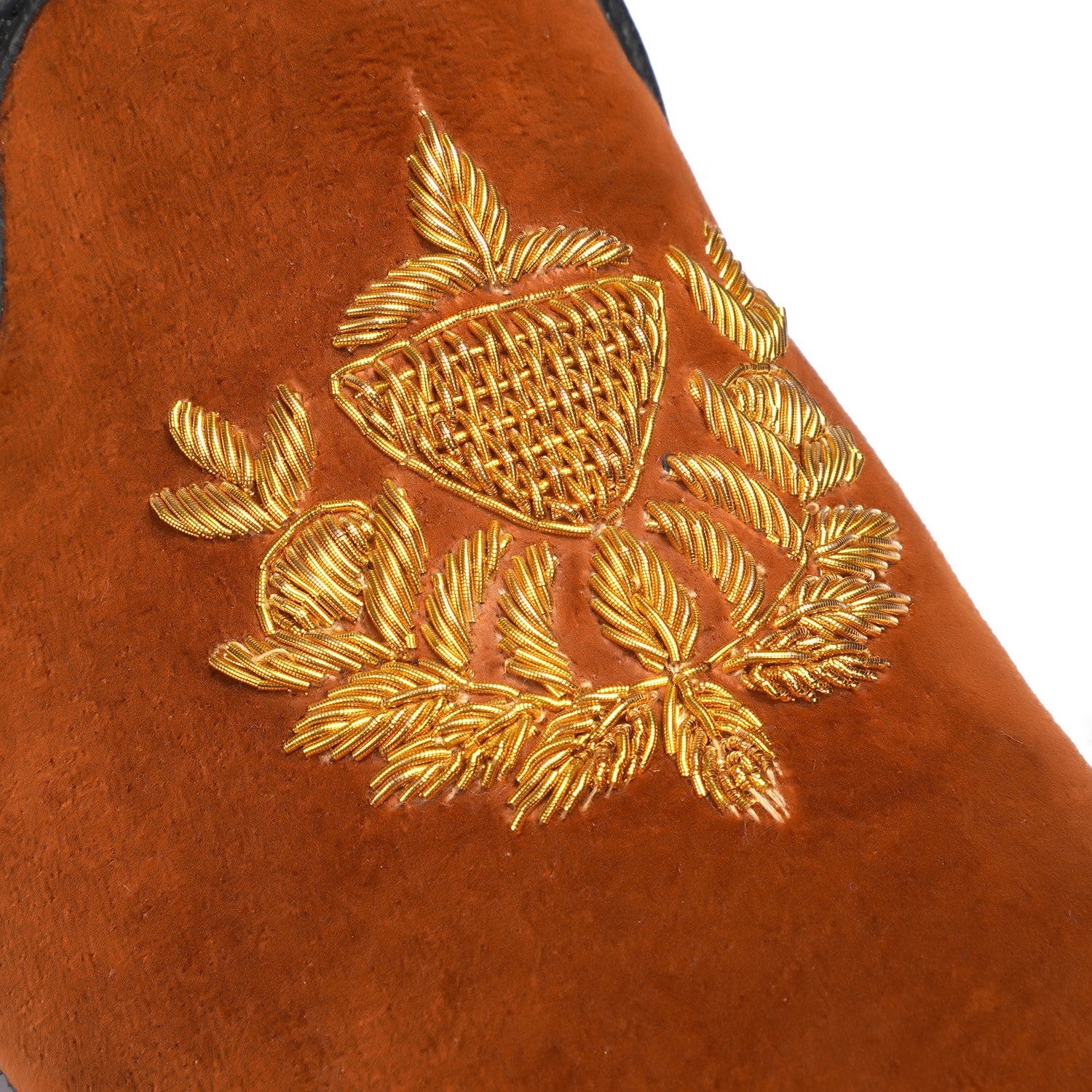 Gold Leaf Embellished Premium Tan Velvet Slip-On