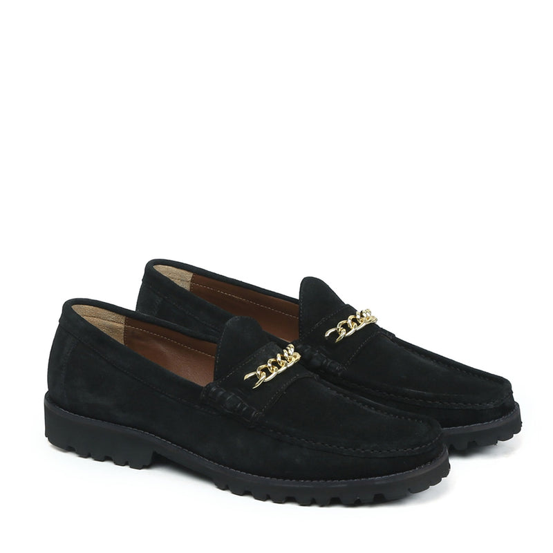 Black Chunky Sole Loafer with Golden Chain Embellishment