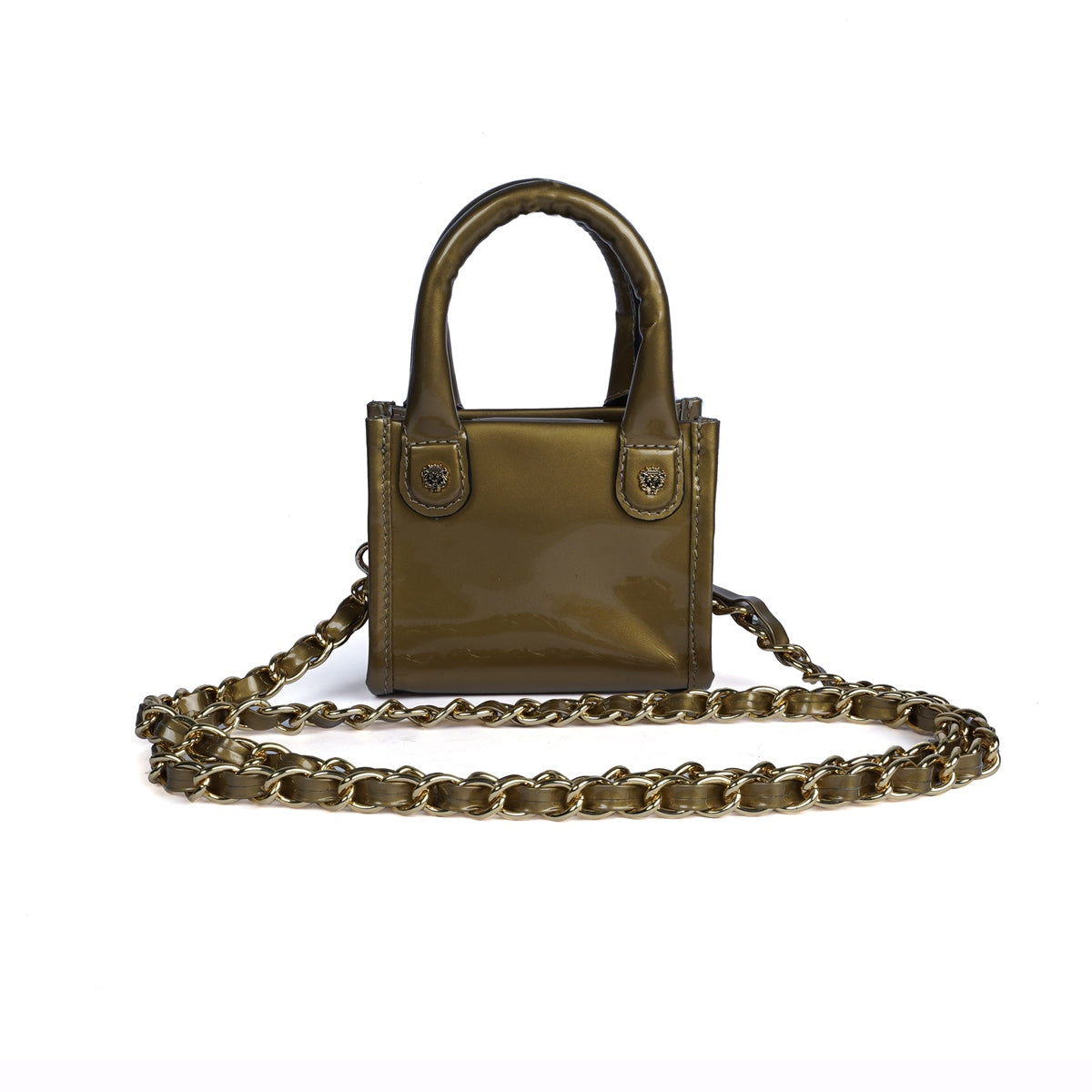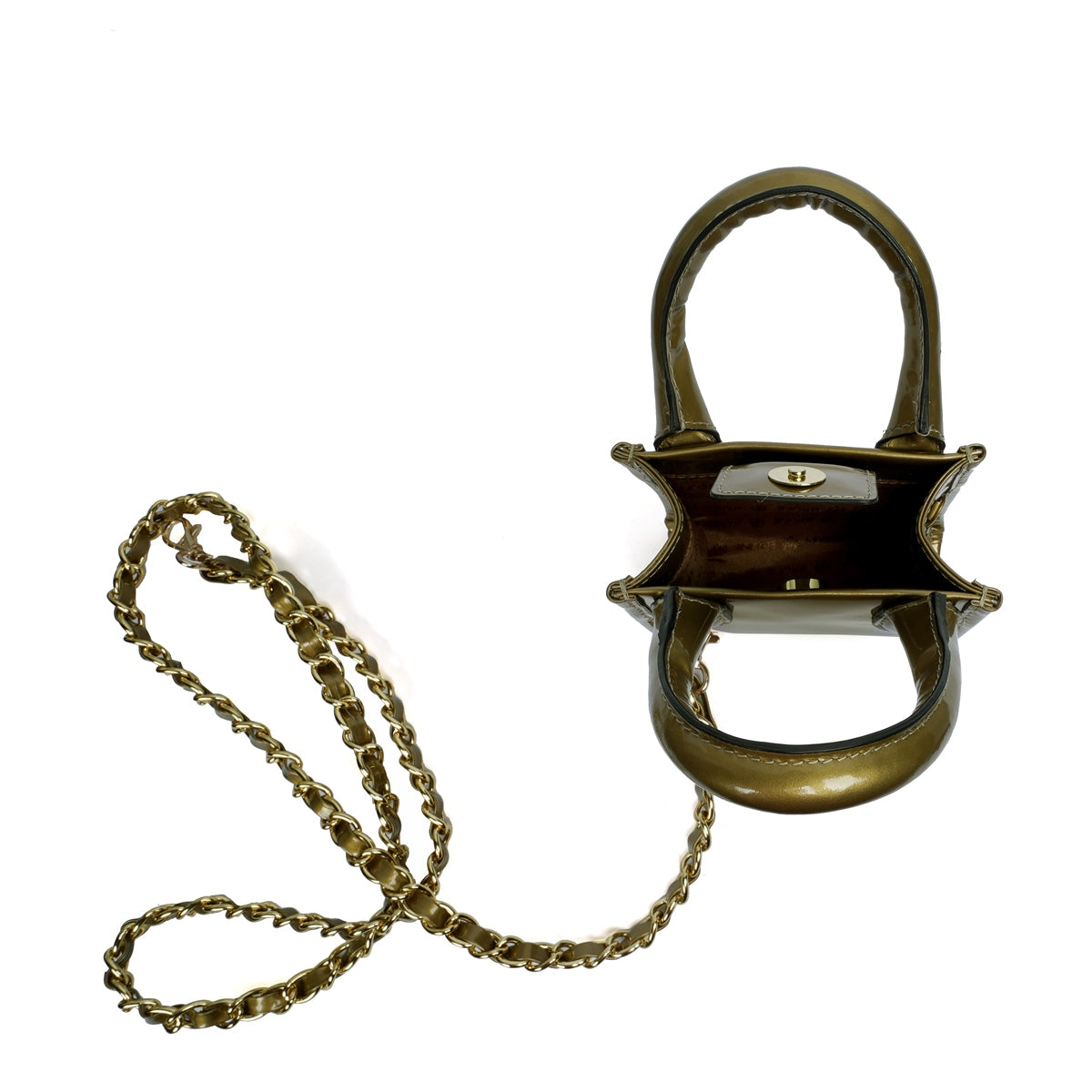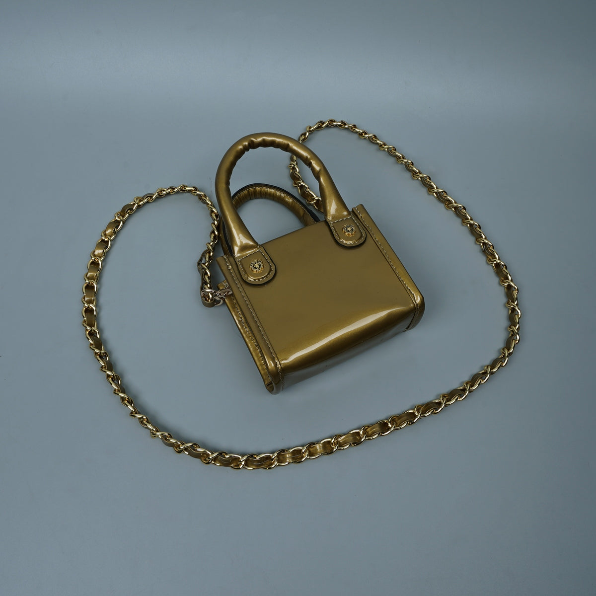 Golden Patent Leather Hand Bag in Micro Sized