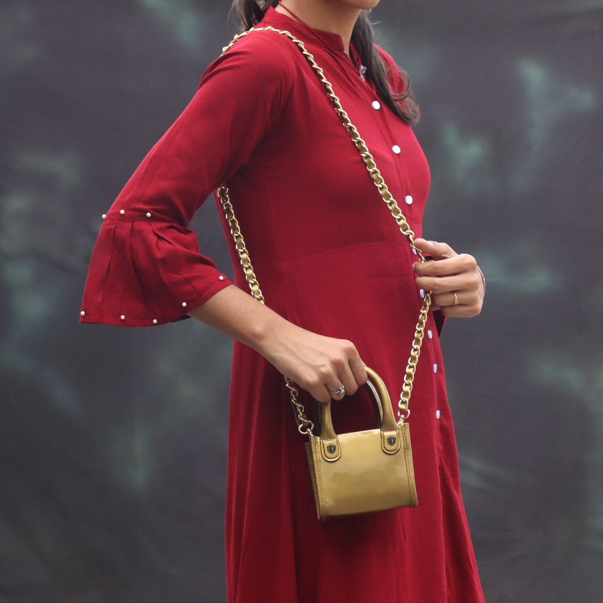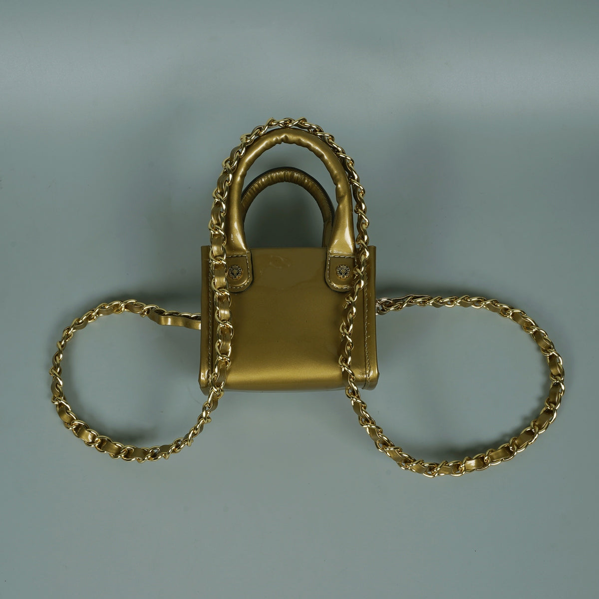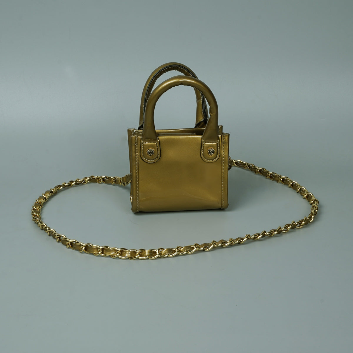 Golden Patent Leather Hand Bag in Micro Sized