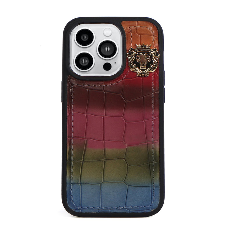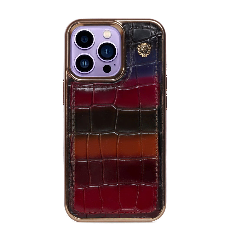 Introducing our Golden Rim Texture White Mobile Cover, designed by the renowned brand Brune & Bareskin. Crafted with premium quality textured leather and hand-stitched to perfection, this cover features a sleek golden rim and a metal lion logo for a unique and luxurious look. Keep your iPhone safe from dust, scratches, and stains with this exotic white cover. Elevate your style and protect your phone with our exclusive mobile cover.