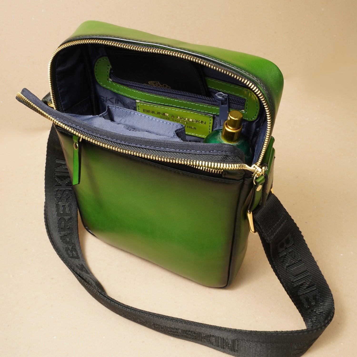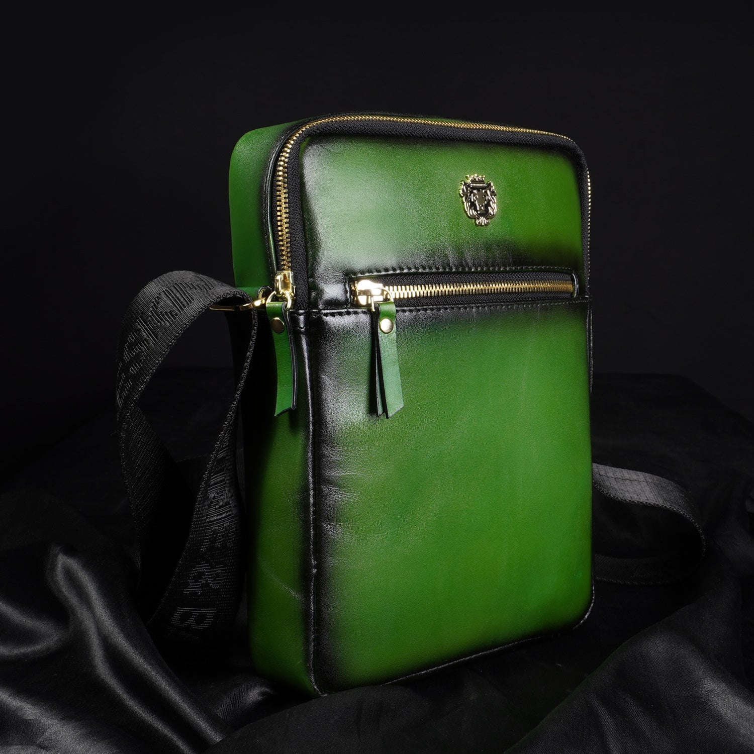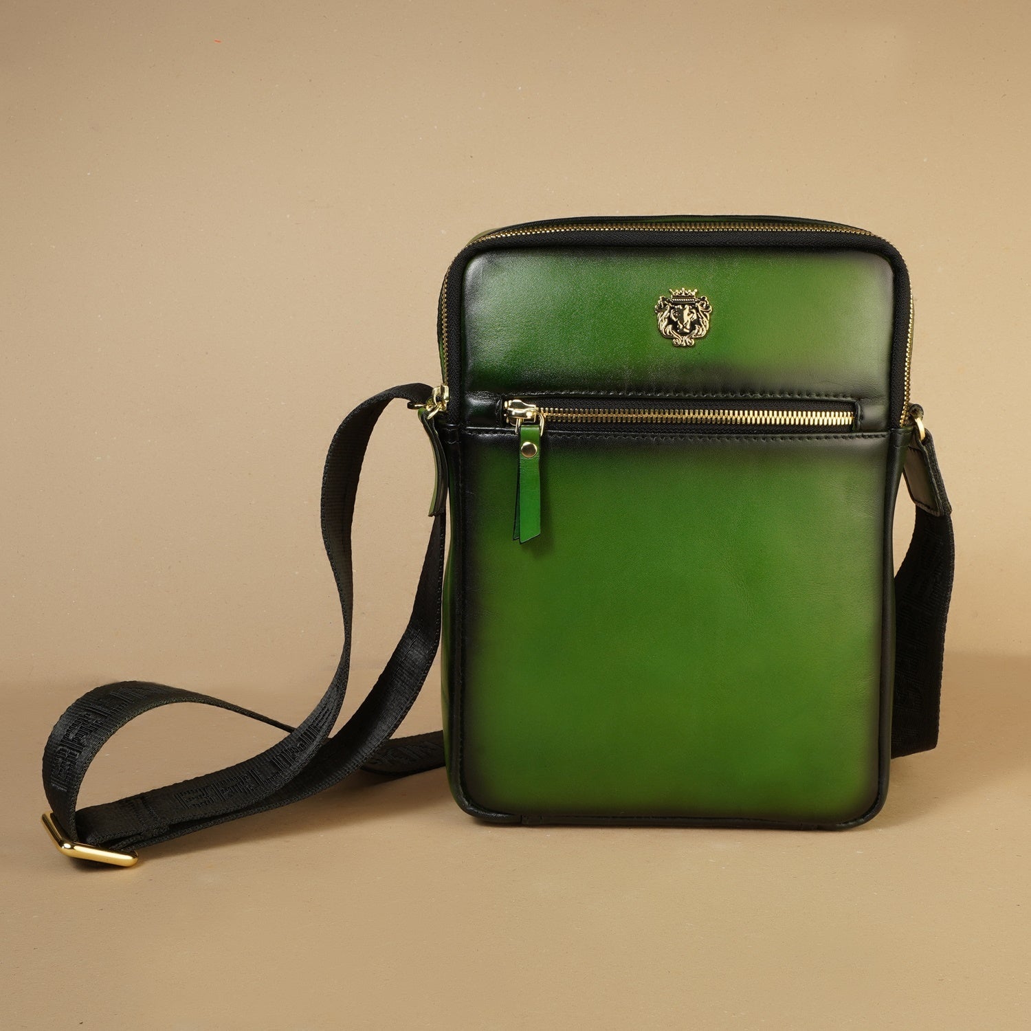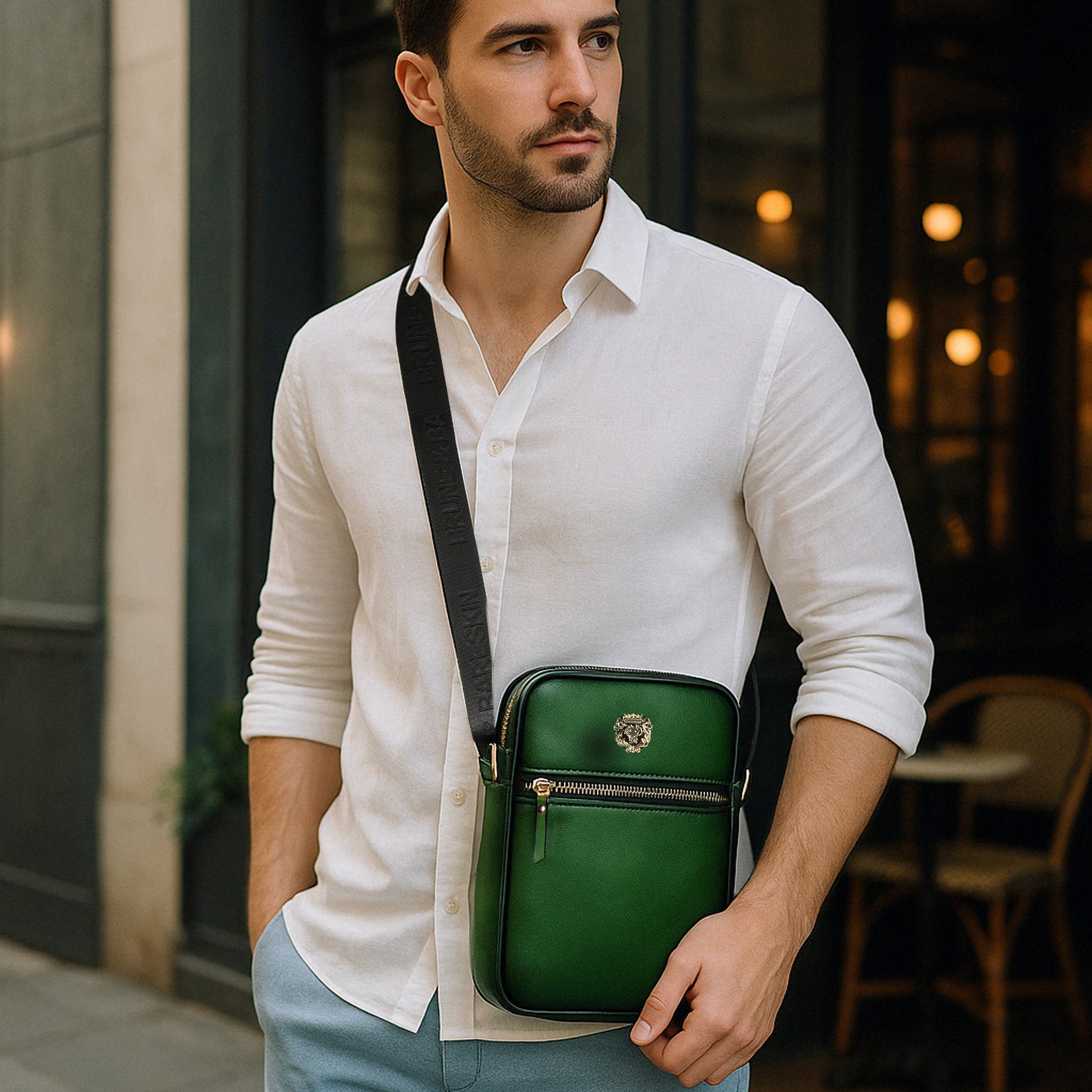 Expertly crafted with luxury and function in mind, our Cross-Body Bag is the perfect accessory for any man on the go. This sling bag features a gold finish brand lion logo for a touch of elegance. Stay organized while traveling with multiple compartments, a front zipper pocket, and a convenient backside mesh pocket. The adjustable shoulder strap allows for comfortable wear no matter where your journey takes you.