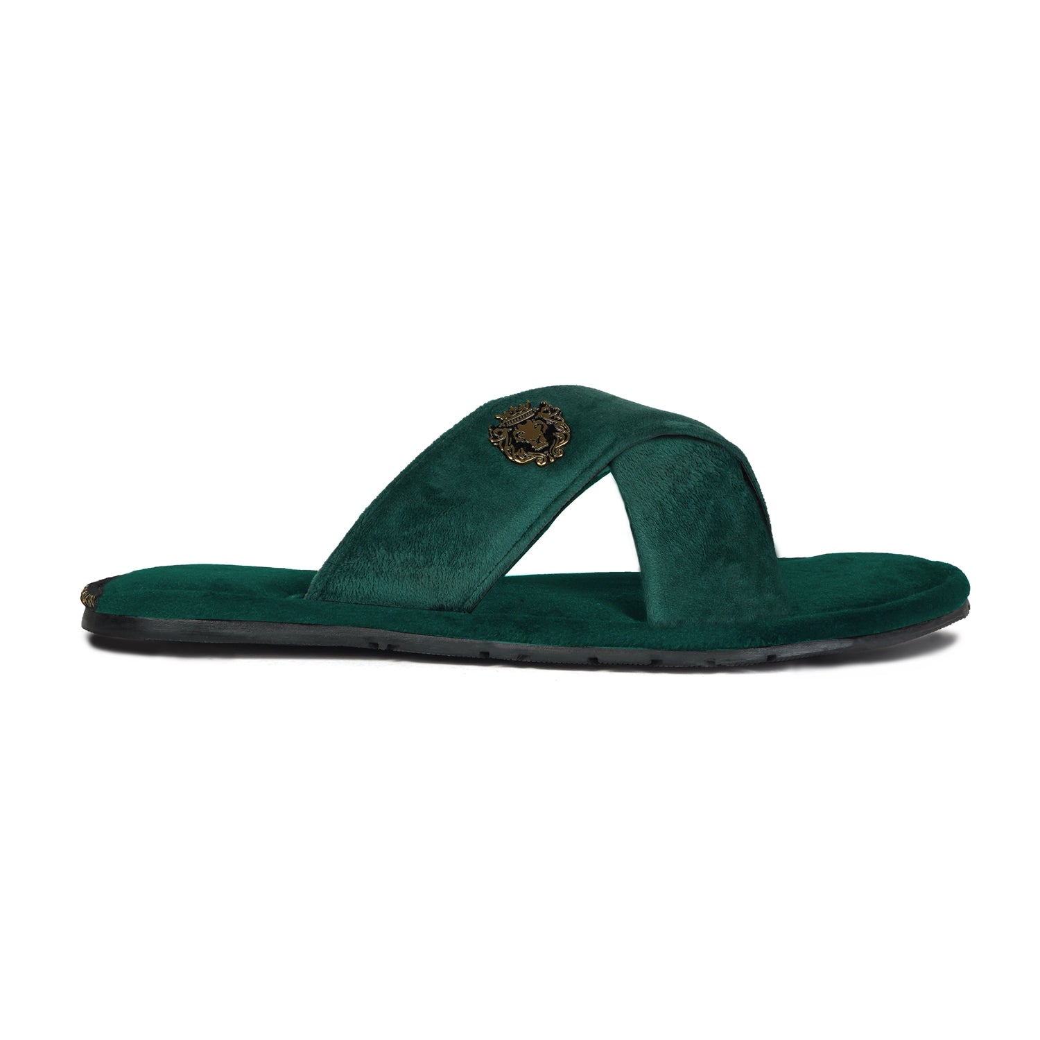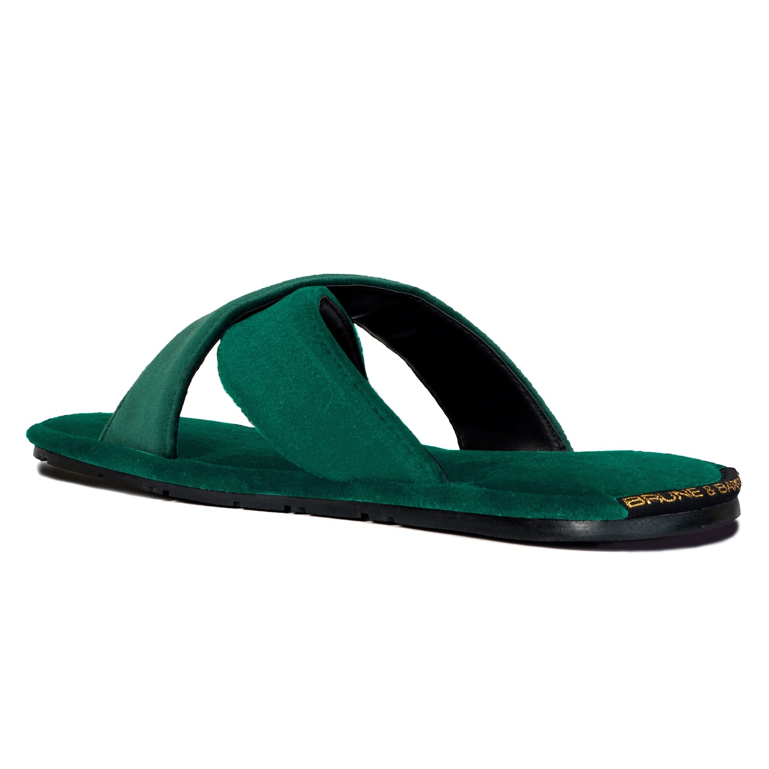 Green Cross Straps Comfy Velvet Slide-in Slippers By Brune & Bareskin
