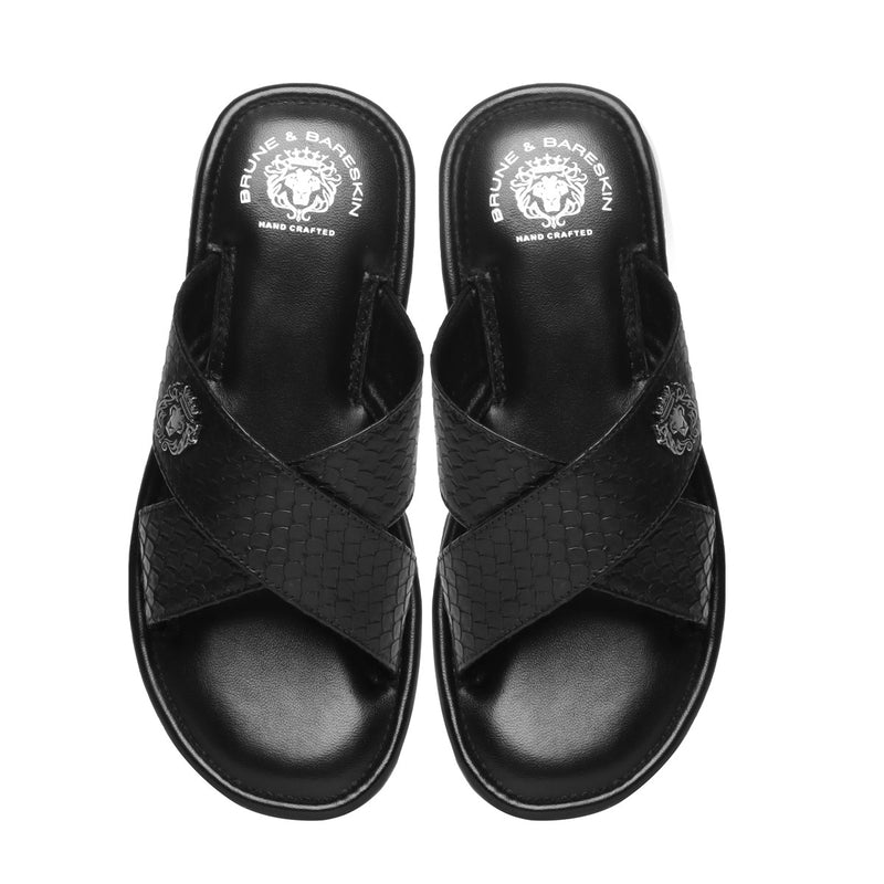 These super-soft velvet base slippers are a must-have of the season. The gel injected memory foam base is designed to provide you comfort while walking. We use special layering techniques to keep the base cozy and retain its shape. The wider cross-design straps with BRUNE & BARESKIN Lion Logo enhance the elegance further. Carry these with Jeans, Shorts, Capris and other casual wears to be style leader. Anti-Skid Rubber outer sole ensures the perfect walking grip.