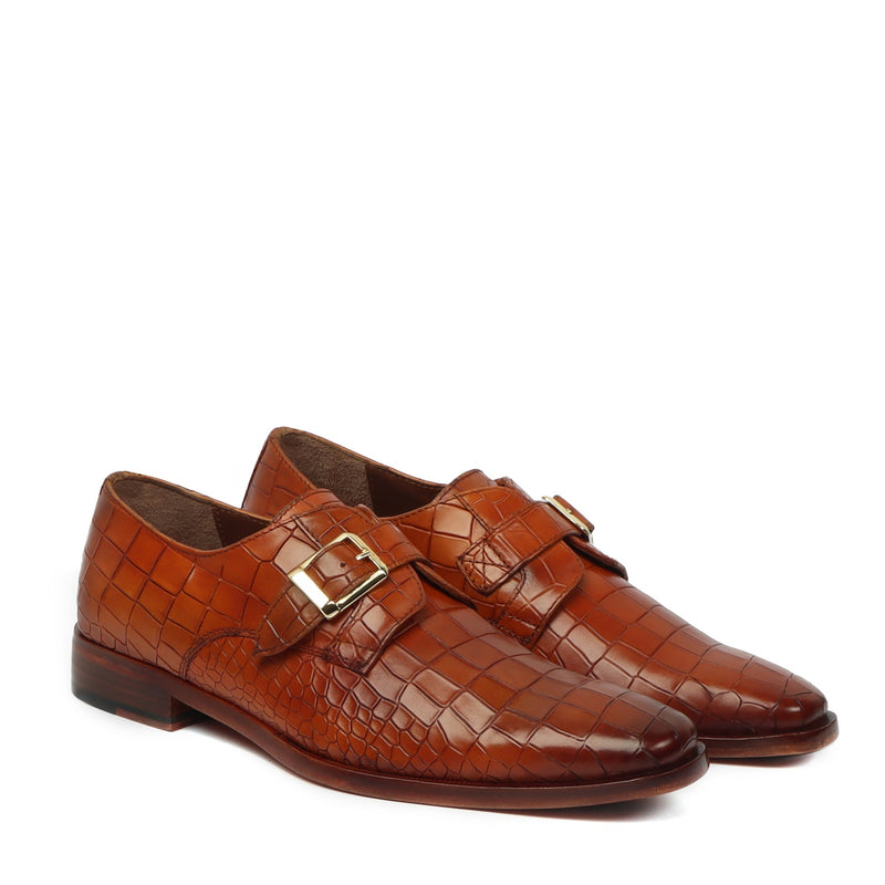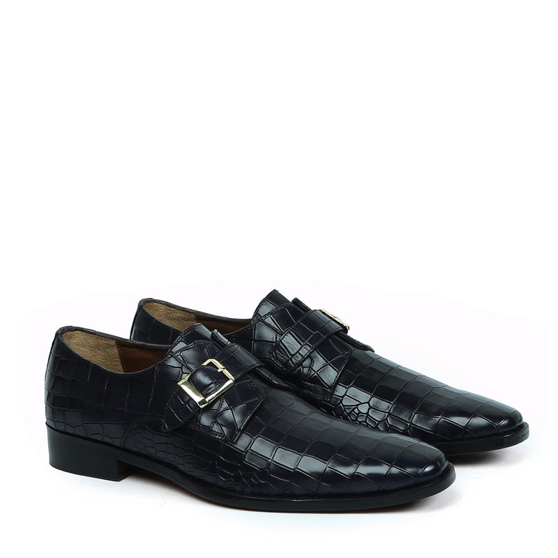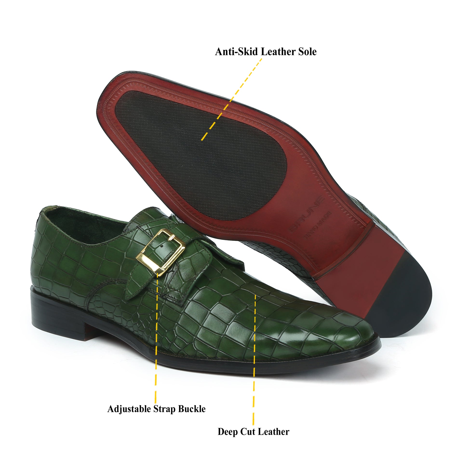 Class, Comfort & Style is available at Brune & Bareskin. If you prefer the buckle and strap system for your shoes, over lace shoes, then this is the perfect style for you. These Green colored deep-cut Croco leather formal men's shoe has a comfortable fit over slip-on and ends over the arch of the feet, with the pointed tip of a shoe. Classy in looks & comfort in wearing with adjustable buckle strap complete a men's shoe. It would be perfect to match up with formals & casual as well. The fine leather sole elevates its durability.