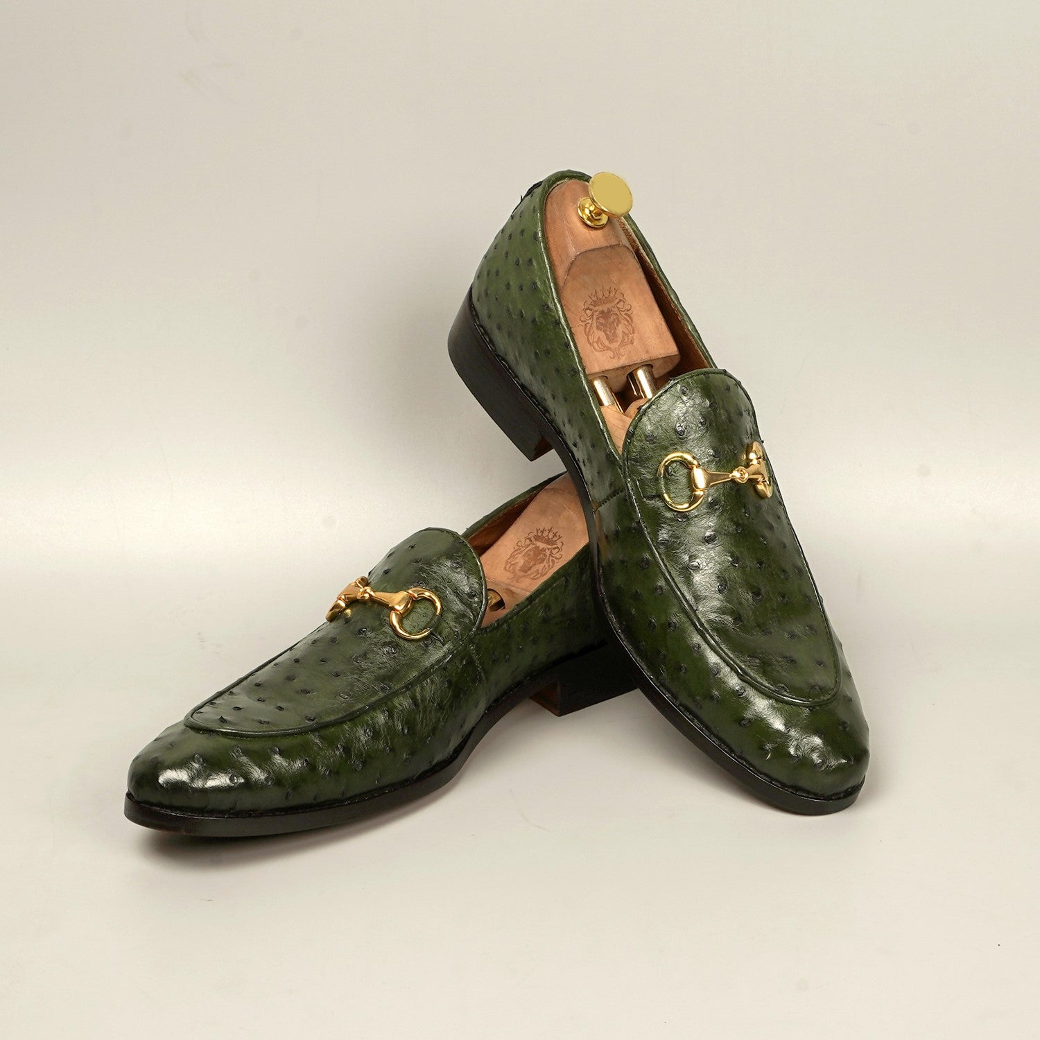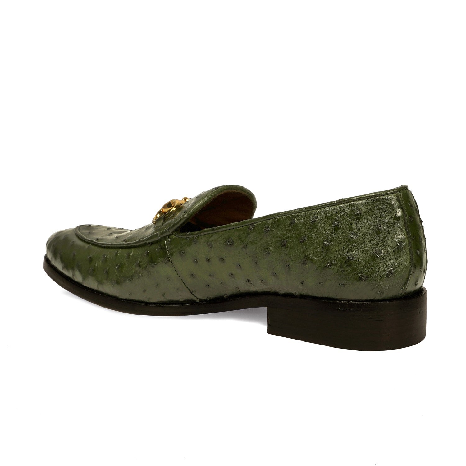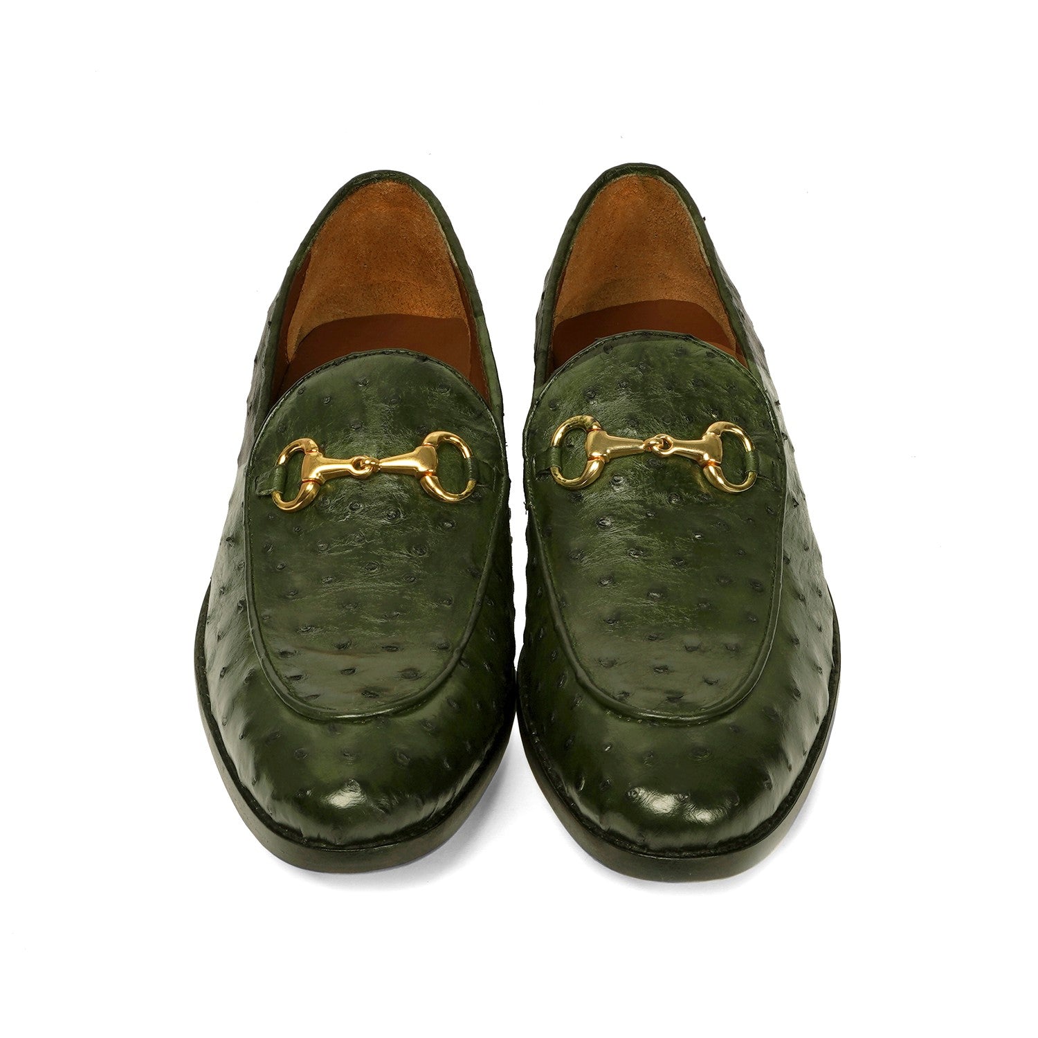 Green Loafer Exclusive Authentic Ostrich Leather with Horse-Bit Buckle