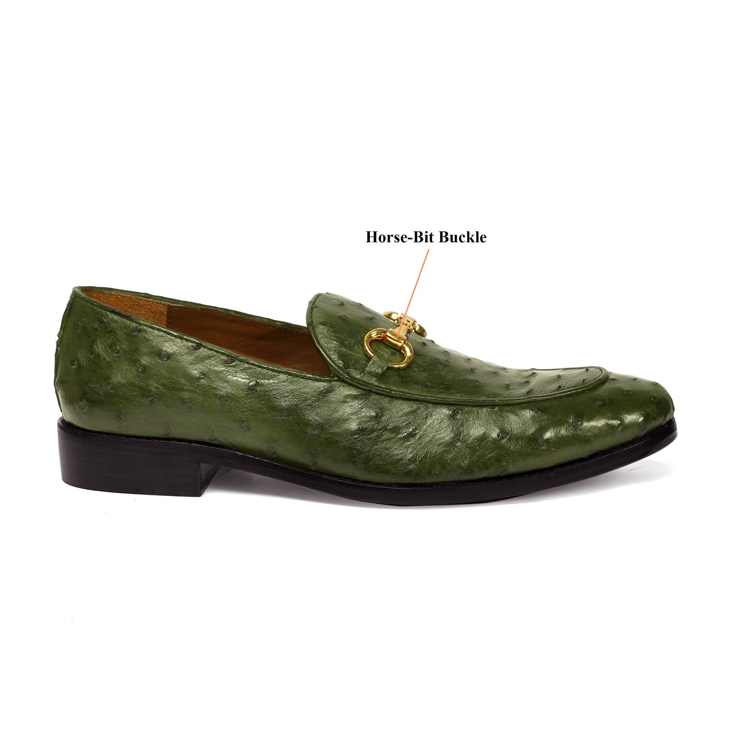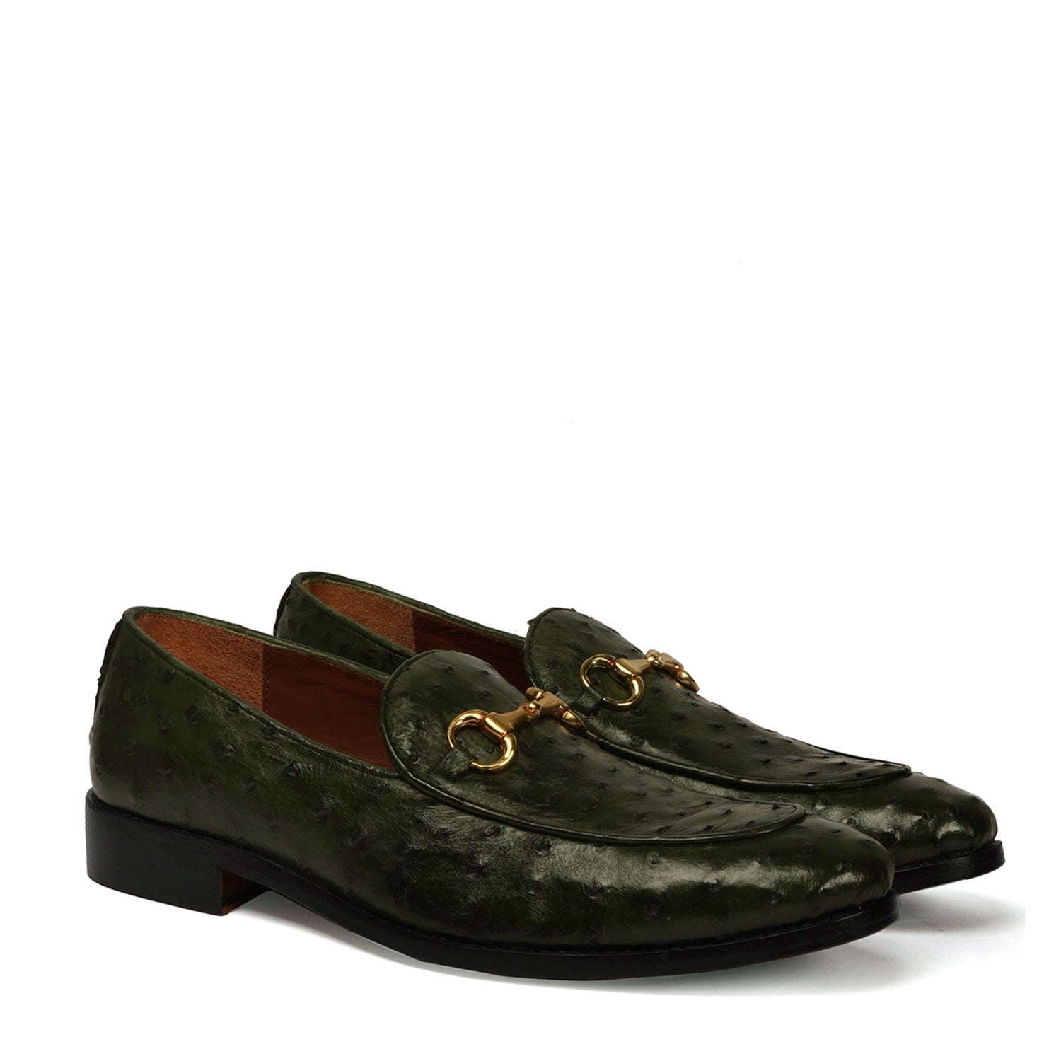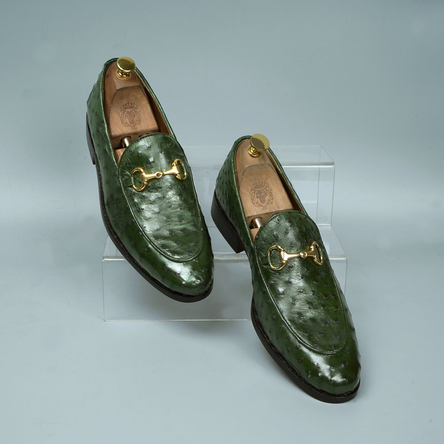 Green Loafer Exclusive Authentic Ostrich Leather with Horse-Bit Buckle