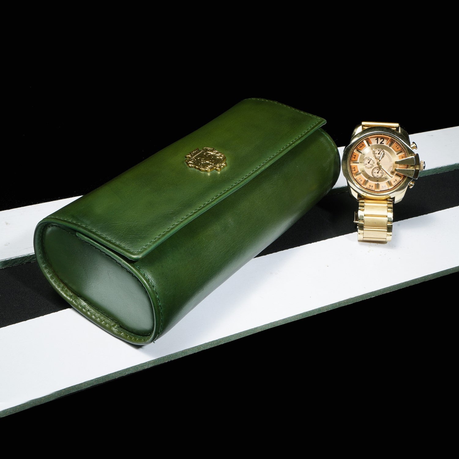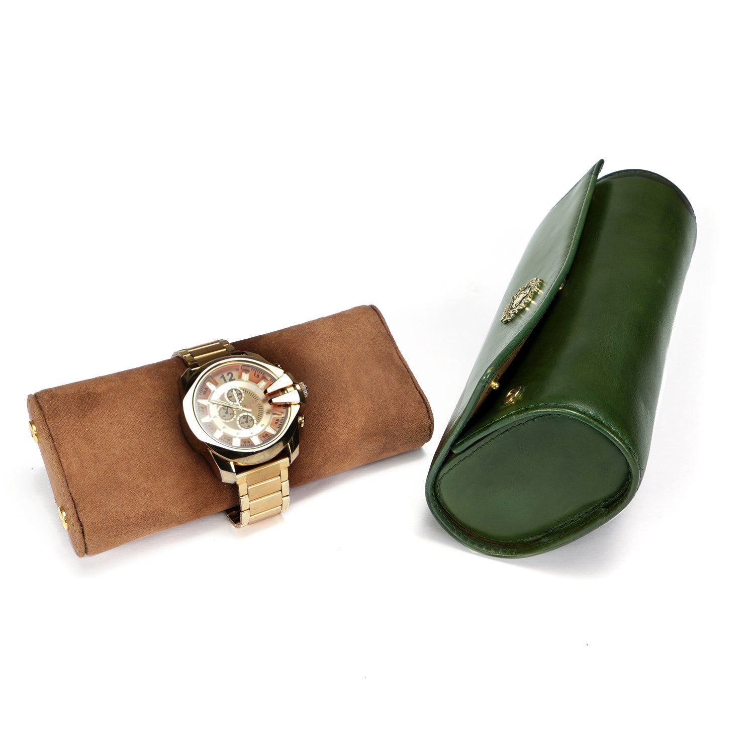 Green Genuine Leather Wrist Watch Roll/Carrying Case by Brune & Bareskin