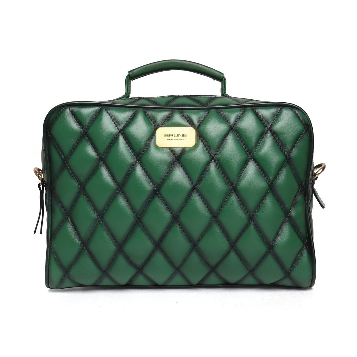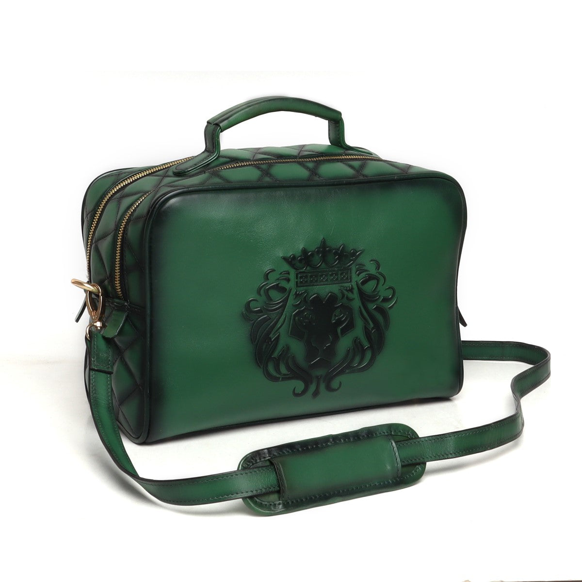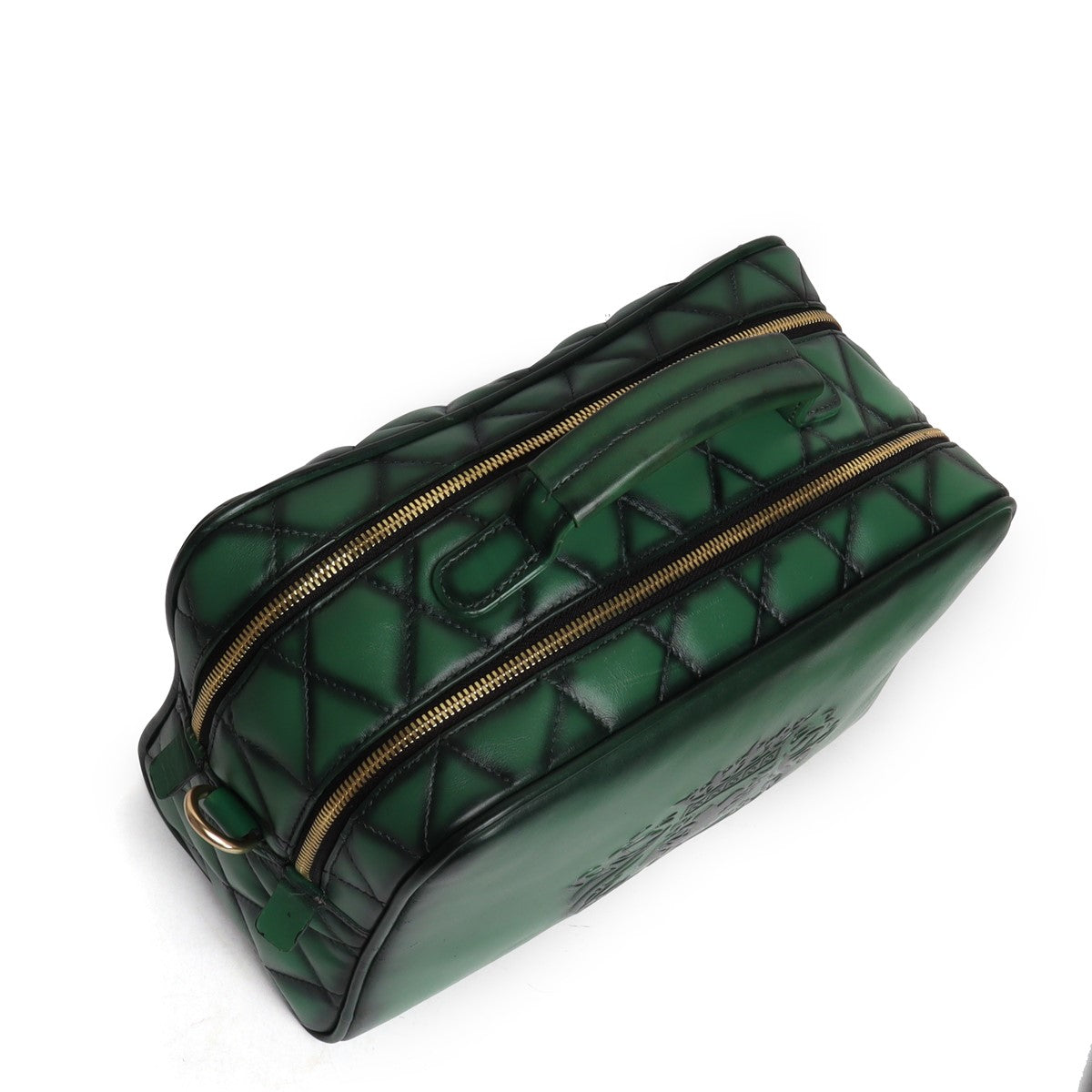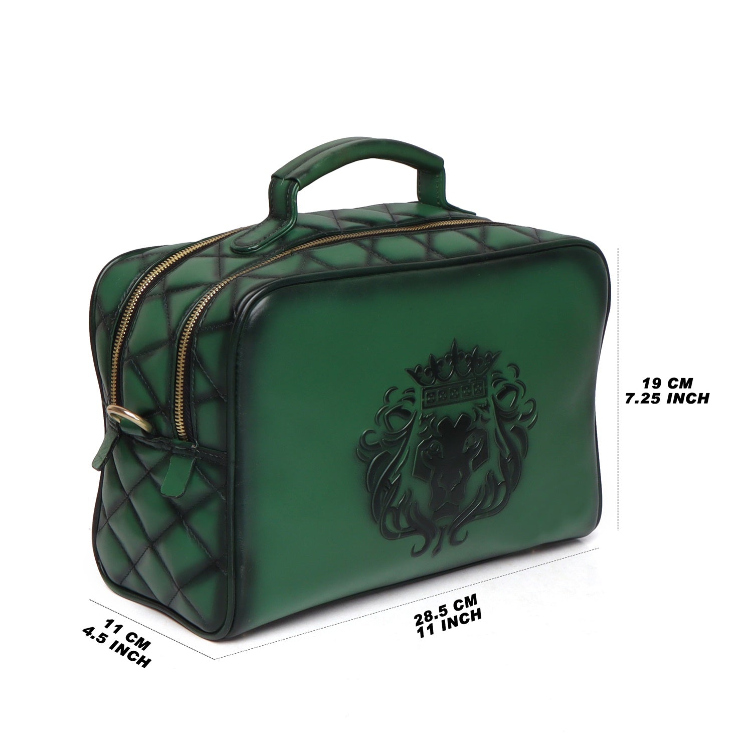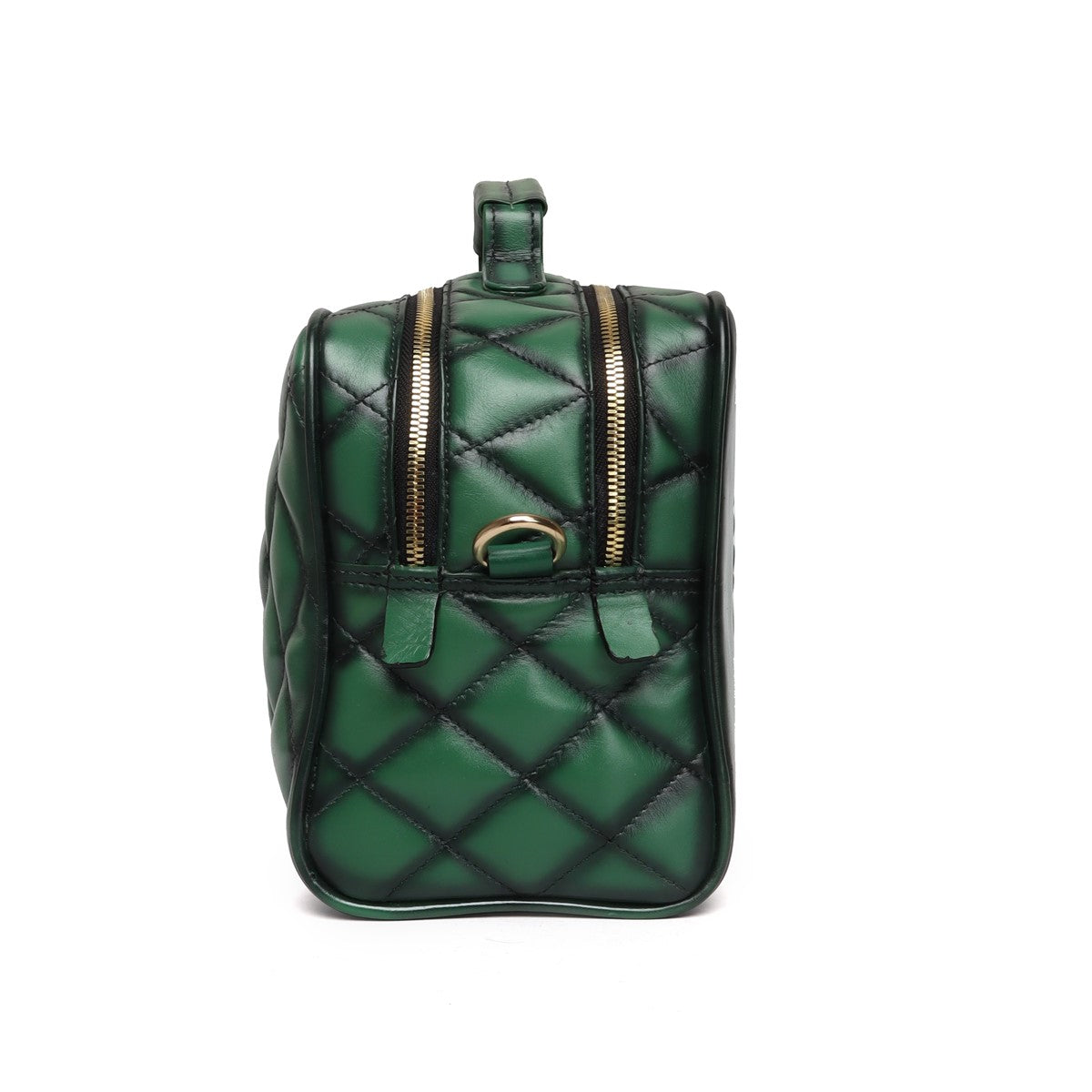 Green Diamond Stitched Leather Kit Bag with Sling Strap by Brune & Bareskin