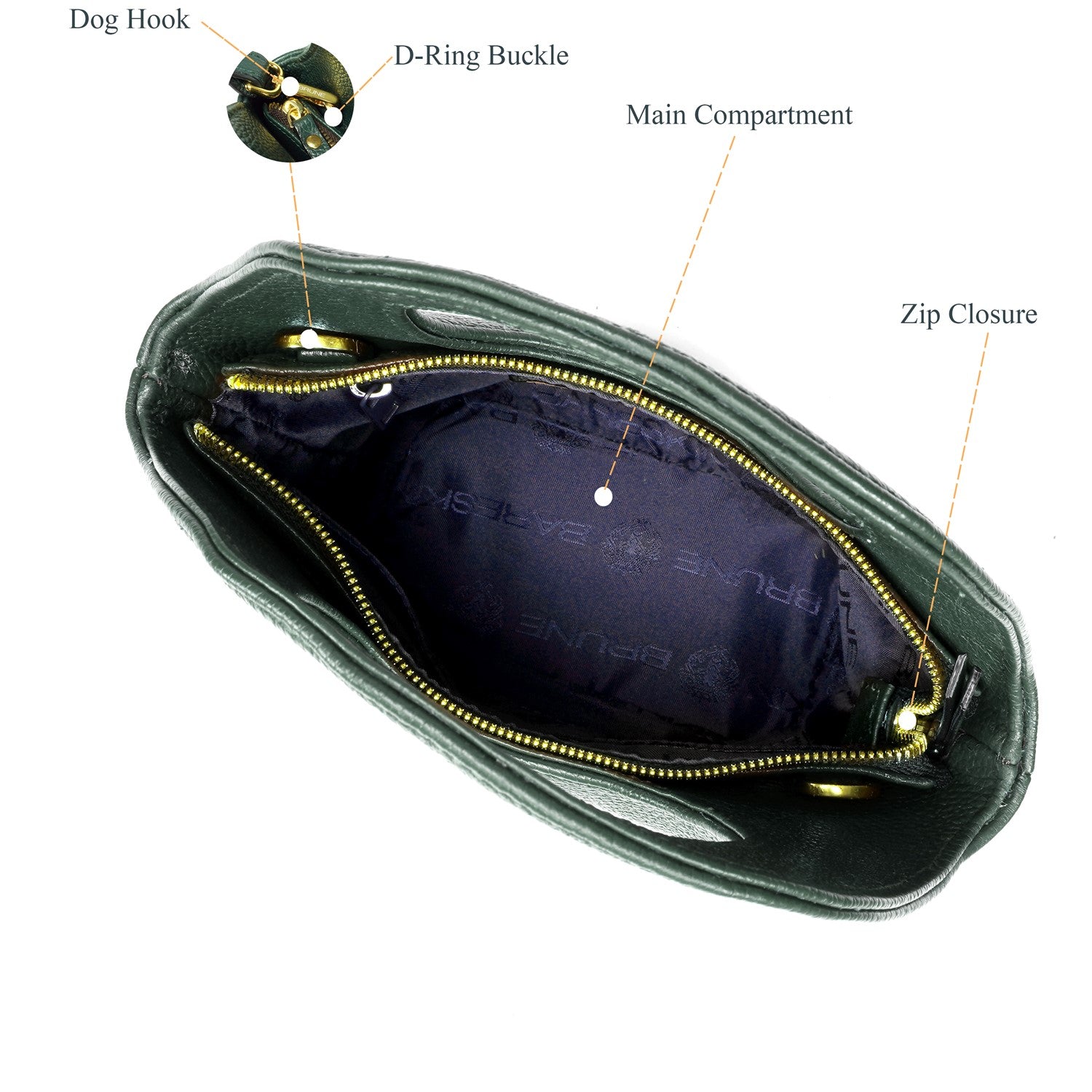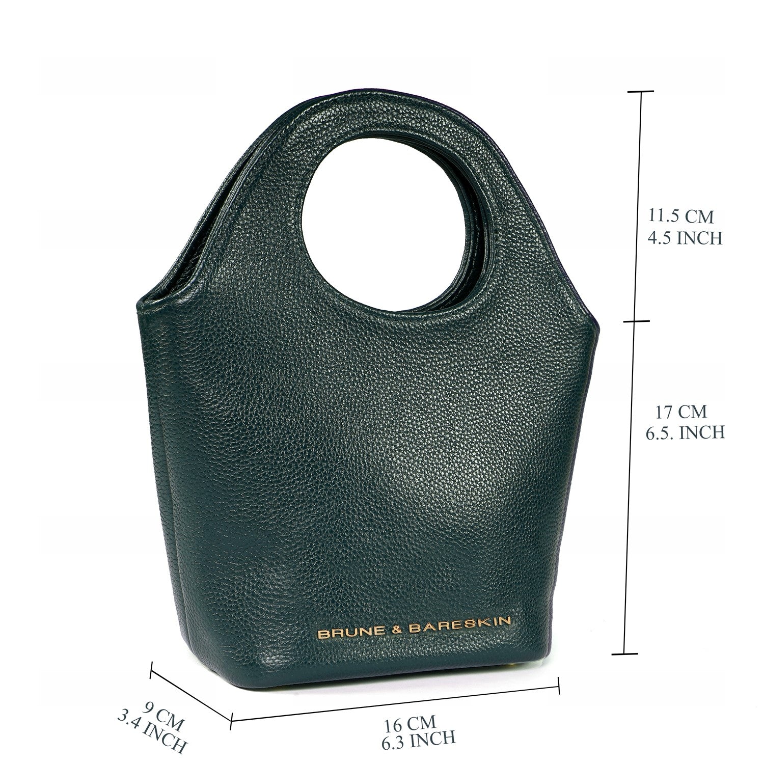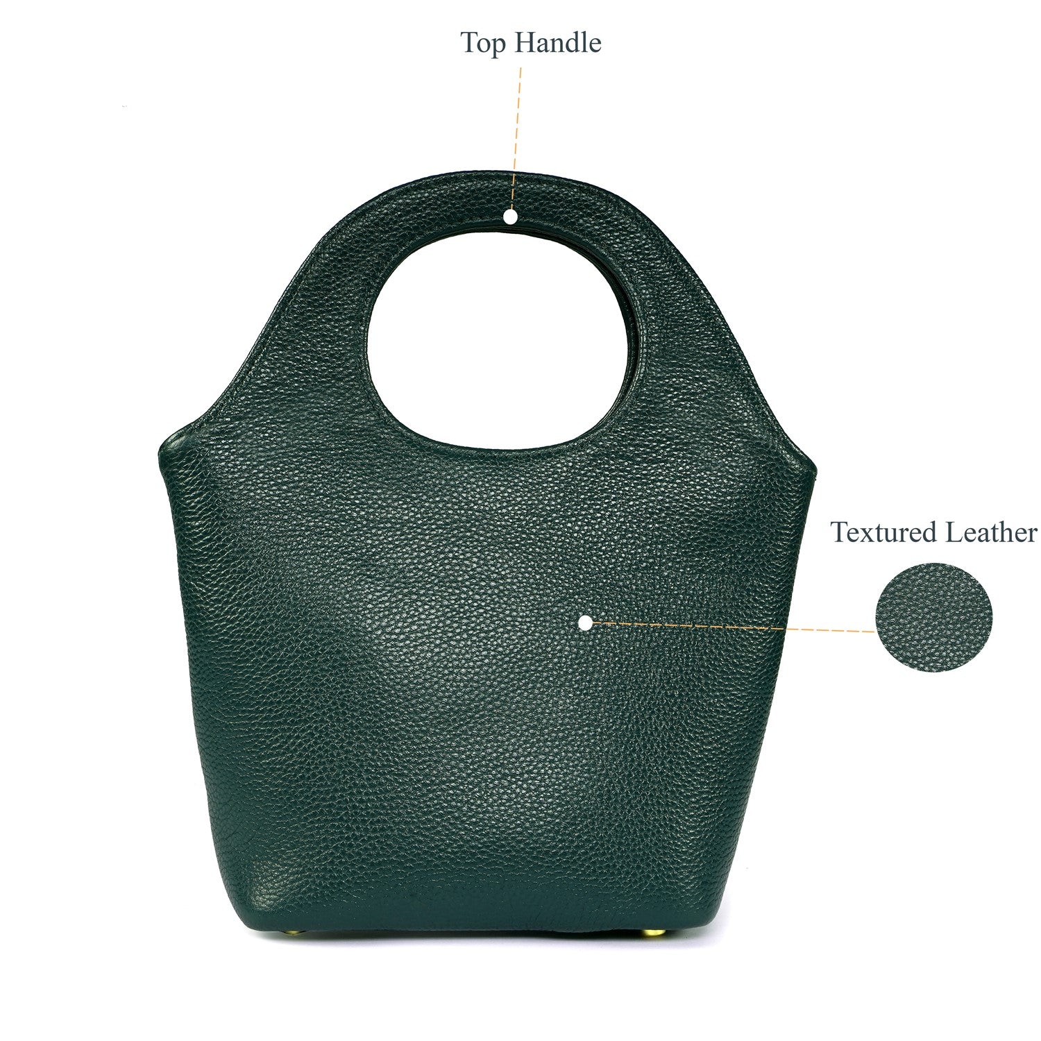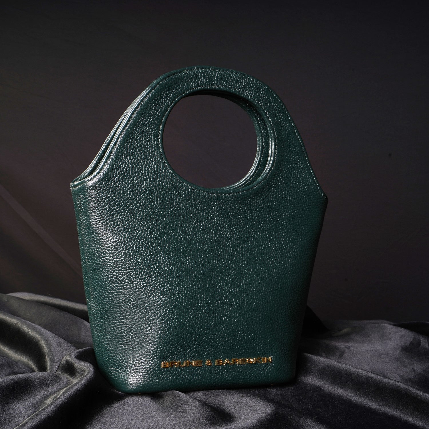 This elegant Green pebbled leather handbag combines style and durability with its rich, textured surface that resists wear while adding a luxurious feel. It features a distinctive loop handle for a comfortable grip and a stylish touch, paired with a secure dog hook fastening for added functionality. The golden zip closure not only ensures your belongings stay safe but also enhances the overall aesthetic with a hint of sophistication. Designed for both everyday use and special occasions, this handbag strikes the perfect balance between practicality and timeless elegance.