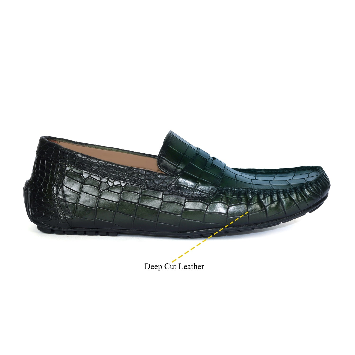 Green Stitched Strap Loafer in Deep Cut Leather