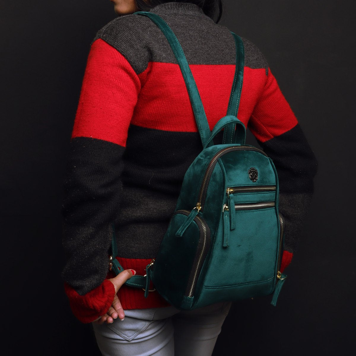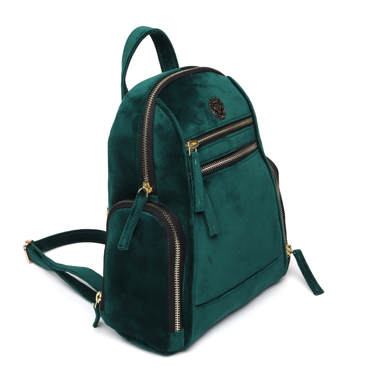 Green Velvet Signature Metal Lion Women Backpack By Brune & Bareskin