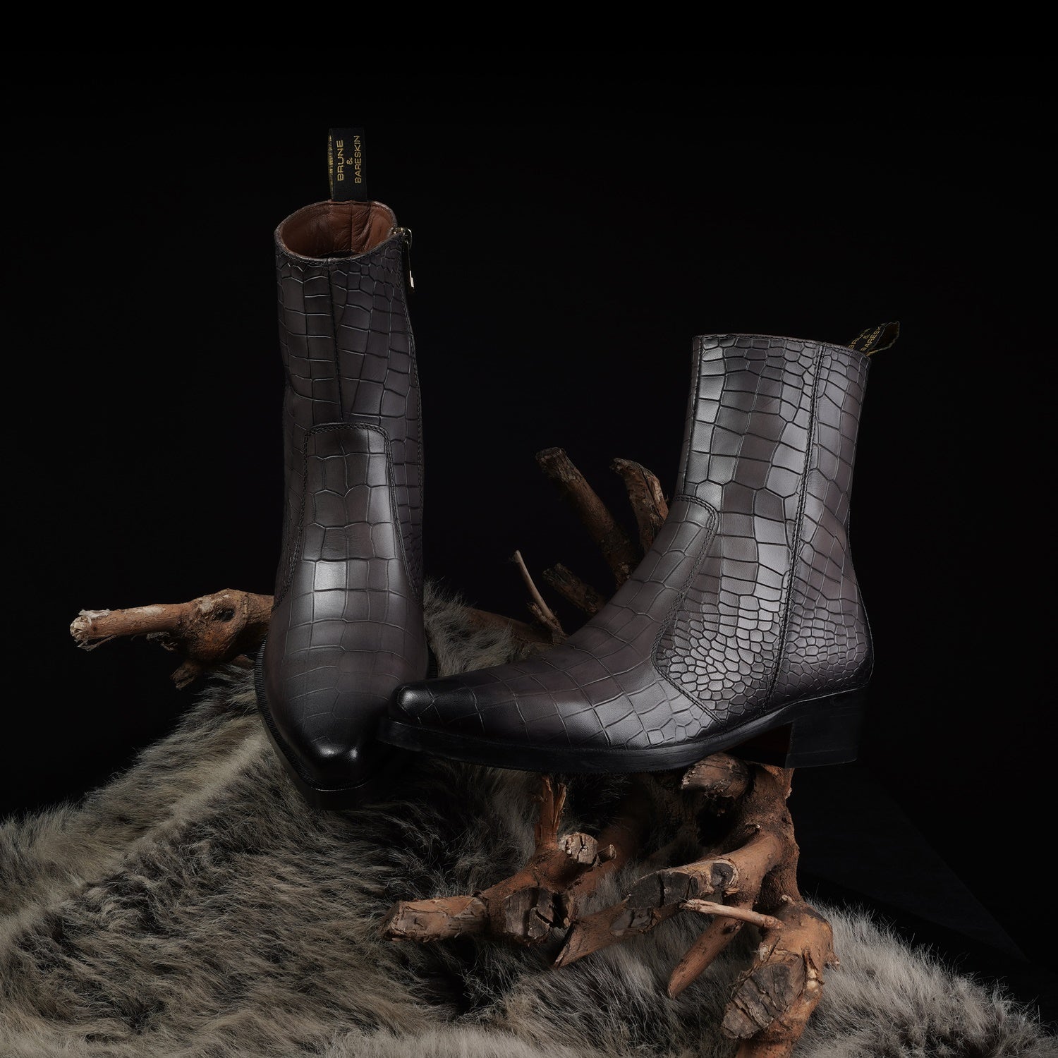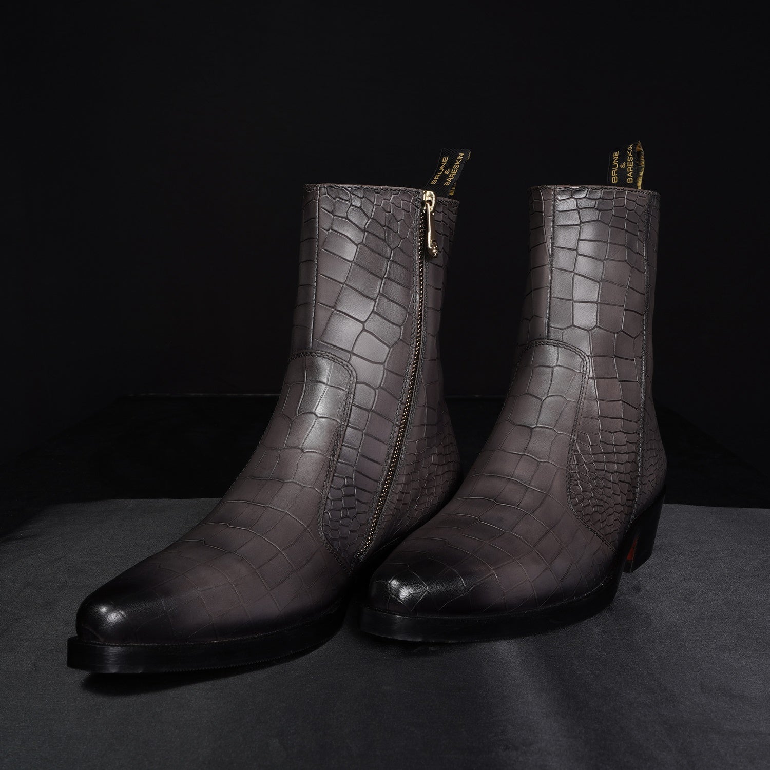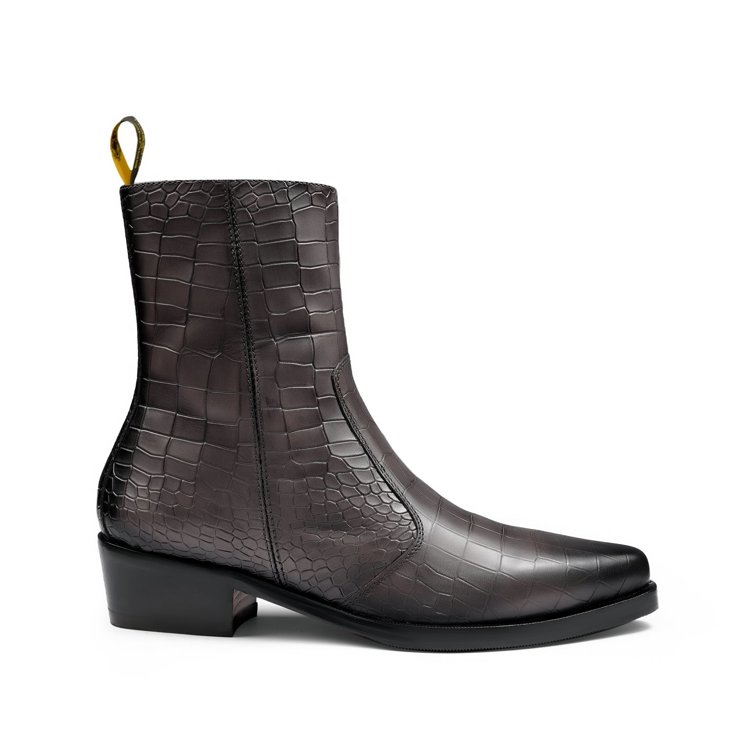 Grey Cowboy Deep Cut Croco Leather Cuban Heel Boots