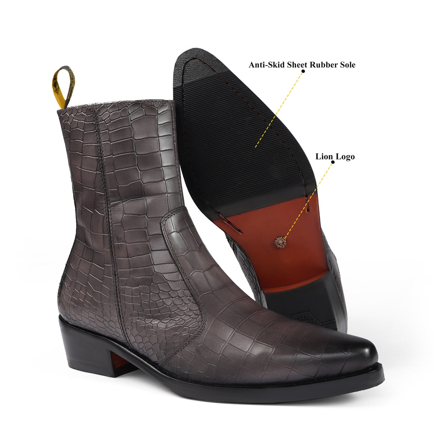 Ankle boot in leather are a dream come true for many a fashion-aware executives. We craft these high ankle grey brushed off leather cowboy boots to give you an elite look. This shoe can be customized according to your liking. This Shoe is entirely handcrafted by our expertise.