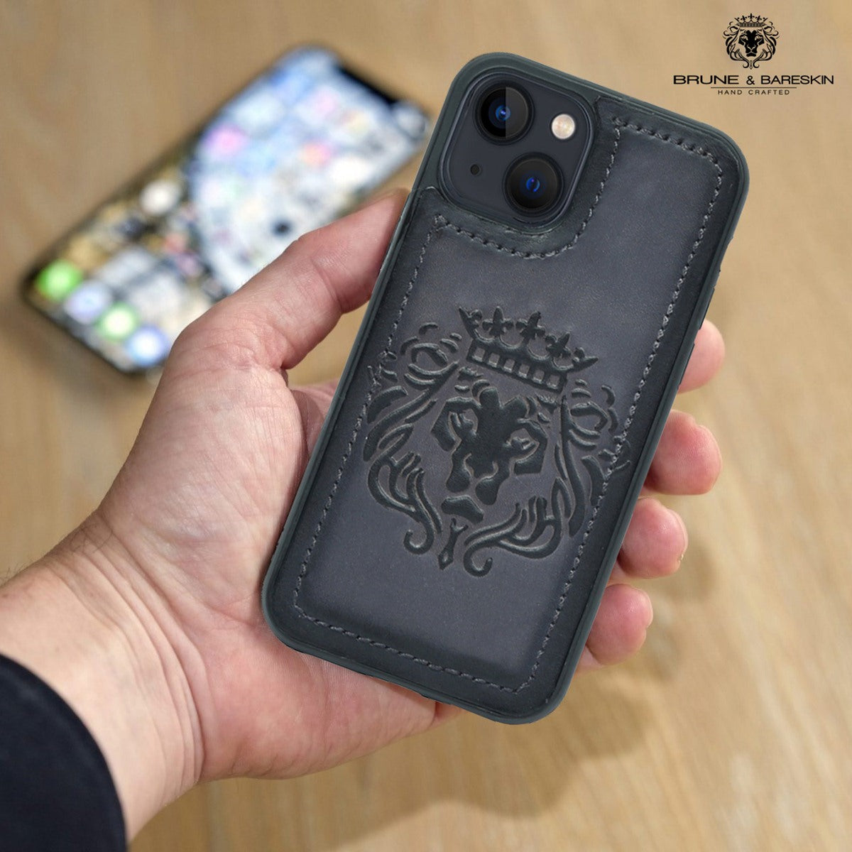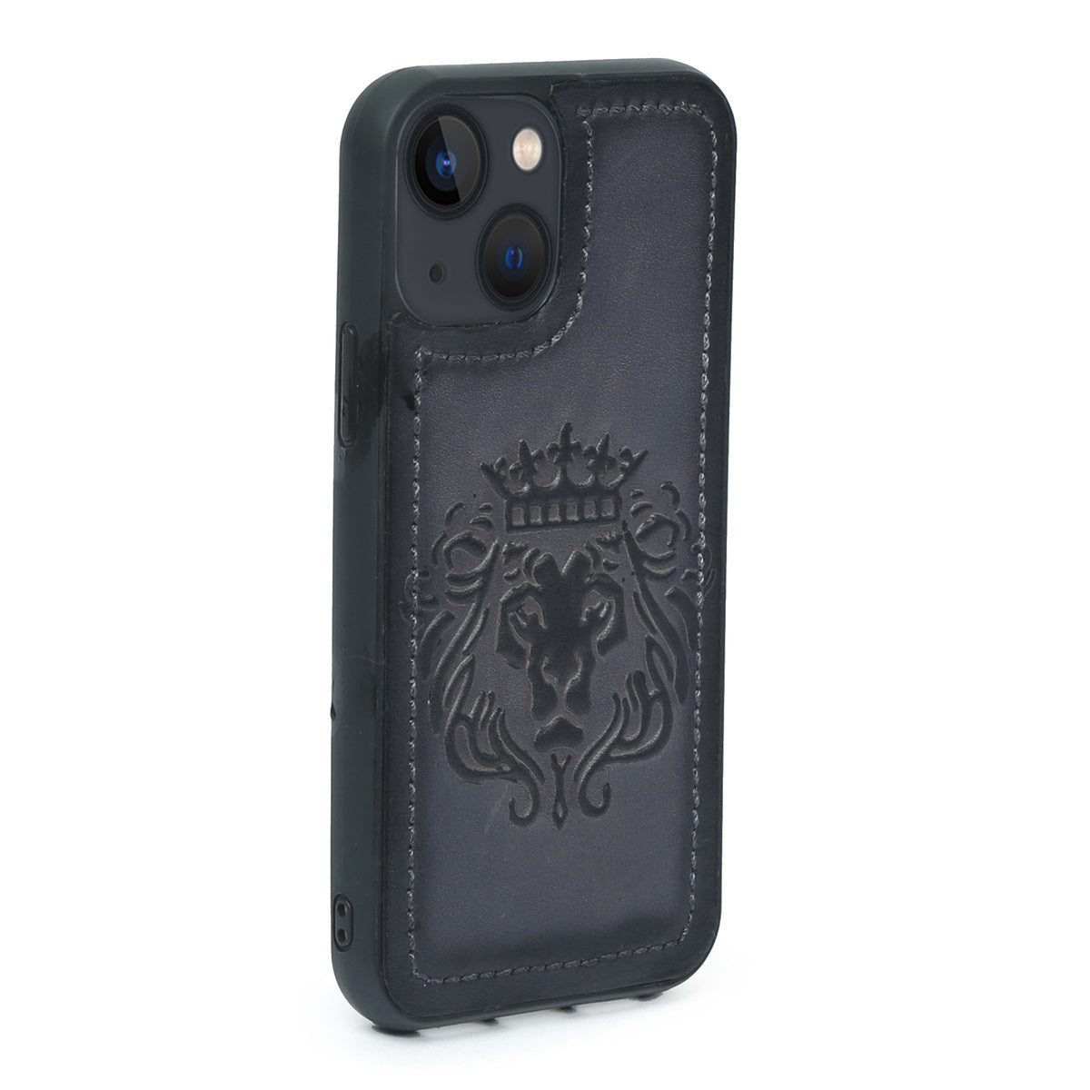 Grey Leather Lion Embossed Mobile Cover by Brune & Bareskin