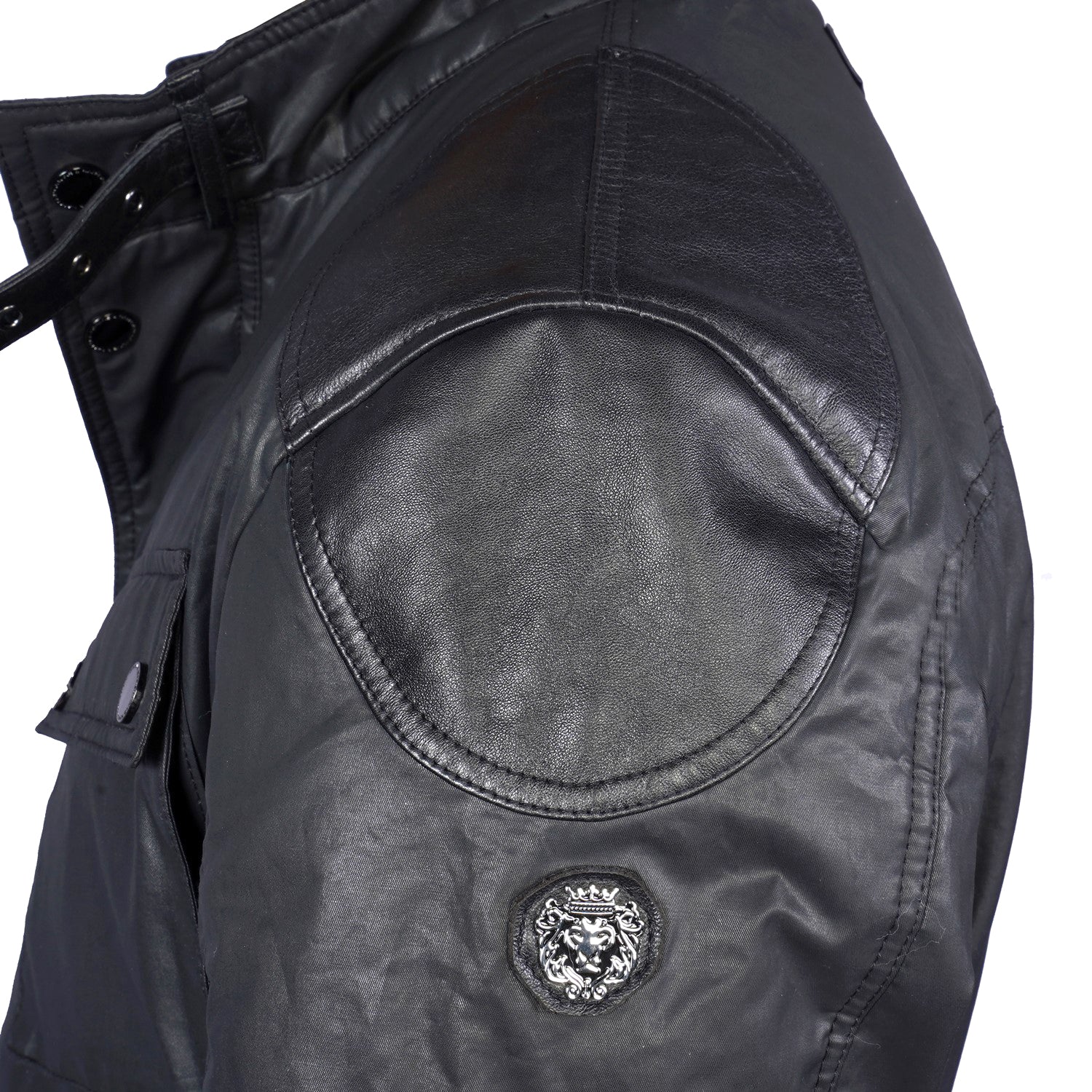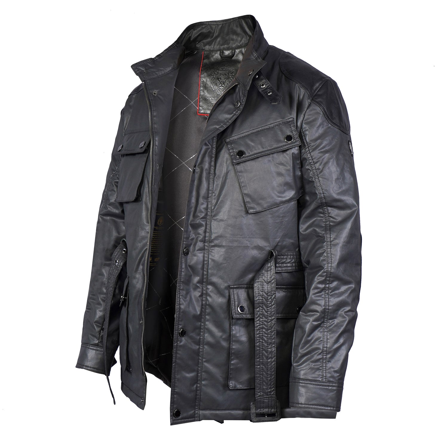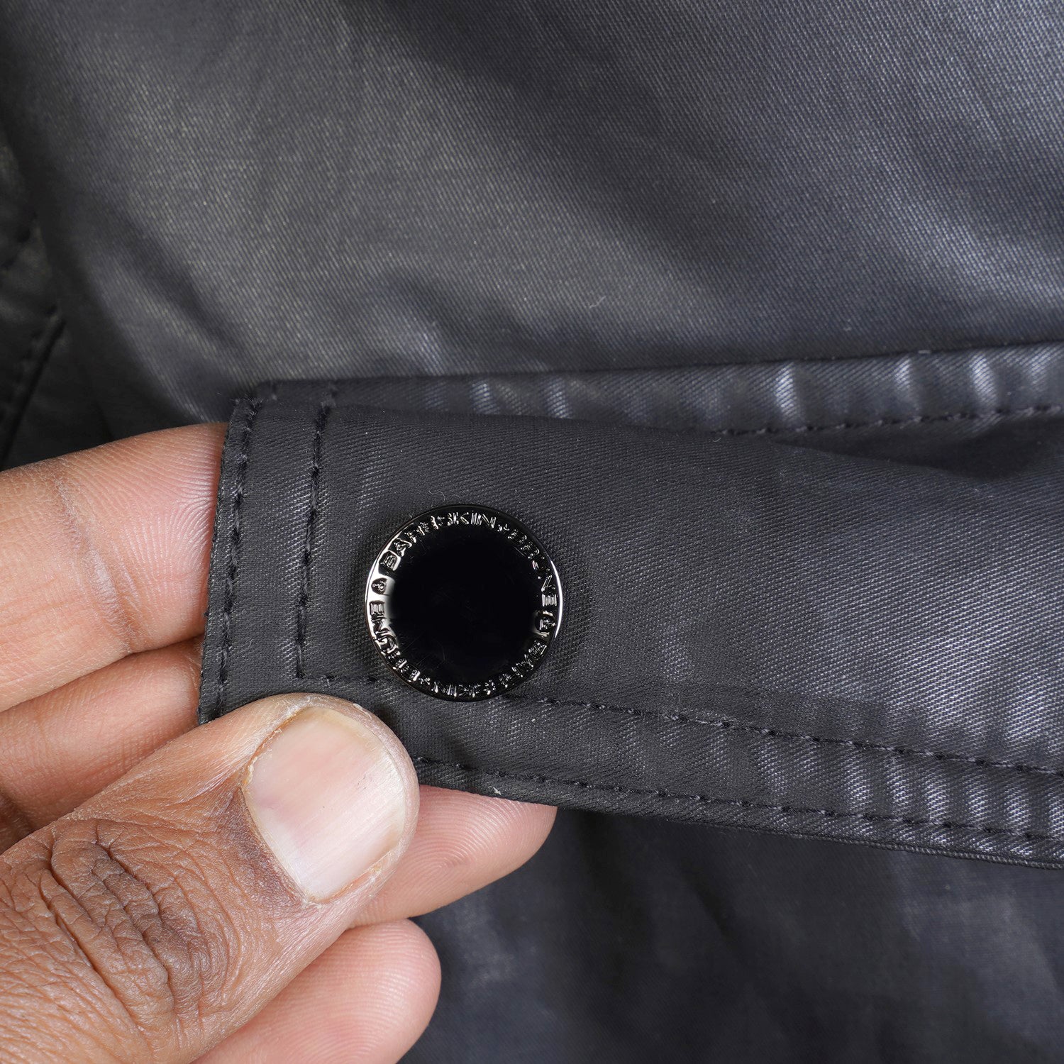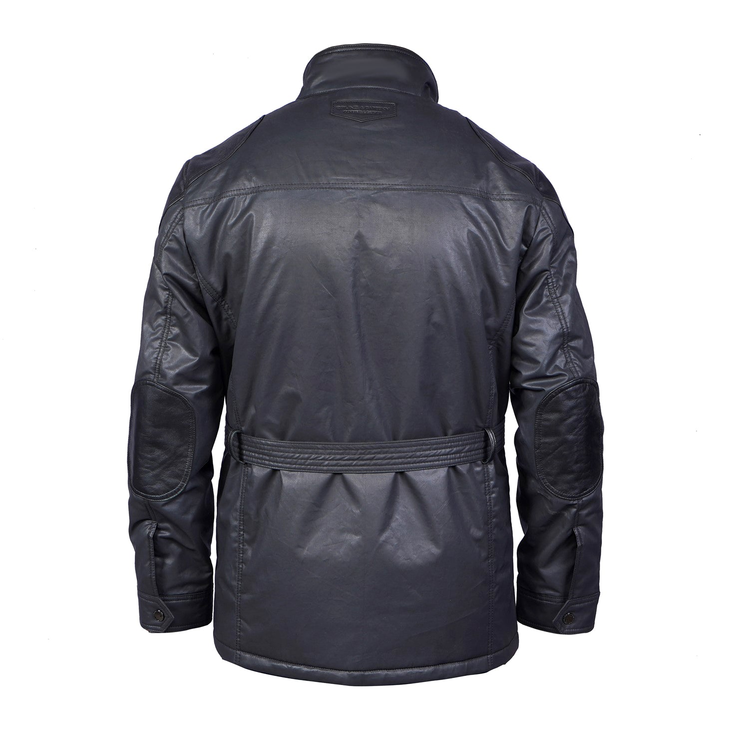 Introducing the Waxy Cotton Coat & safari jacket. Exuding impressive style and functionality, this handcrafted grey jacket features a high-closing collar, multiple flap pockets, and an inside concealed zipper for added security. With a dual look of jacket and coat, it offers a belted waist and buckle strap for a customizable fit and plenty of storage options with zippered chest and hand pockets. Stay light in weight without compromising on quality and elevate your look with this black masterpiece.