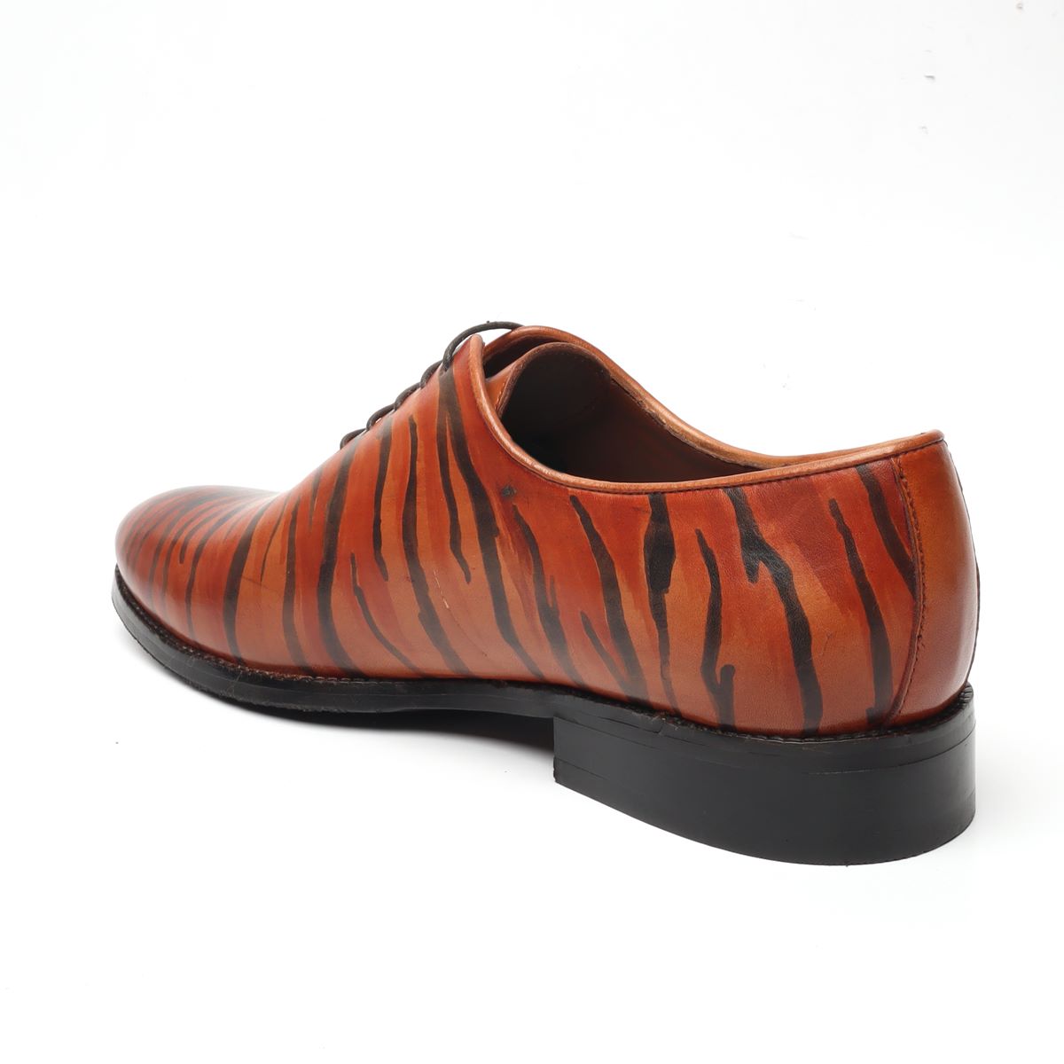Hand Painted Tribal Tiger Styled Single Piece Tan Leather Oxfords Shoes by Brune & Bareskin