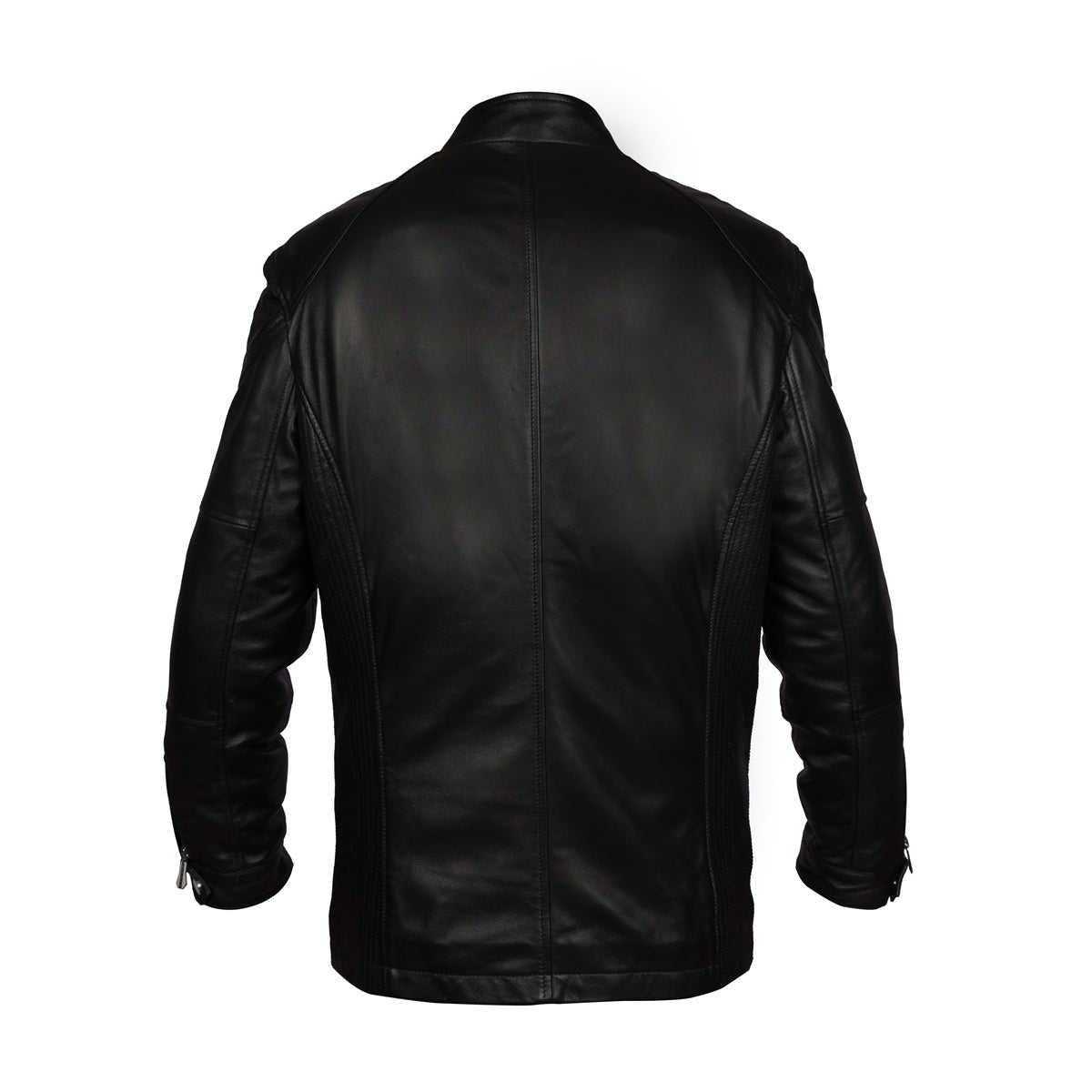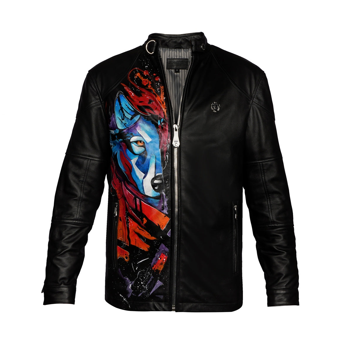 Hand Painted Wolf Half Face Zipper Pockets Black Leather Jacket For Men By Brune & Bareskin