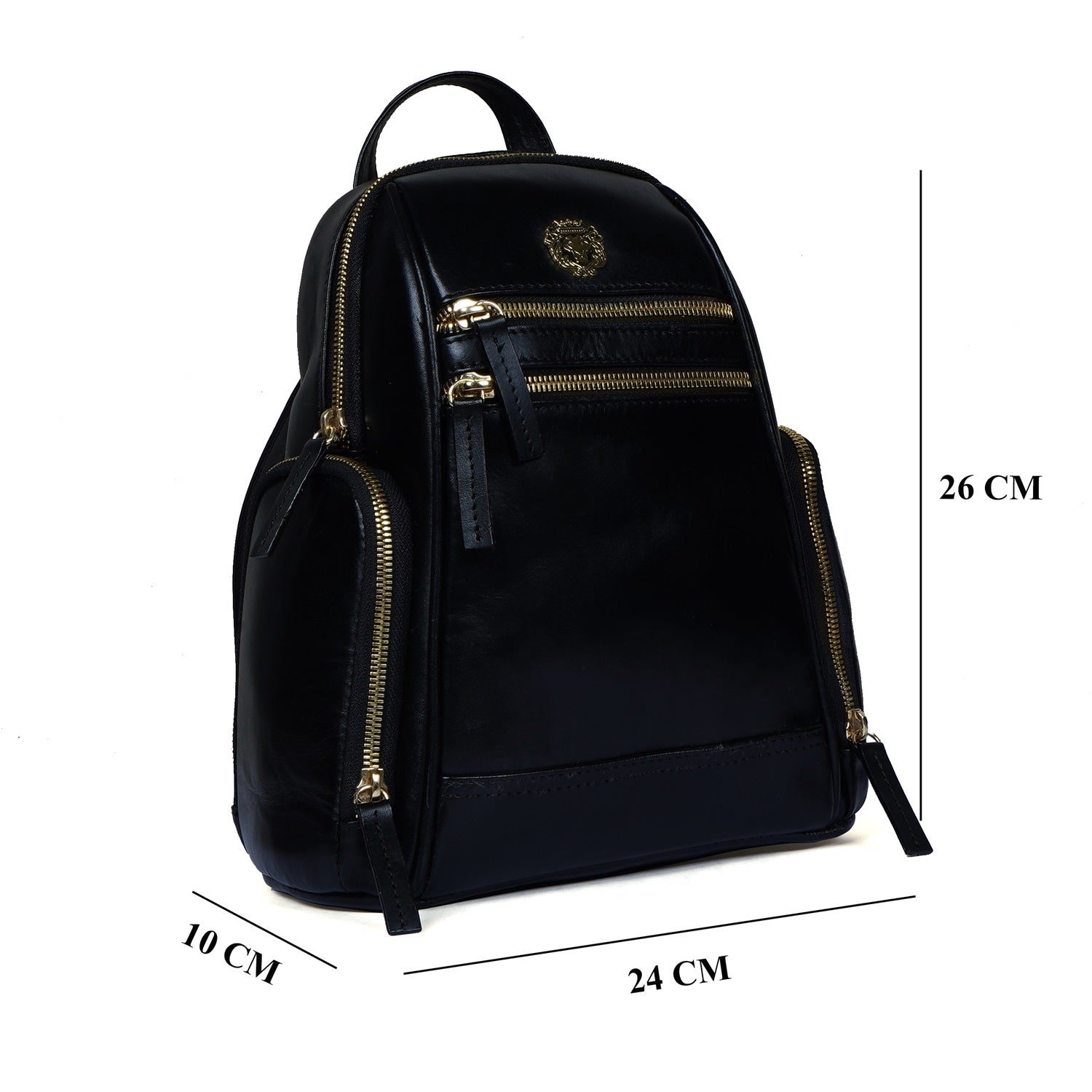 Handcrafted Signature Golden Lion Black Genuine Leather Multi-Pockets Girlish Soft Touch Backpack By Brune & Bareskin
