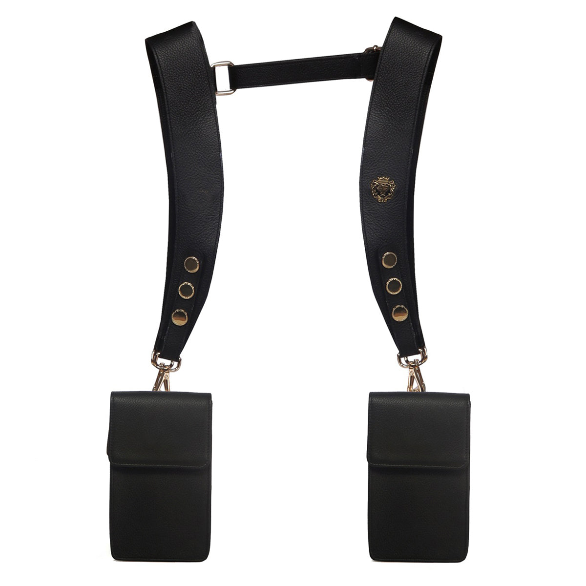 Harness Double Side Shoulder Bag In Black Textured Leather