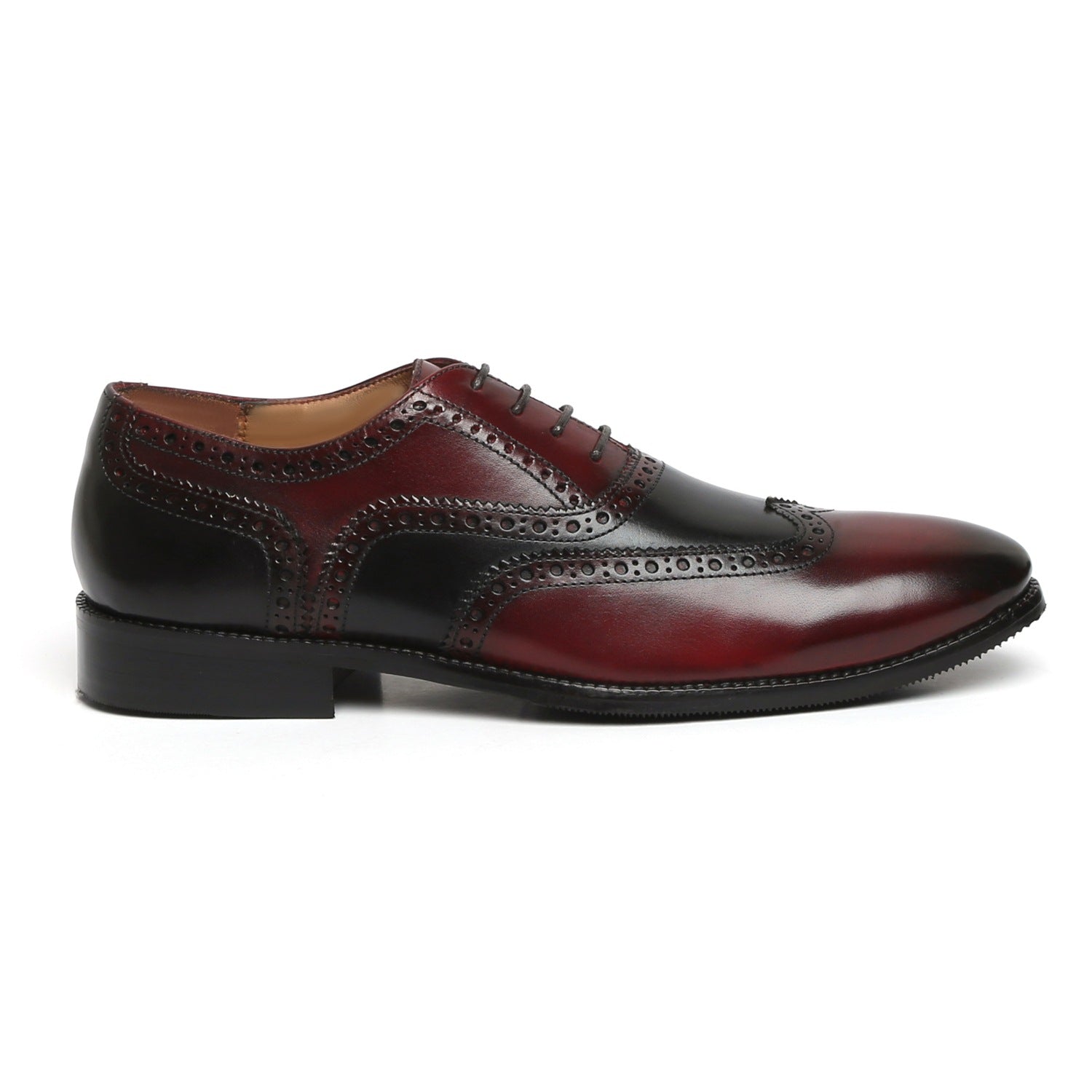 Dual Tone Formal Shoe in Wine Black Brogue Oxford Lace-Up Closure