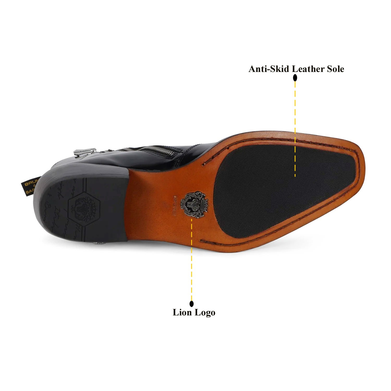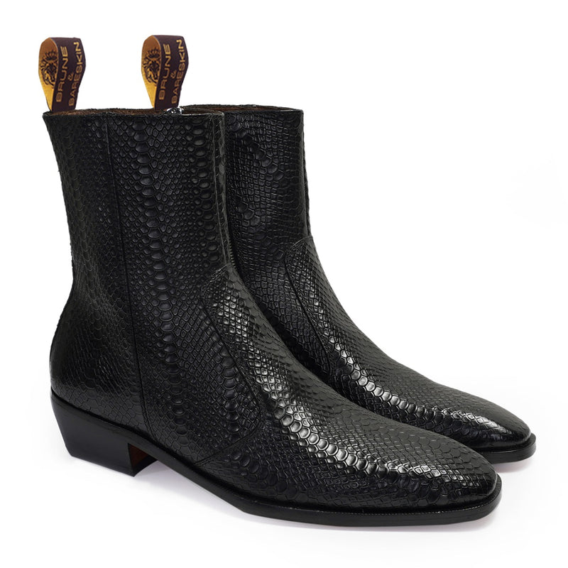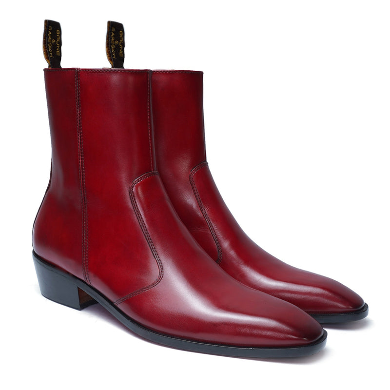 Black boots in Patent Leather is always an elite choice for a formal occasion. Finding shoes that spell your style, besides being comfortable to wear is definitely a challenge. However, if the shoes are made by BRUNE & BARESKIN, you can be sure to find the perfect blend of comfort and style. We craft these high ankle Black patent leather boots to give you an elite look. The stitched detailing on the quarter looks classy. The zip closure provides an extra ease to wear these exquisite boots. The leather sole and Cuban heel adds the extra elegance to it. You can customize this chic boots in any of your favorite color according to your attire with our bespoke services. They are easy to team with formal trousers as they blend well with the classic fabrics as well as the modern blended synthetic fabric pants, slacks and trousers.