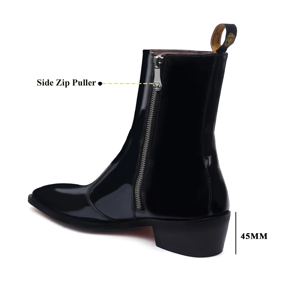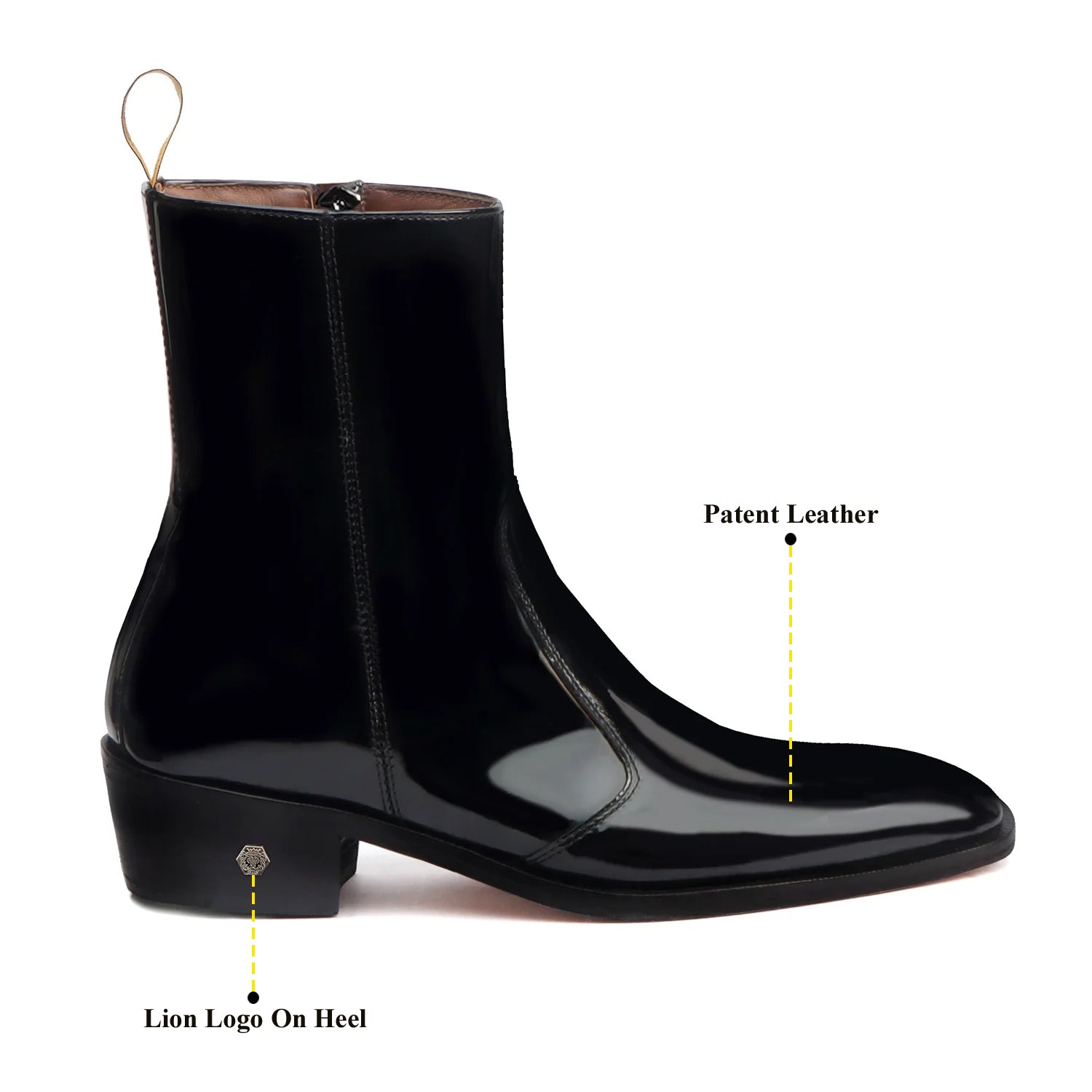 Black Patent Formal Boots Cuban Heel Zipper Closure