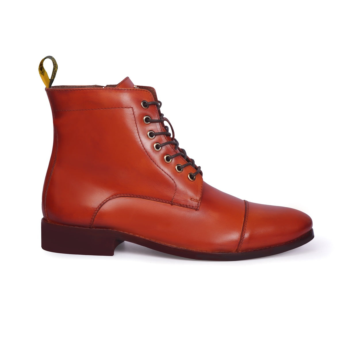 Stitched Cap Toe Tan Leather Boot with Lace-Up Zip Closure by Brune & Bareskin