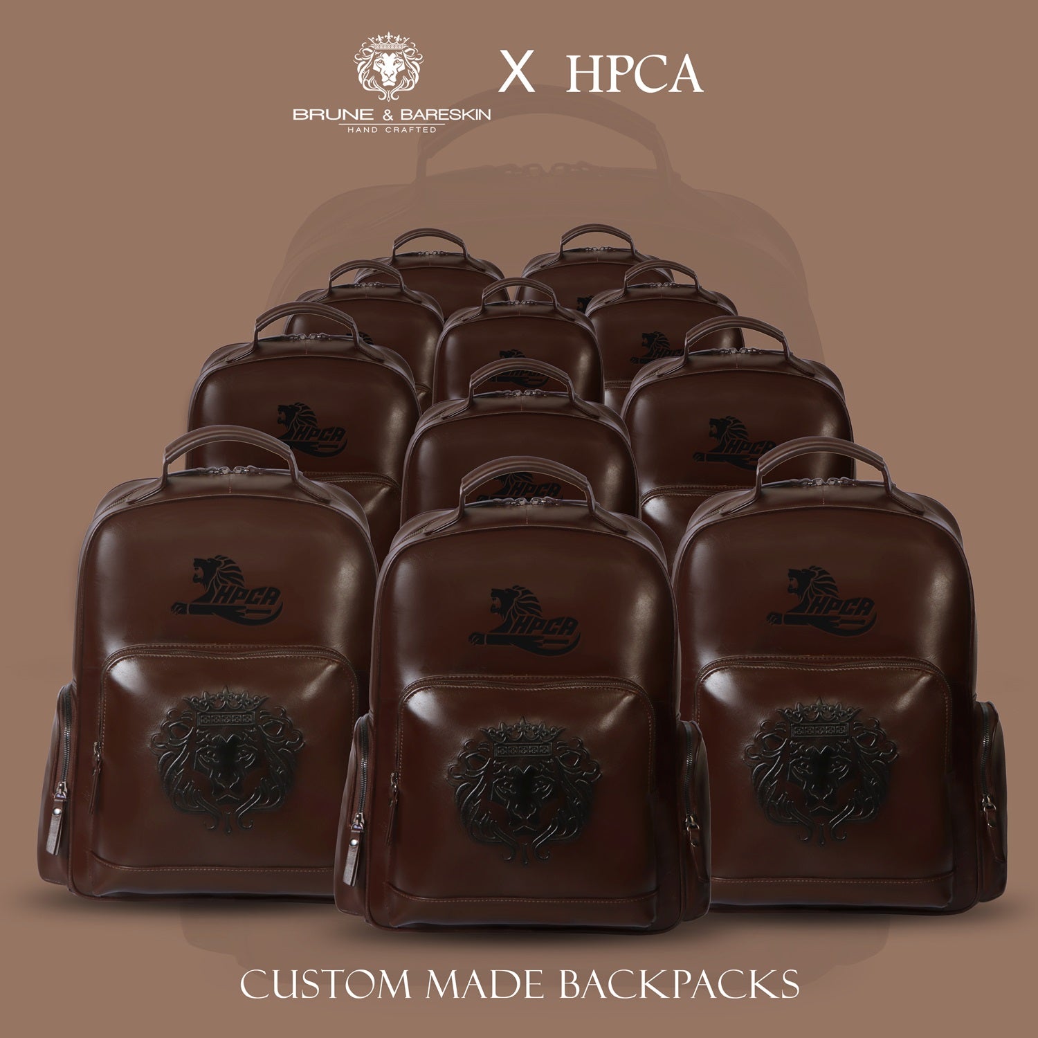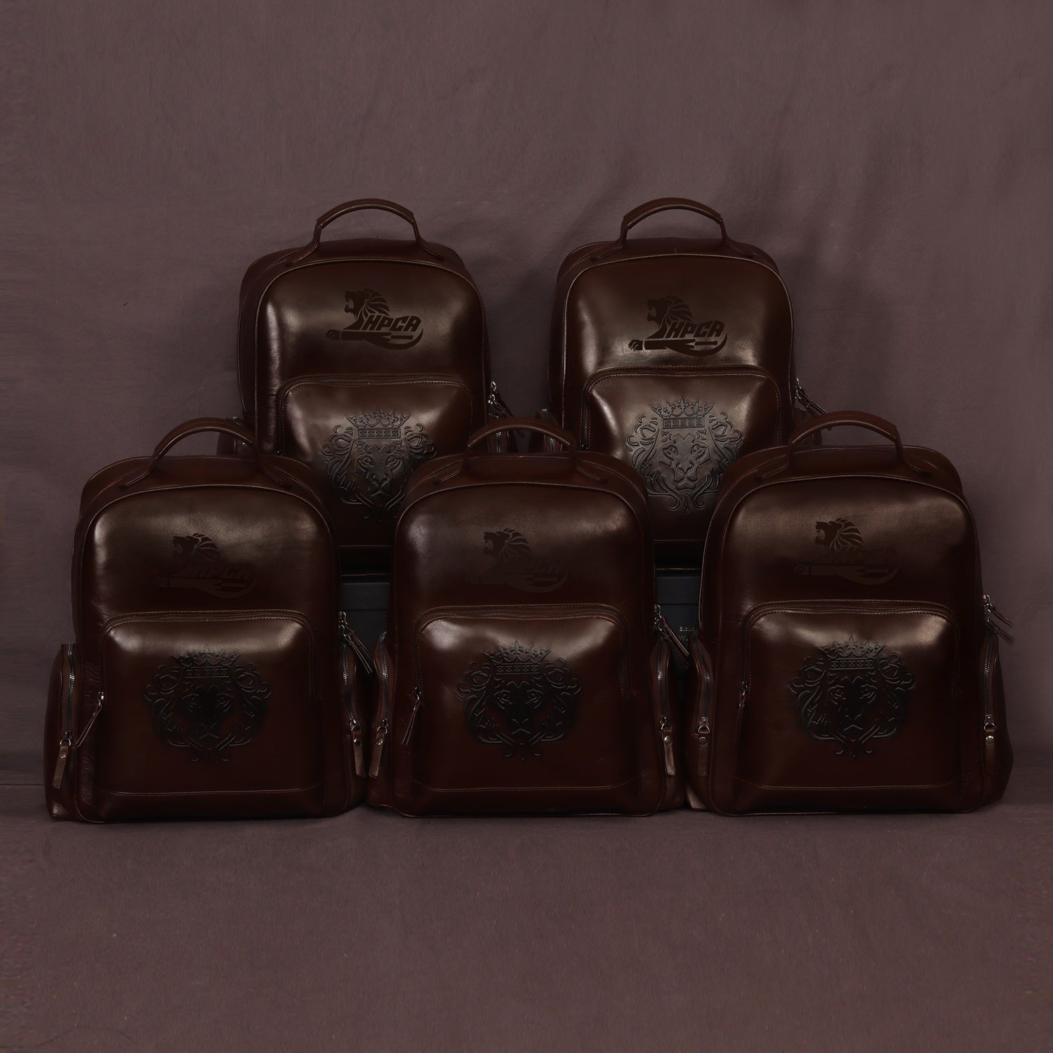 Himachal Pradesh Cricket Academy 2022 Custom Made Bulk Order Leather Dark Brown Backpack(Reference Price for 1 Unit)