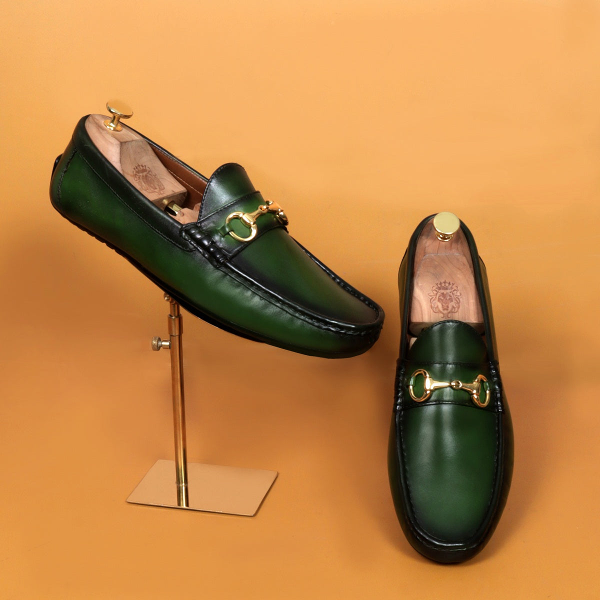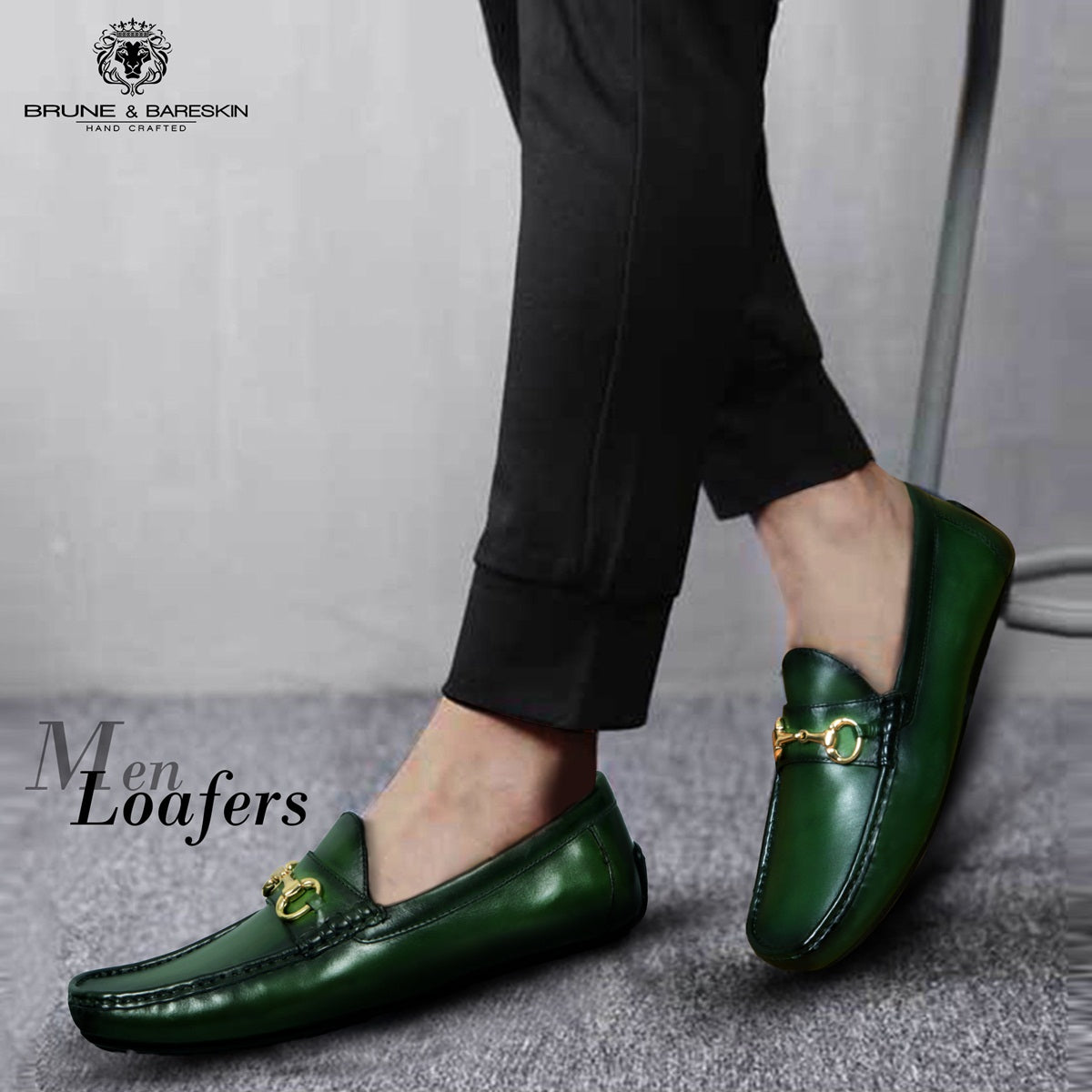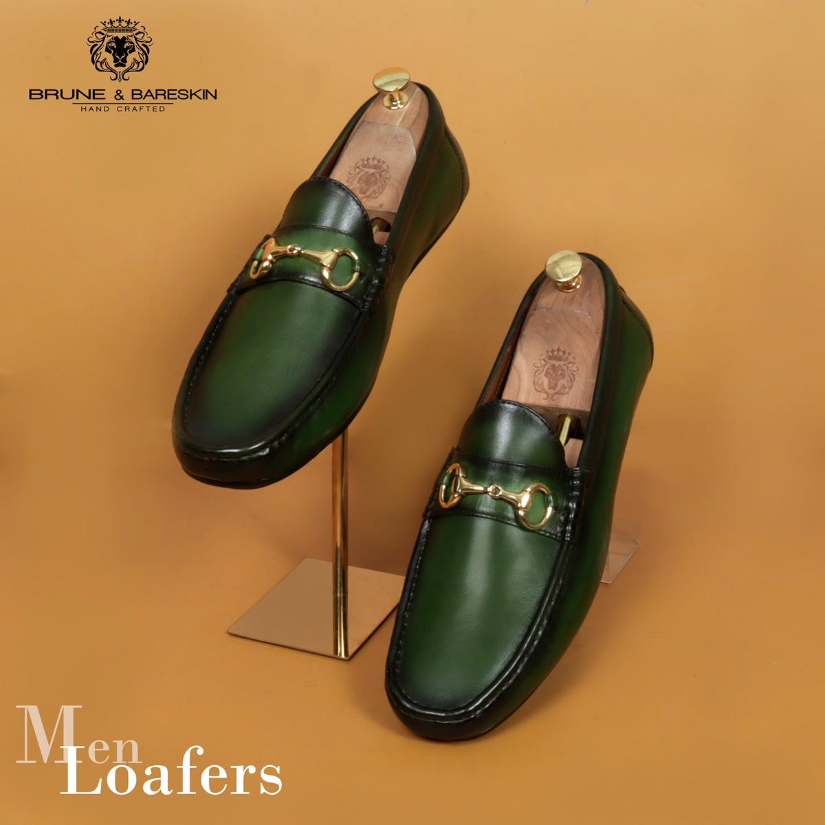 Step out in style with these luxurious Horse-bit Driving Loafers. Crafted from genuine leather with a striking green color, these shoes from the Brune & Bareskin Brand are sure to turn heads. Featuring an iconic horse-bit buckled on the toe as well as a light-weight rubber sole and Brune & Bareskin branding, you won’t go unnoticed in these shoes!