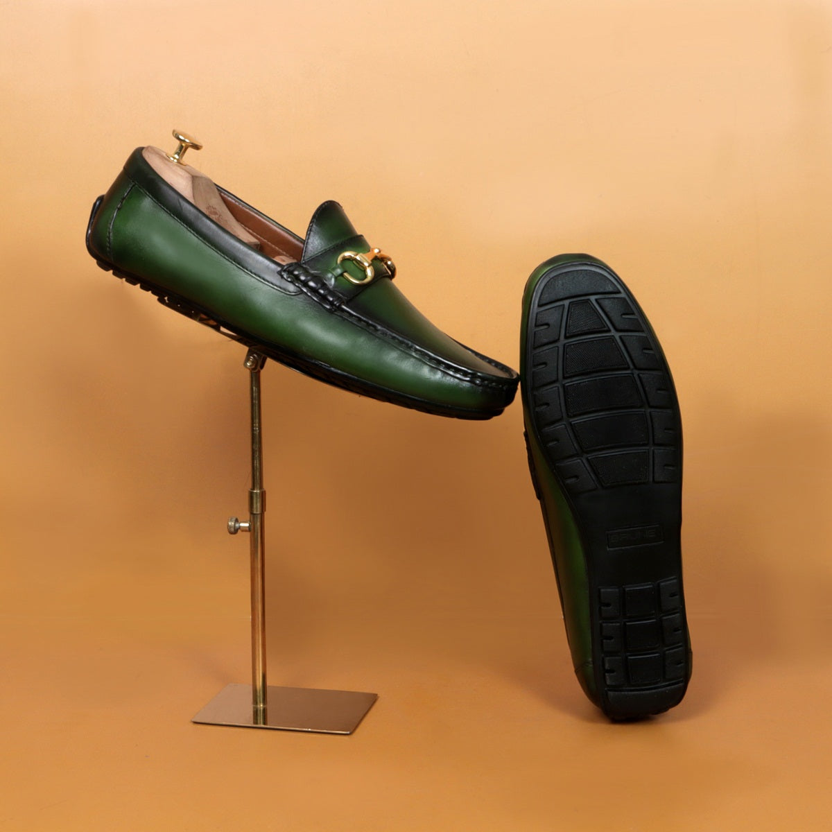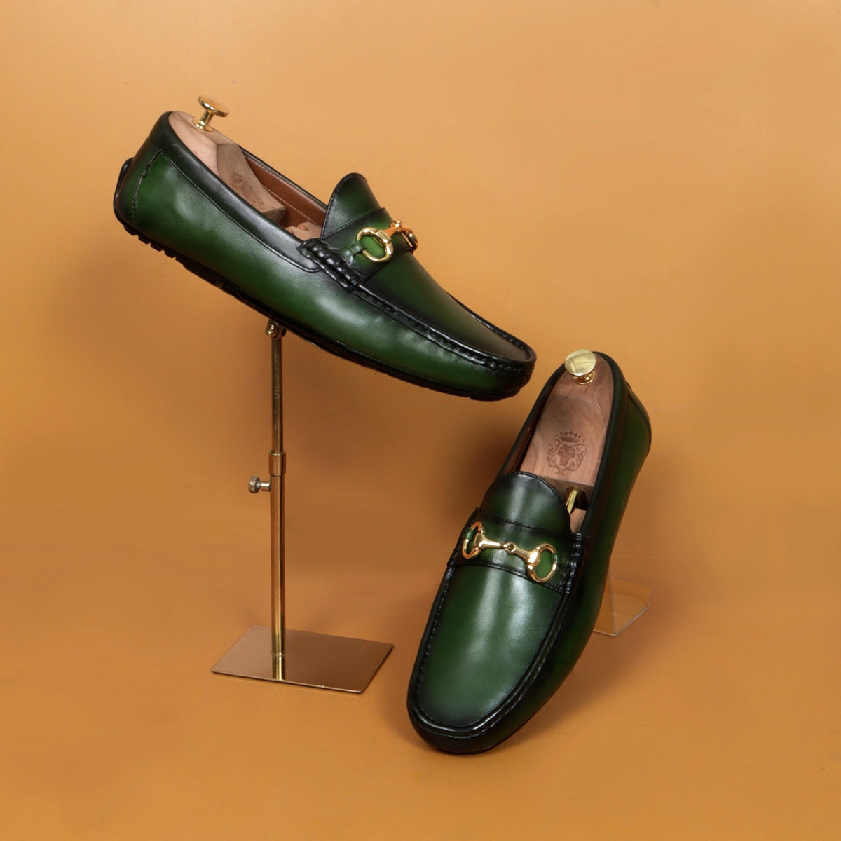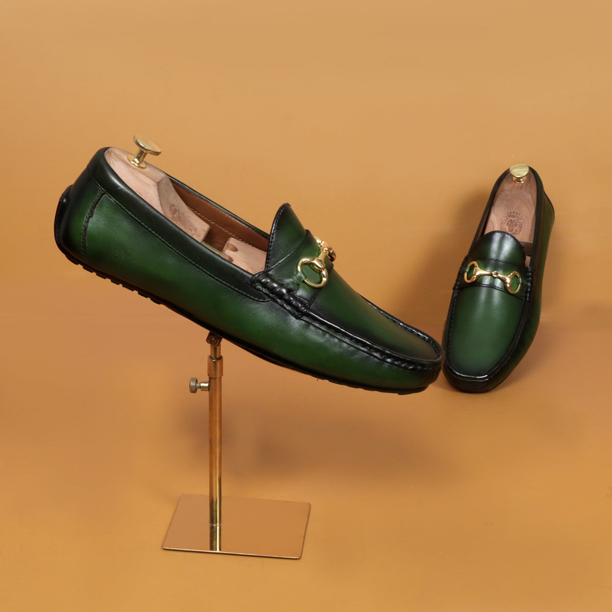 Step out in style with these luxurious Horse-bit Driving Loafers. Crafted from genuine leather with a striking green color, these shoes from the Brune & Bareskin Brand are sure to turn heads. Featuring an iconic horse-bit buckled on the toe as well as a light-weight rubber sole and Brune & Bareskin branding, you won’t go unnoticed in these shoes!
