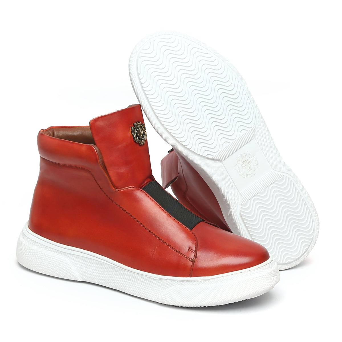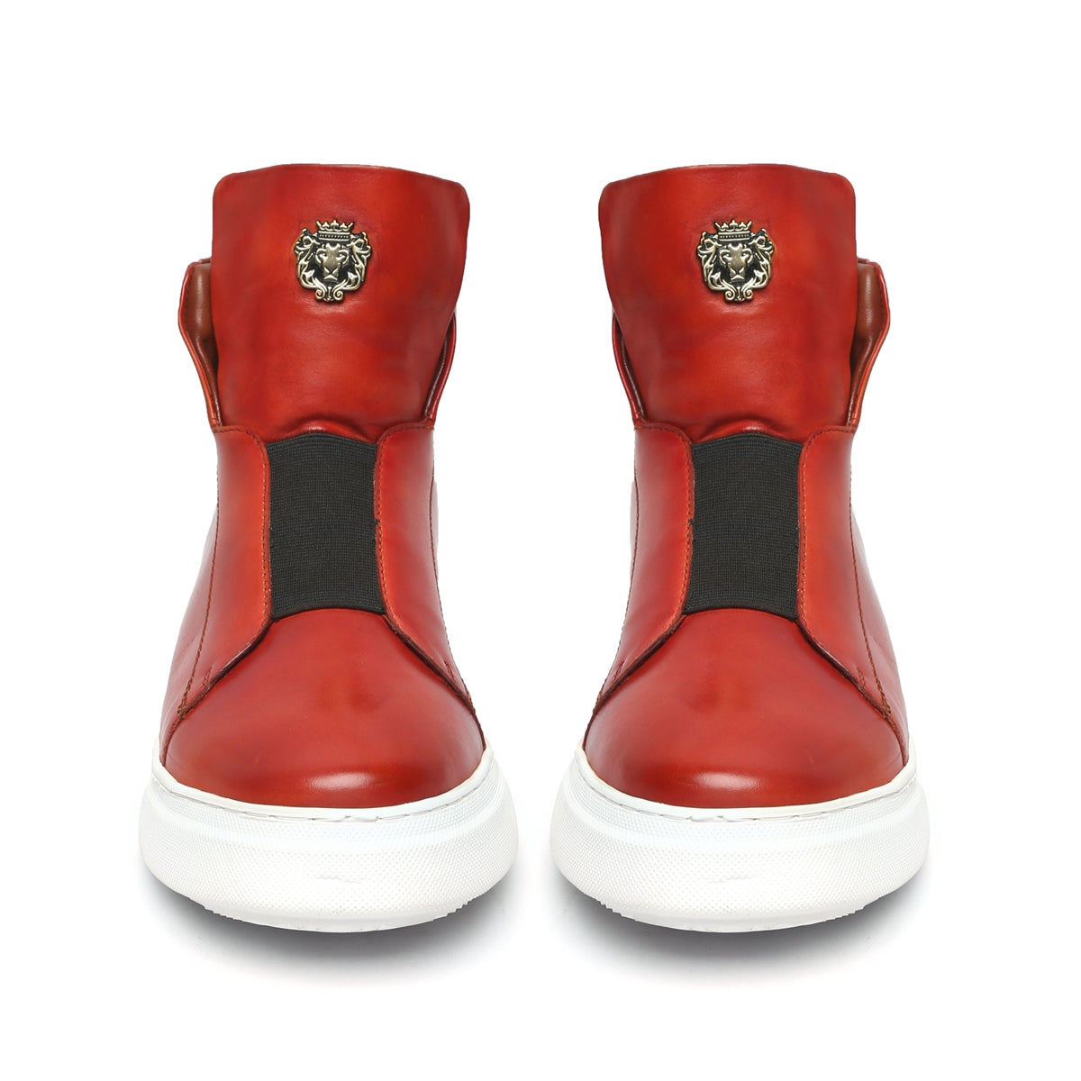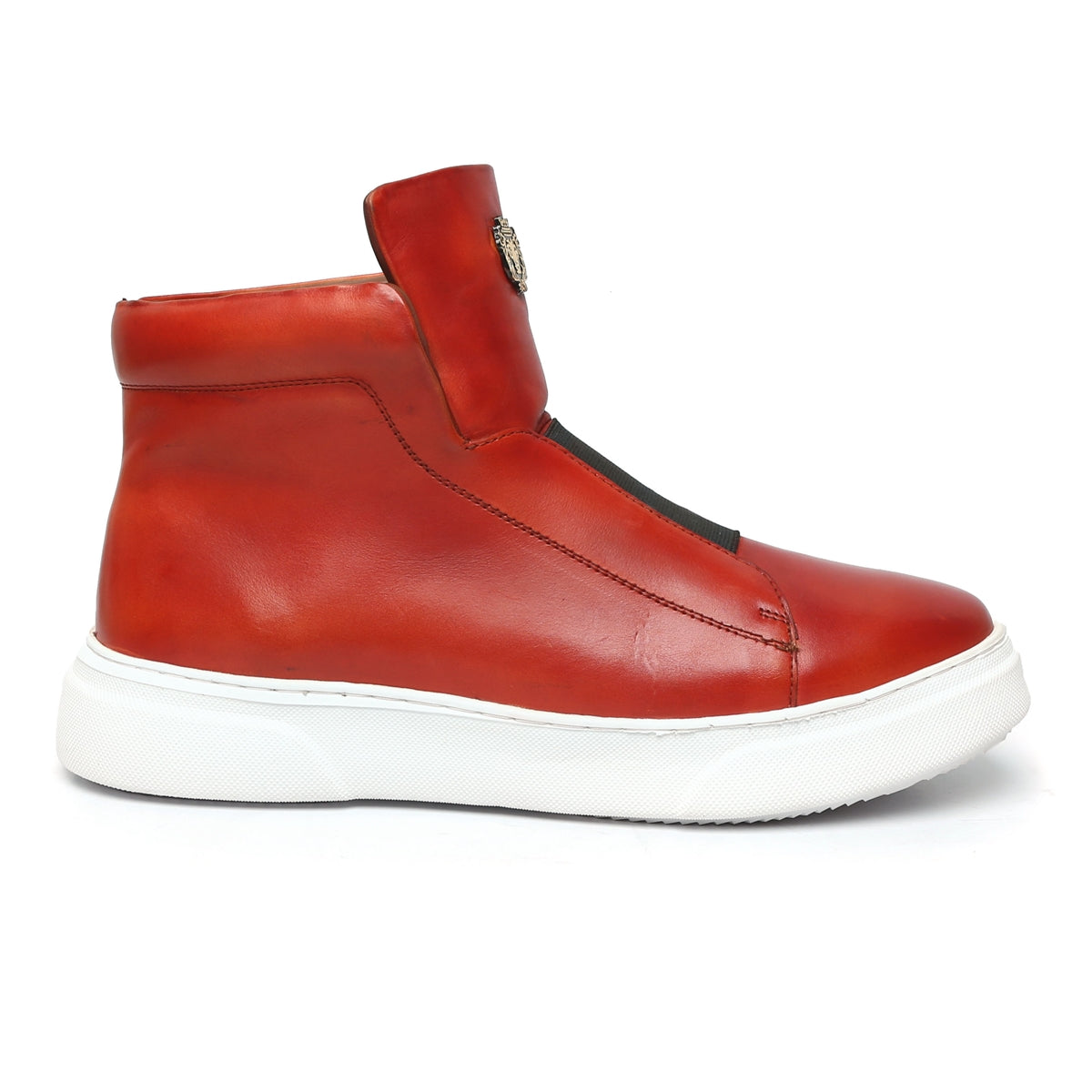 Hot Red Color Mid-Top Sneakers in Stretchable Closure by Brune & Bareskin