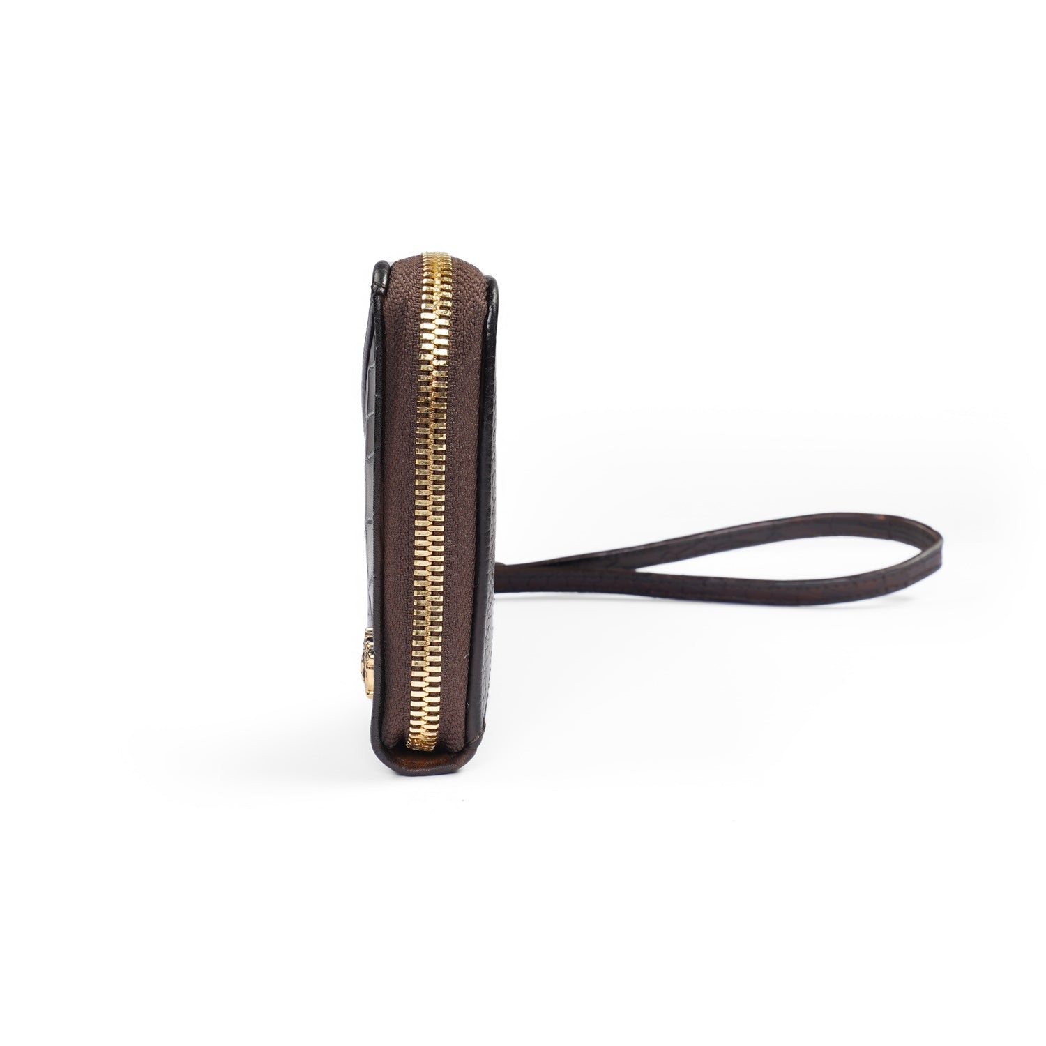 Ladies Clutch/Wallet in Dark Brown Center stitched Silhouette Deep Cut & Textured Leather