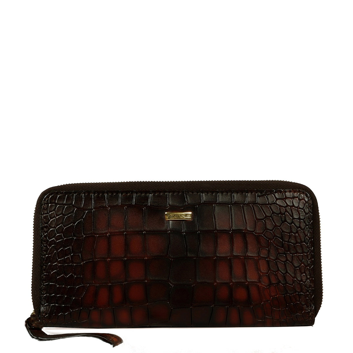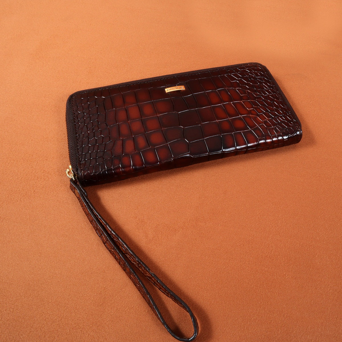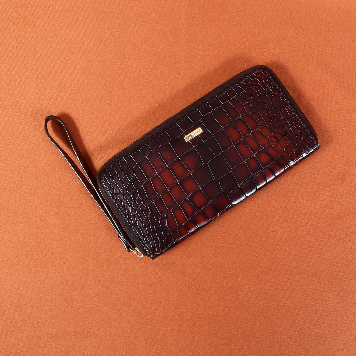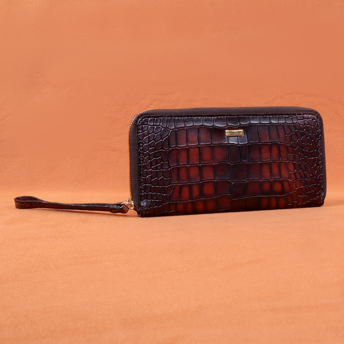Ladies Clutch/Wallet With Smokey Tan Croco Textured Leather