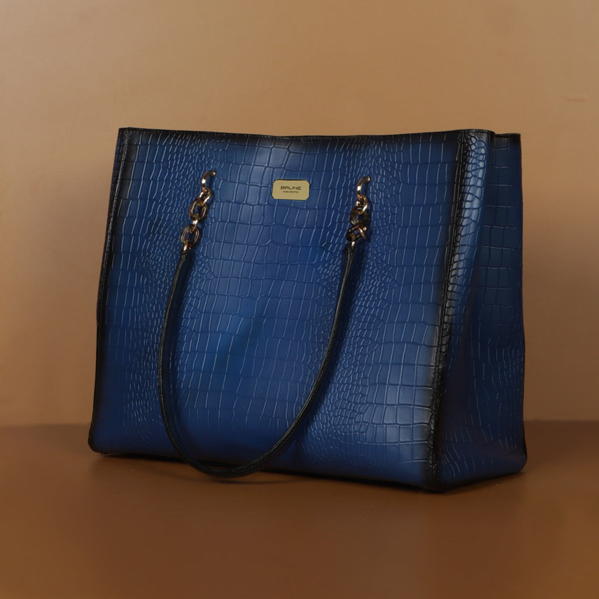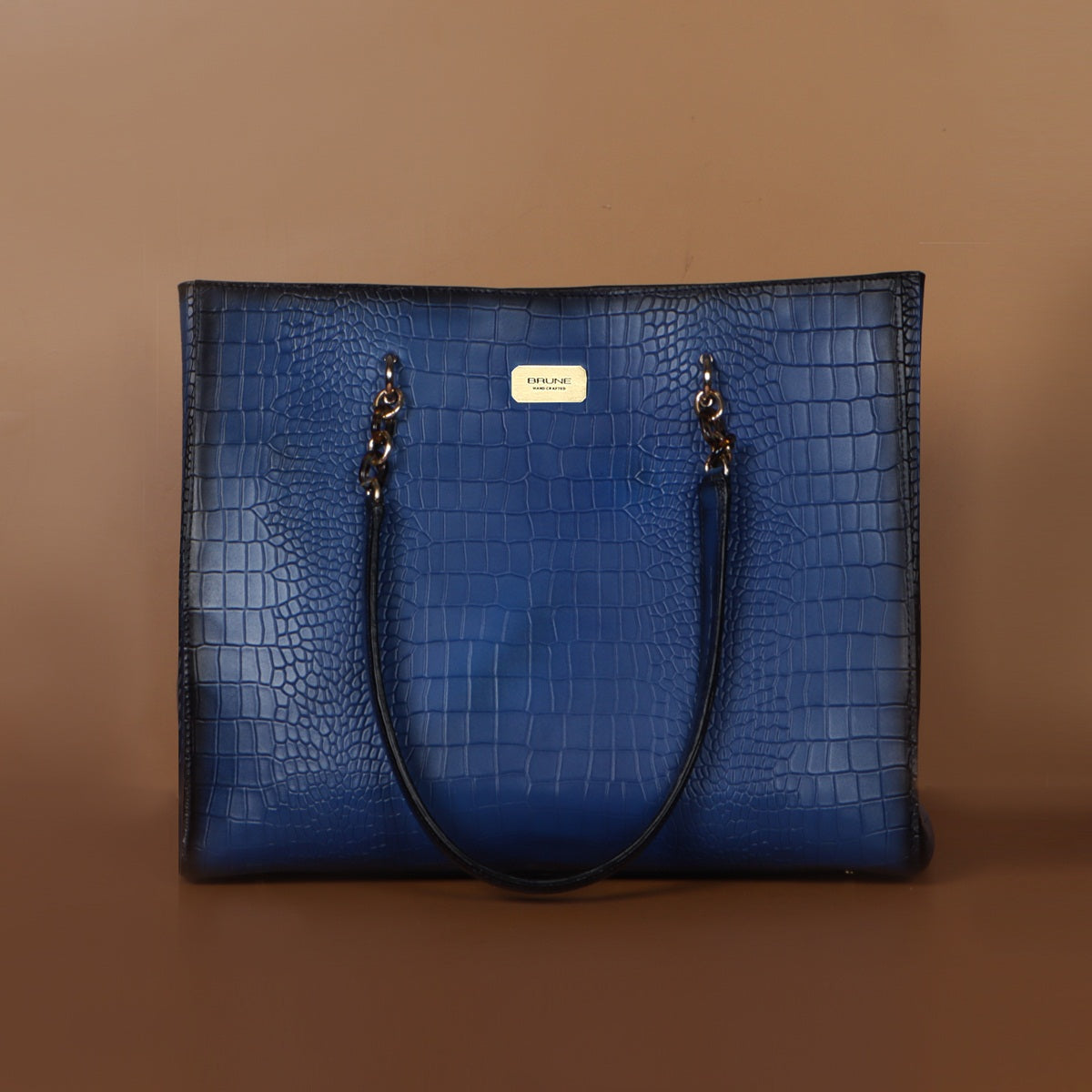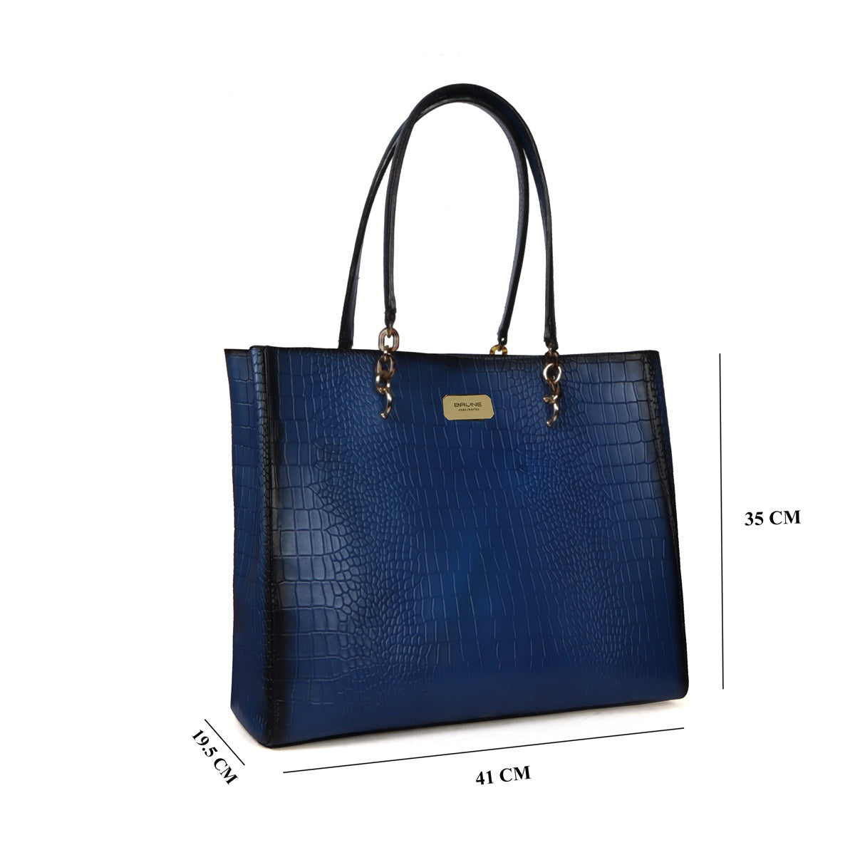 When you choose branded by BRUNE & BARESKIN, you are sure to get more than a few glances coming your way. This blue deep cut textured leather Hand Bag/ Shopping Bag is made to give you a complete elegant look.