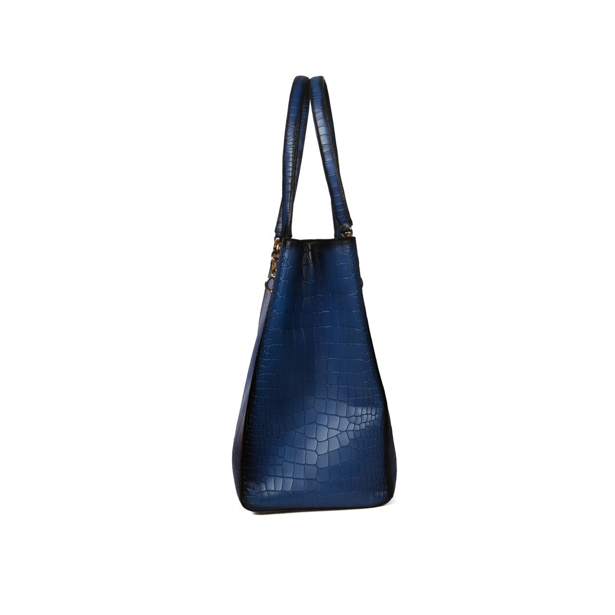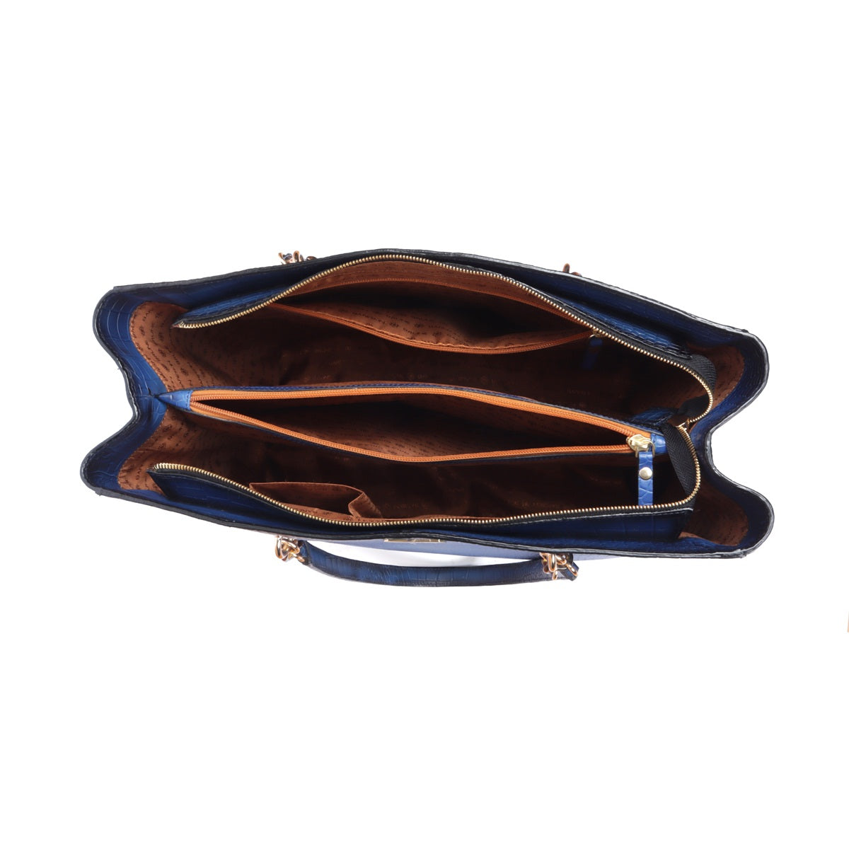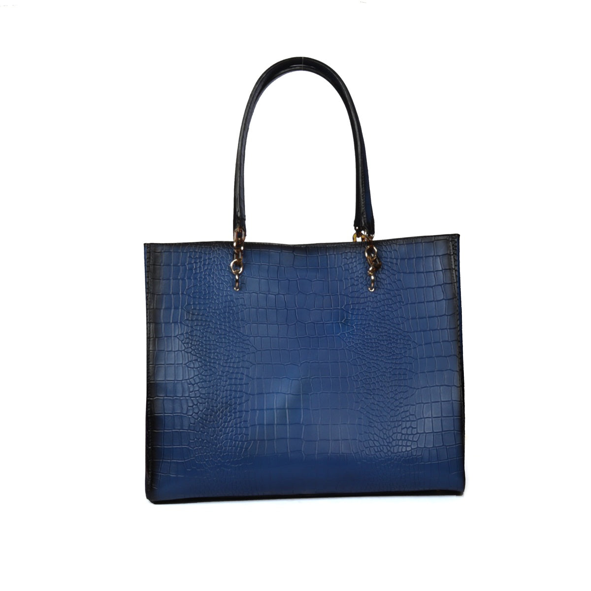 When you choose branded by BRUNE & BARESKIN, you are sure to get more than a few glances coming your way. This blue deep cut textured leather Hand Bag/ Shopping Bag is made to give you a complete elegant look.