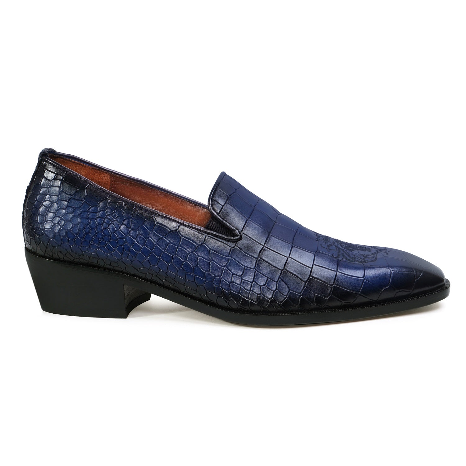 Laser Engraved Burnished Blue Loafer in Deep Cut Croco Textured Leather