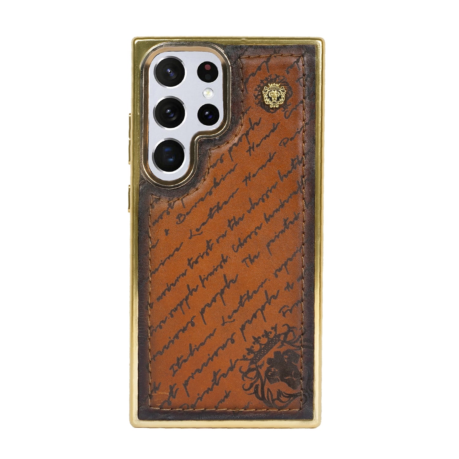 Laser Engraved Samsung S Series Tan Leather Mobile Cover