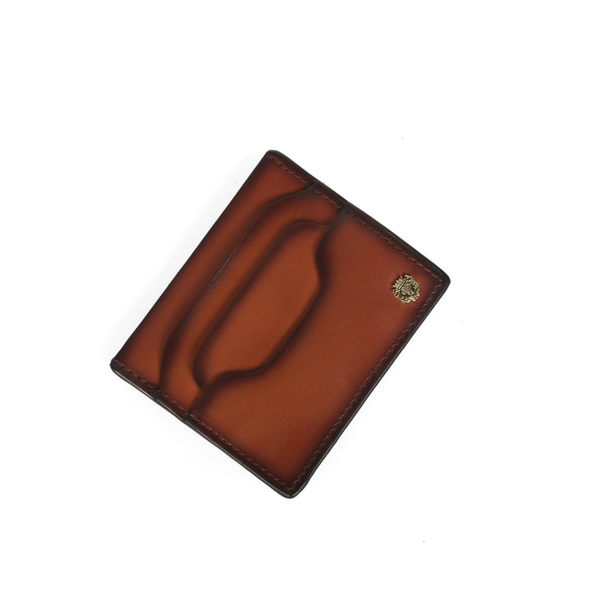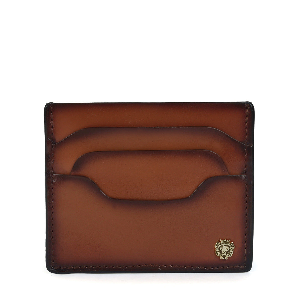 Layered Design pockets Tan Leather With Mini Lion Card Holder By Brune & Bareskin