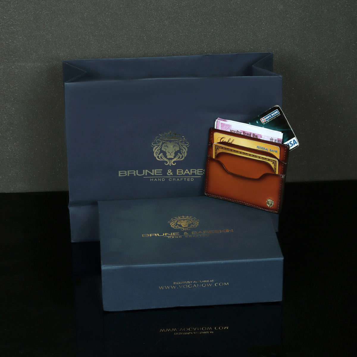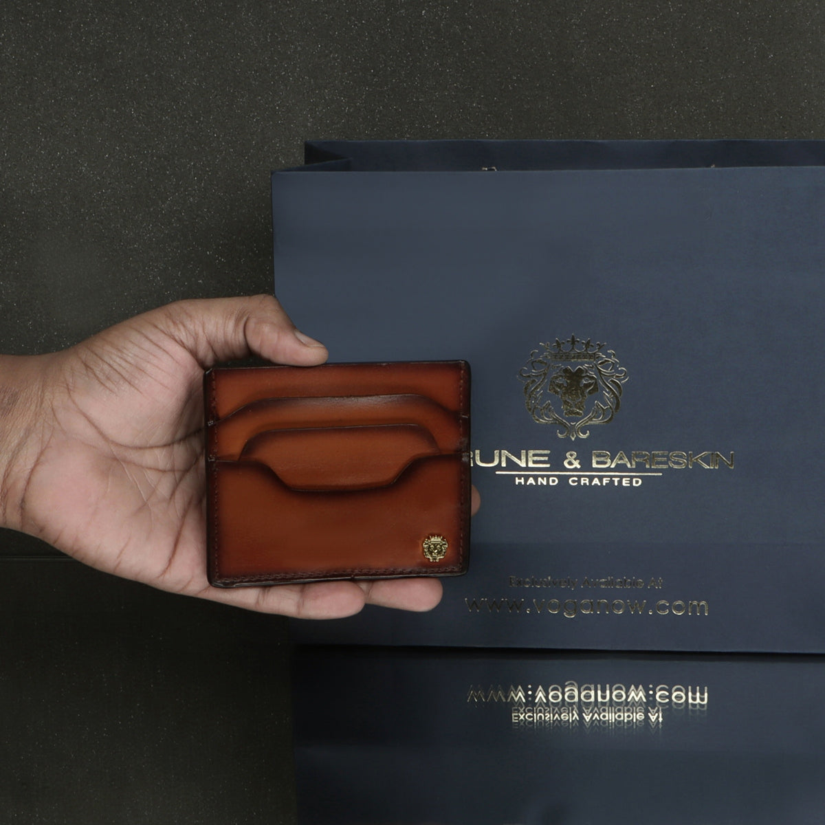 Traveling accessories have always been so important for us, it needs to be classy as well as durable too. The exclusive layered design pockets size ensures to carry the additional cards. Easy to carry anywhere with its safety features. Slip it into your bag pocket or travel wallet with ease and enjoy multiple quick-reach card slots. The tan leather card holder is a small men's wallet that can hold several cards and cash. Brune & Bareskin Signature Metal lion logo enhancing royalty of the product. You can get it customized in your favorite color shade with Name Initials with our bespoke services.