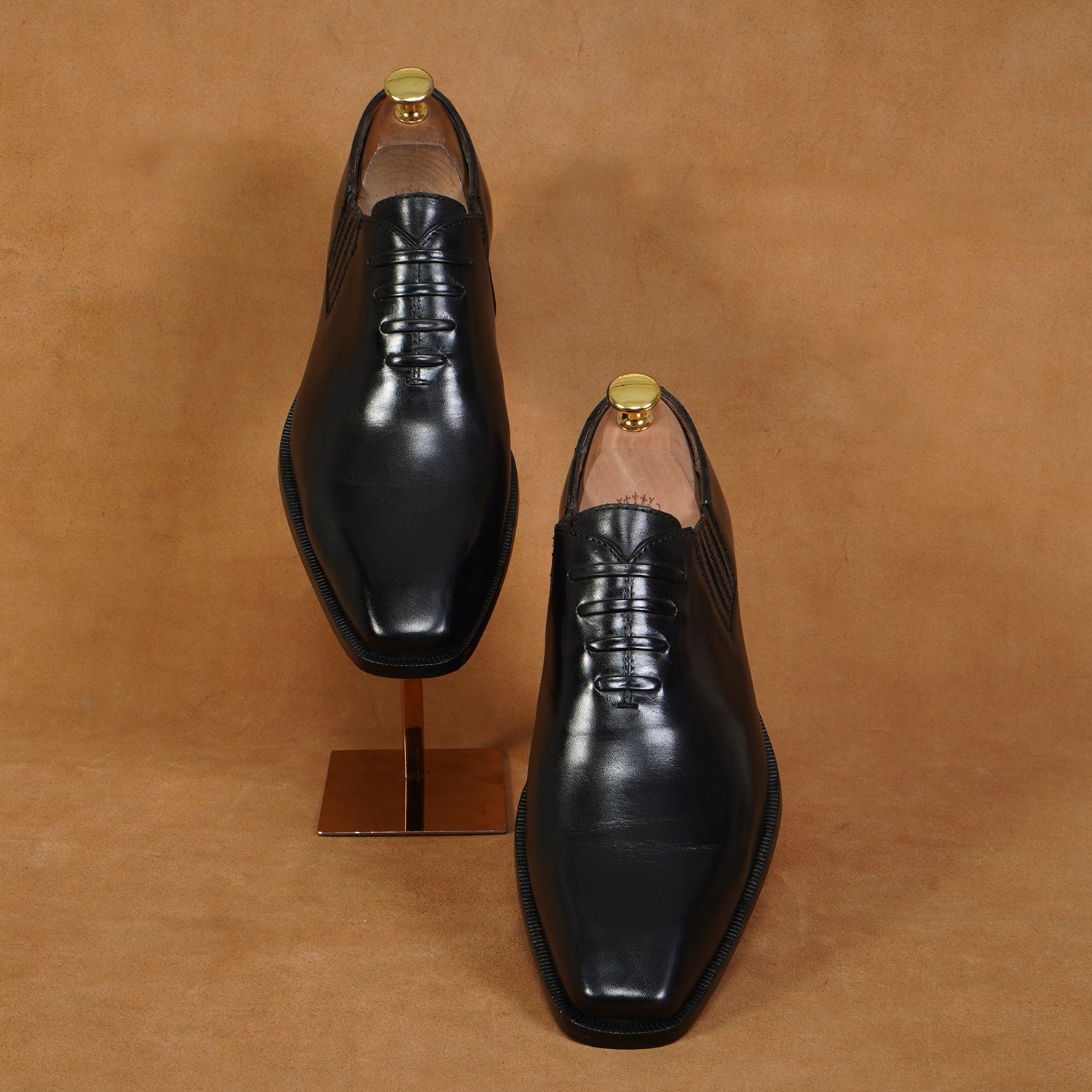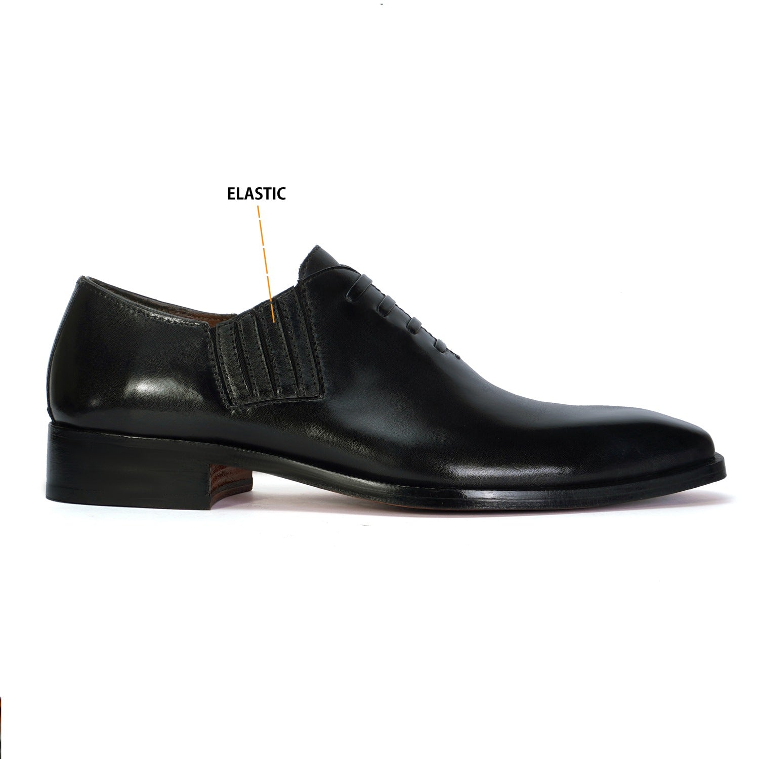 Lazy Men Formal Shoes with Fixed Oxford Lace-Up in Genuine Black Leather