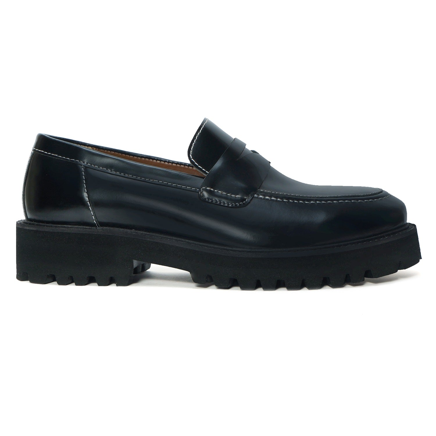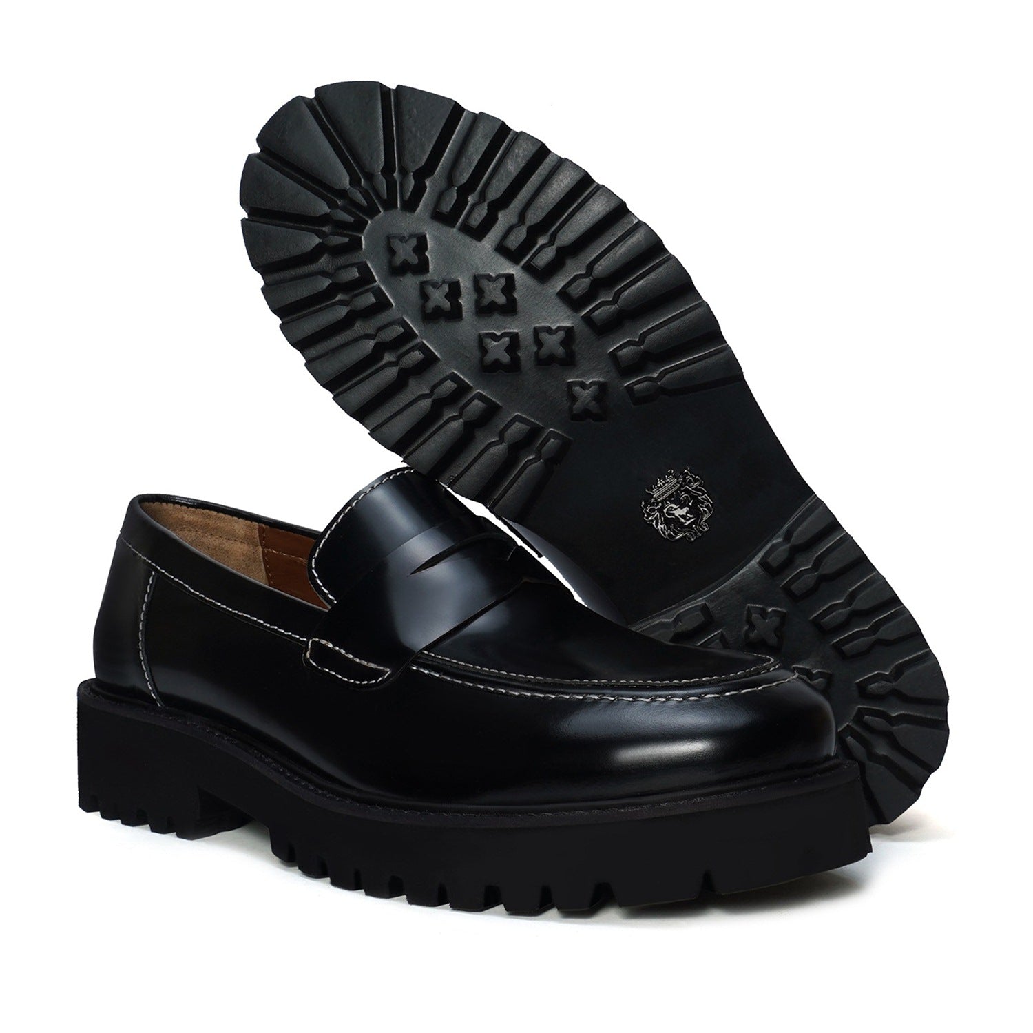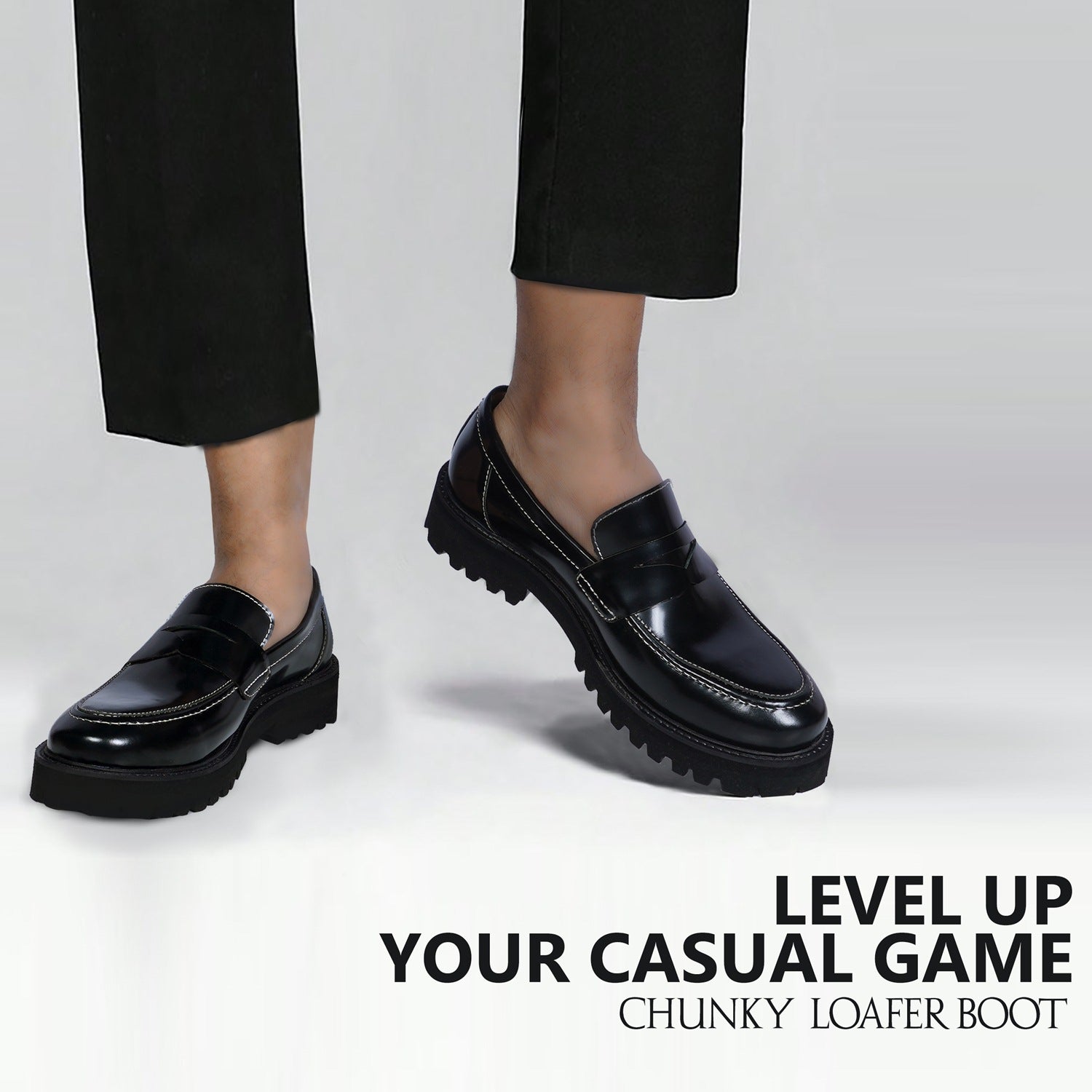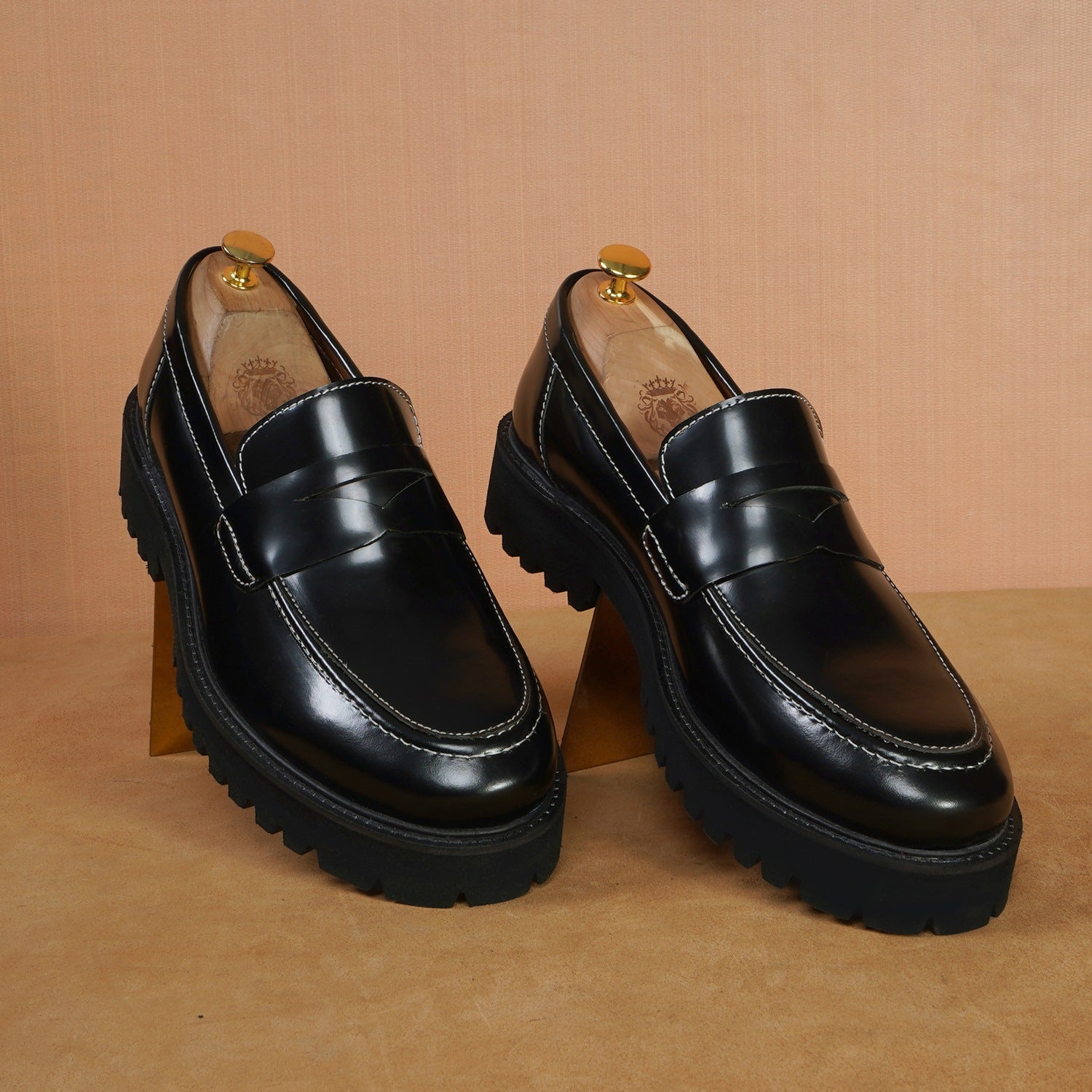 The ultimate choice for any man, our Light Weight Black Chunky Loafer boasts classic and stylish design with a mod twist. Handcrafted with genuine leather, the iconic style features a unique triangular cut strap and extra-padded insole for unbeatable comfort. Complete with a sturdy chunky sole and outer rubber sole, these casual slip-on shoes are both lightweight and fashionable. Elevate your wardrobe with Brand Brune And Bareskin's luxurious loafer. You can get it made in your favorite color with our bespoke services.