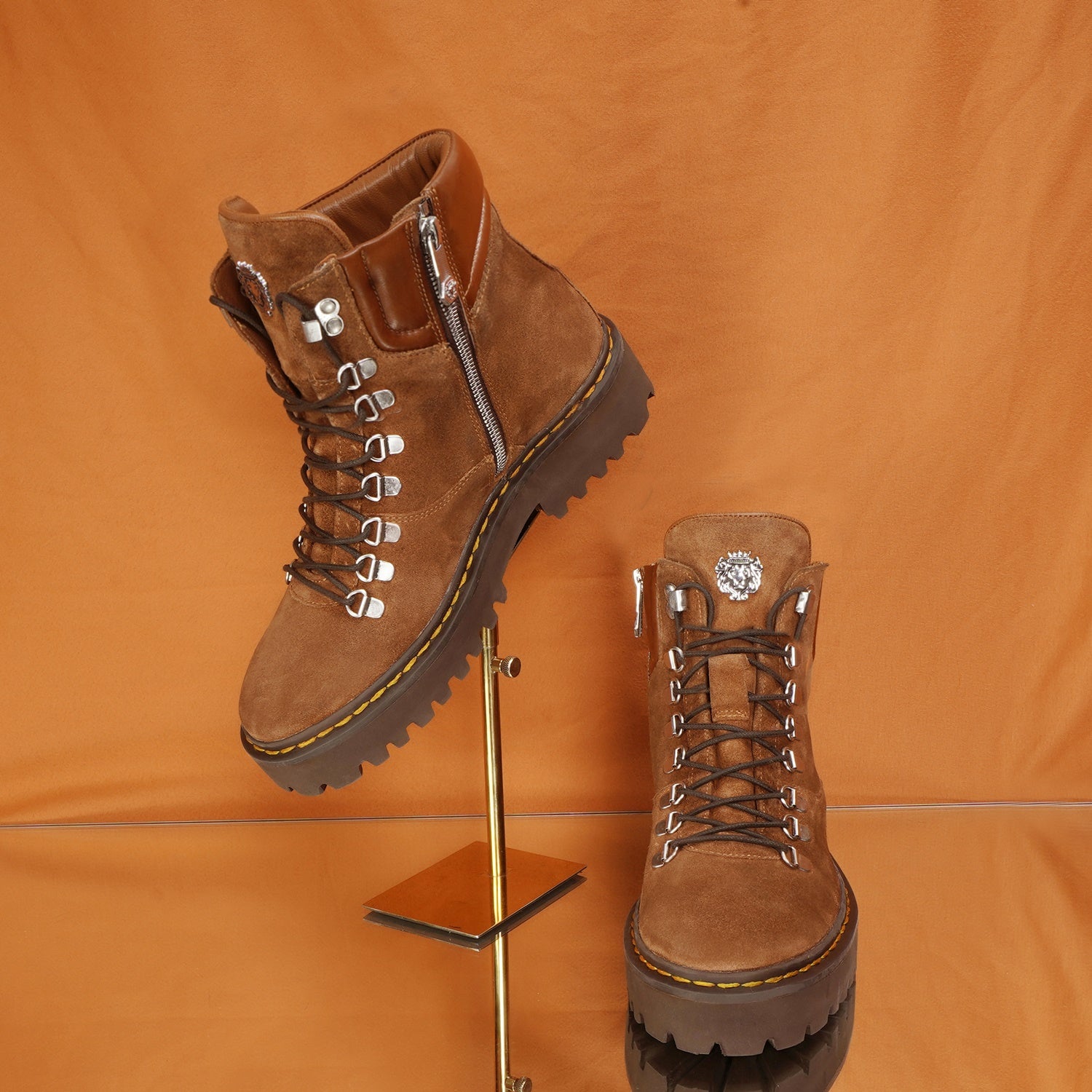 Light-Weight Brown Suede Leather Chunky with Contrasting sole stitching Boot