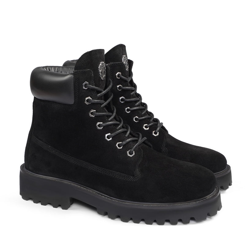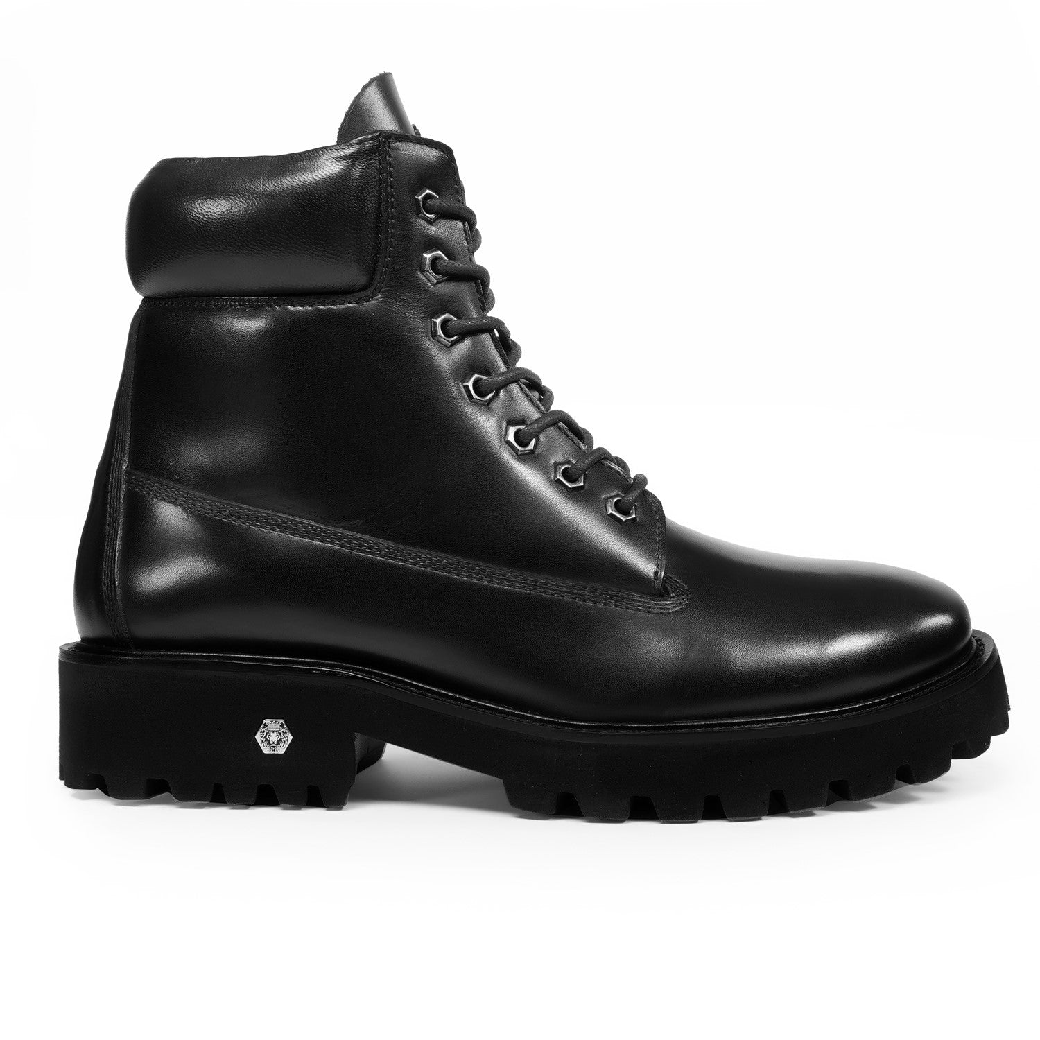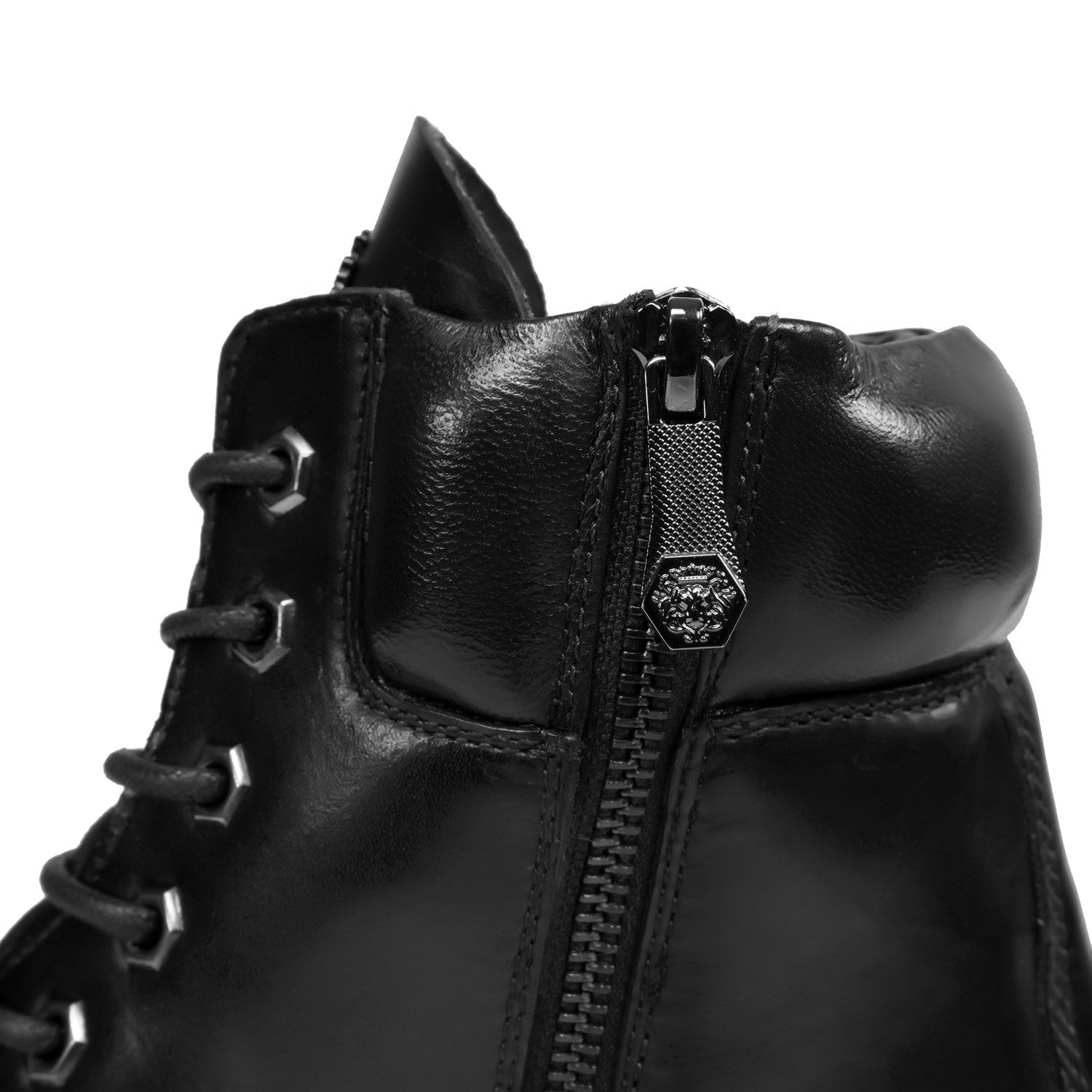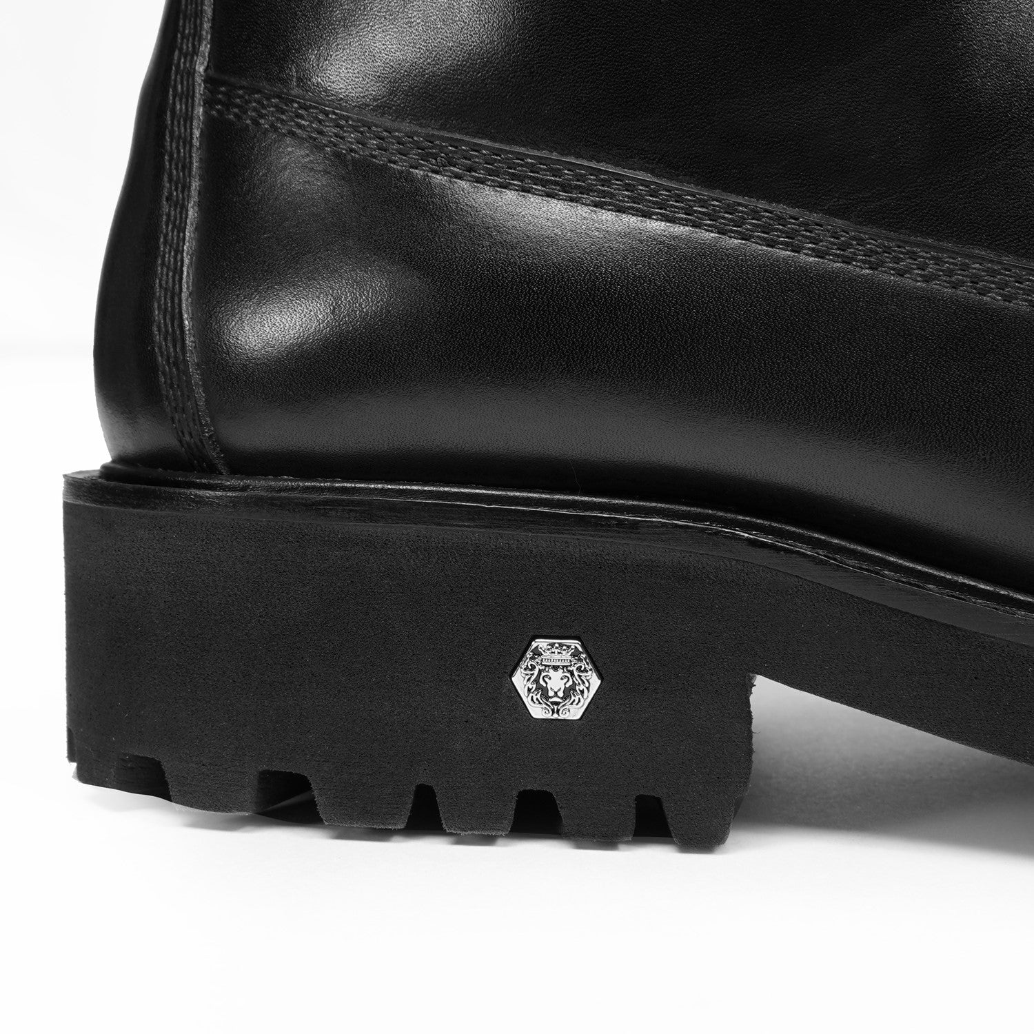 Lace-up closure makes it very convenient to adjust the boots according to your feet. The classic Signature Metal Lion Logo design make these boots an instant favorite of all chunky boot lovers. The ultra-lightweight sole makes it ideal footwear for all-day-long wear-ability and the thick high lightweight sole complements the comprehensive look. White rubberized sole enhances the grip on different terrains. This is the perfect gem for boot lovers from the style bucket of Brune & Bareskin.
