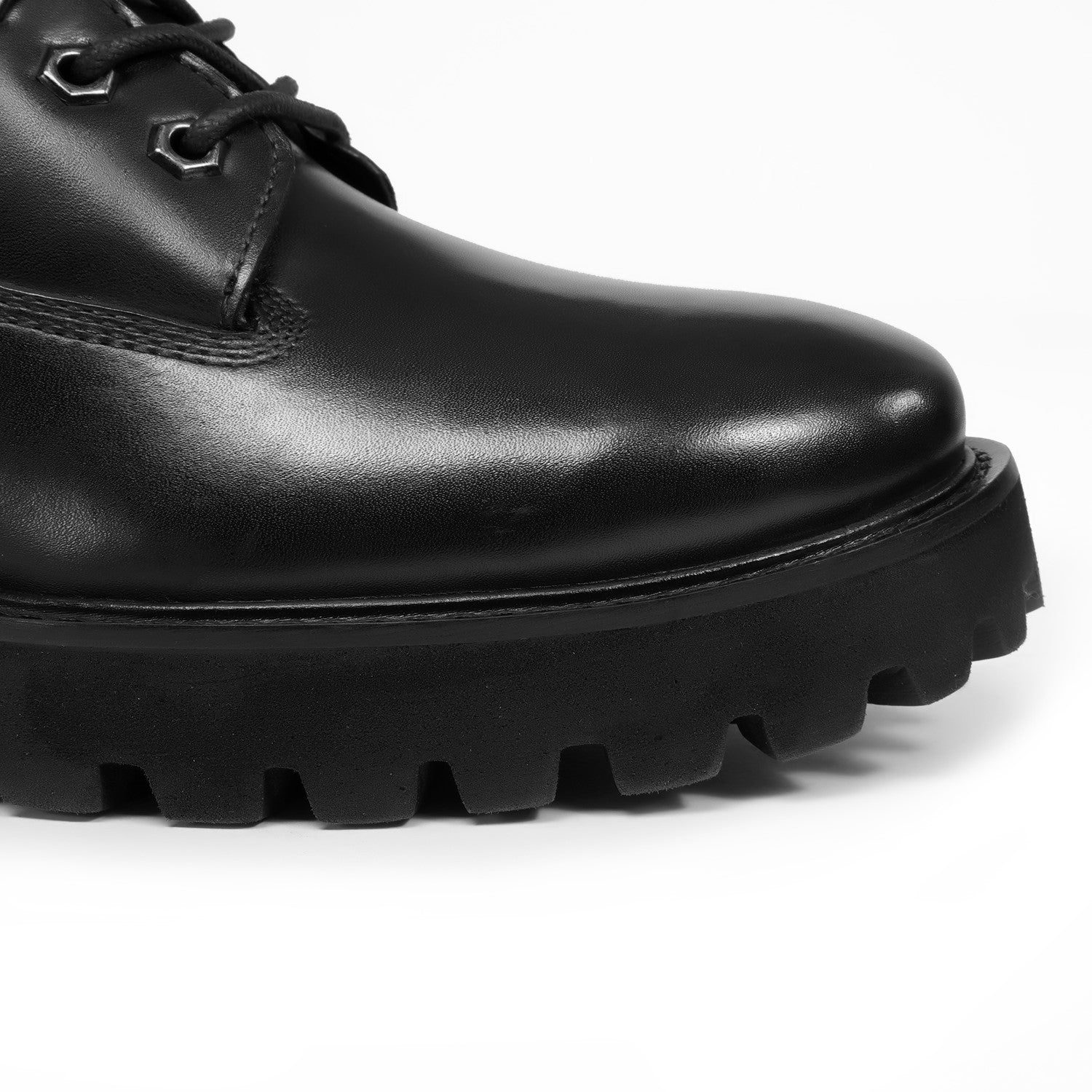 Light Weight Chunky Boot in Black Full Grain Leather with Lace-Up Closure