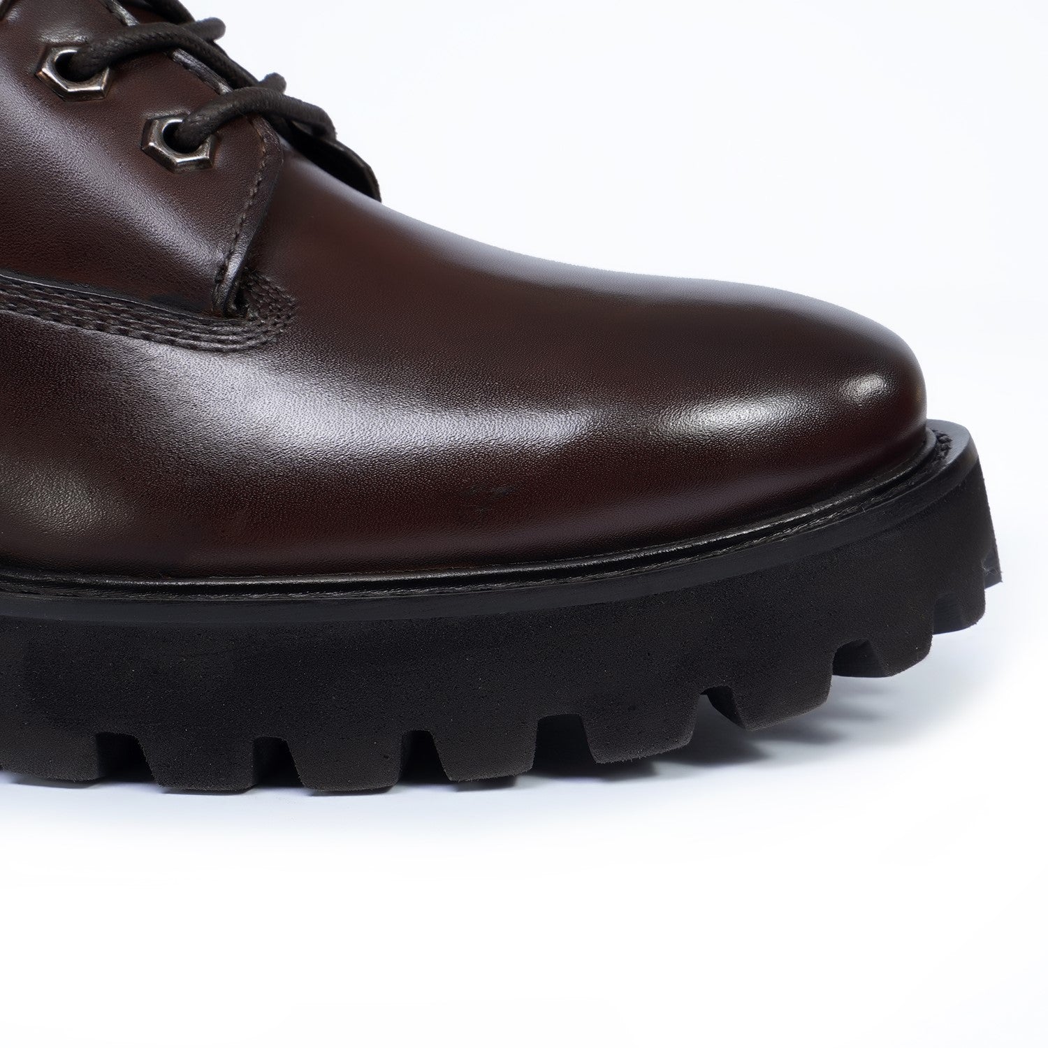 Light Weight Chunky Boot in Dark Brown Full Grain Leather with Lace-Up Closure